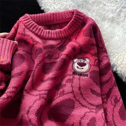 일본 귀여운 딸기 곰 스웨터 여성의 가을과 겨울 두꺼운 느슨한 게으른 스타일 부드러운 왁스 밀크 스웨터 재킷