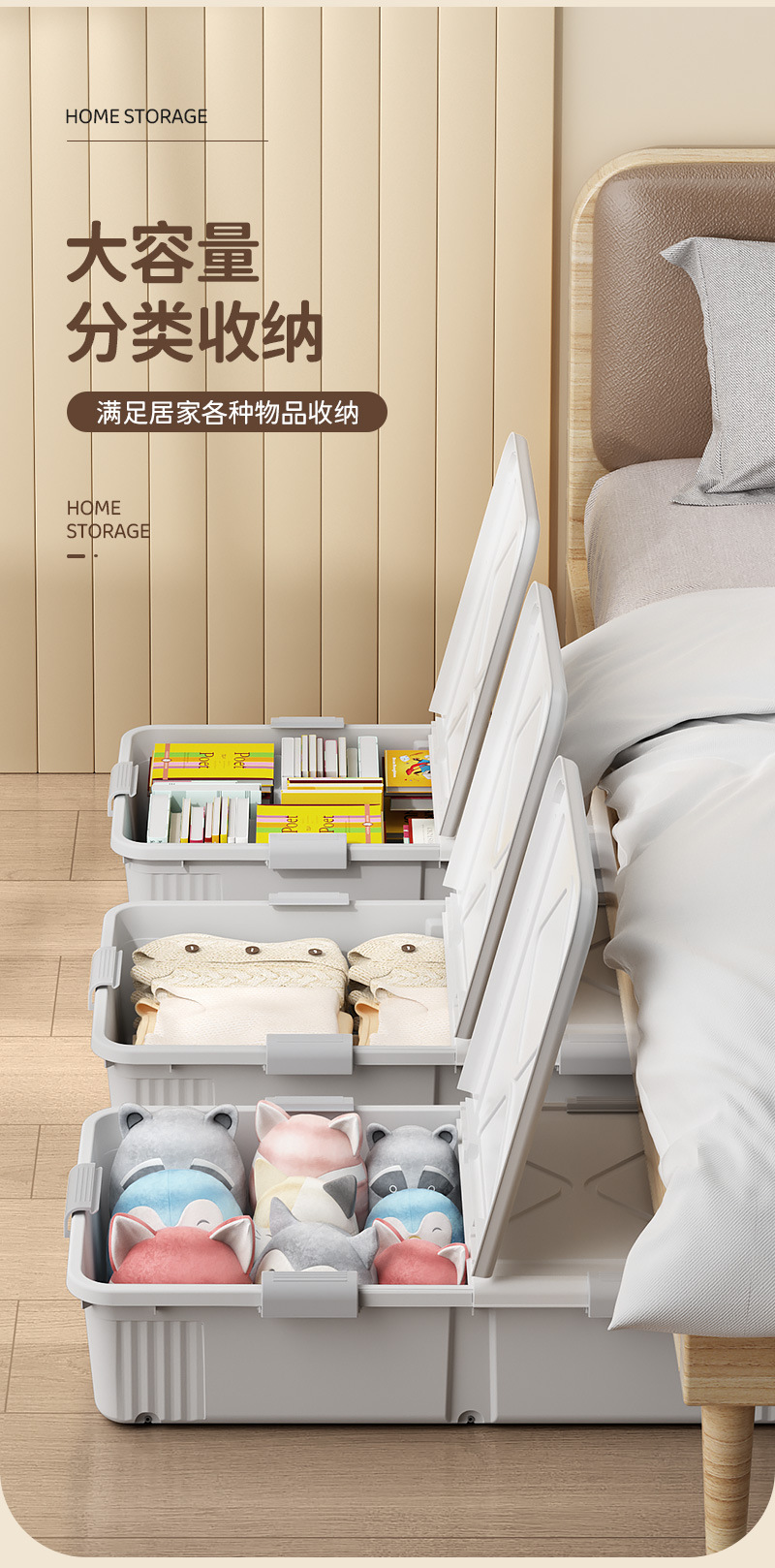 언더 베드 수납함 초대형 플라스틱 언더 베드 옷 수납 마무리 박스 바퀴 달린 플랫 기숙사 언더 베드 박스 도매스토어 가기