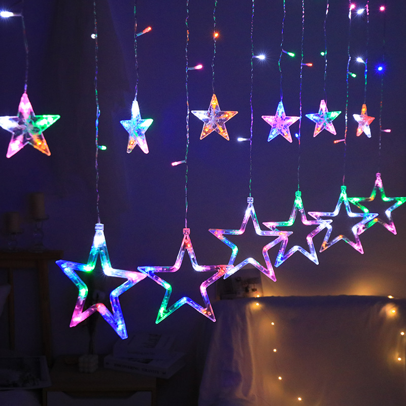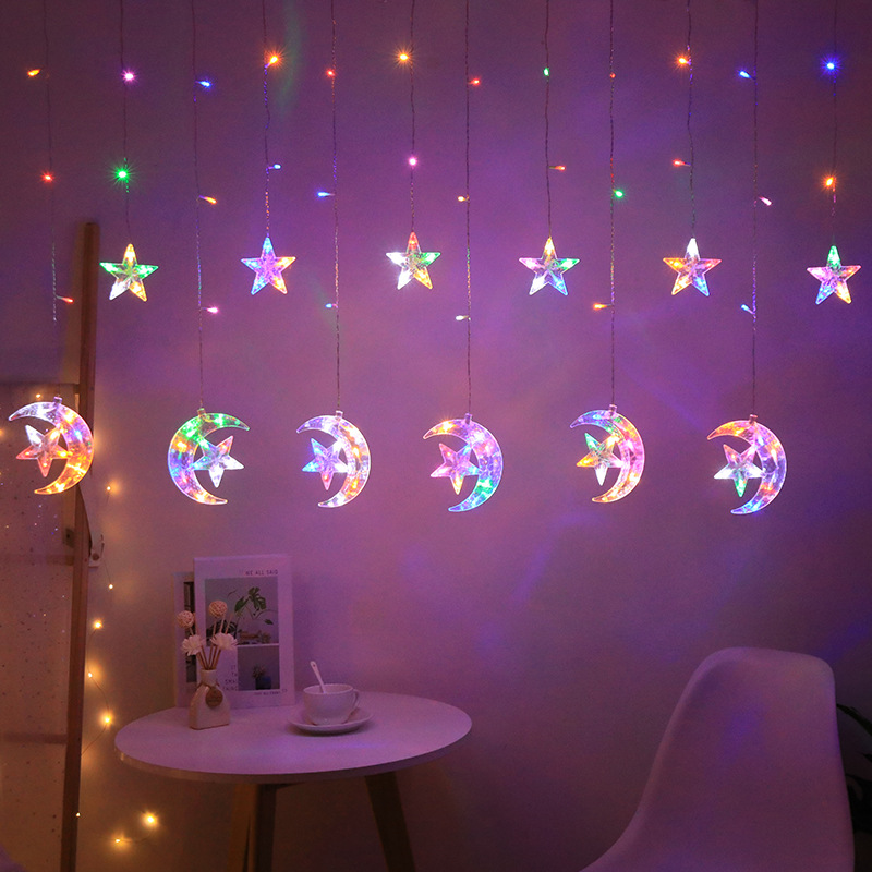 국경 LED 별이 빛나는 빛 끈 별이 빛나는 달 커튼 라이트 룸 장식 컬러 라이트 스트링 야외 캠핑 분위기 방수 램프