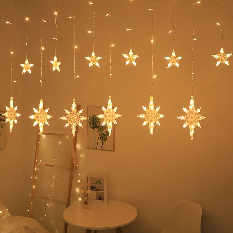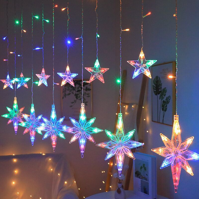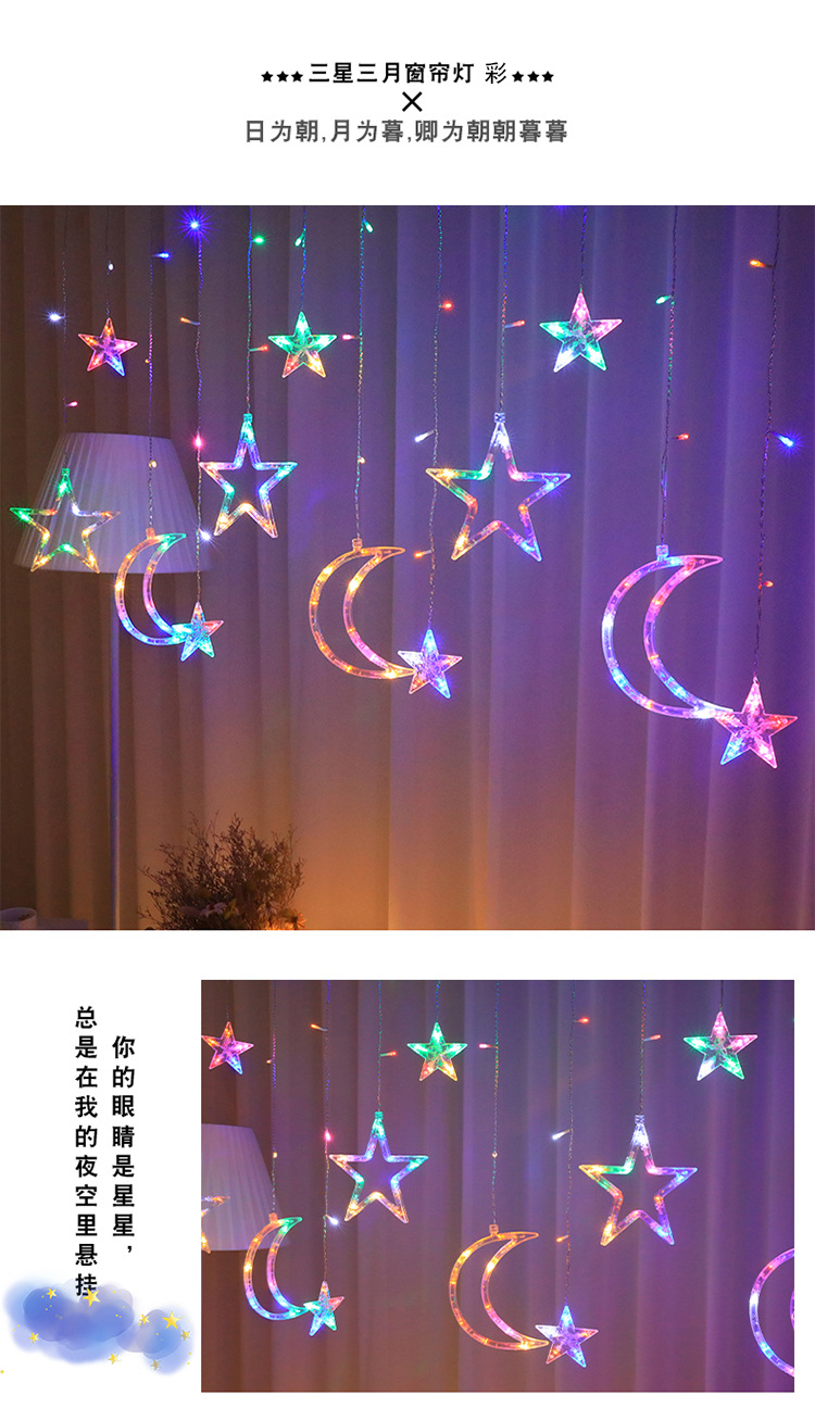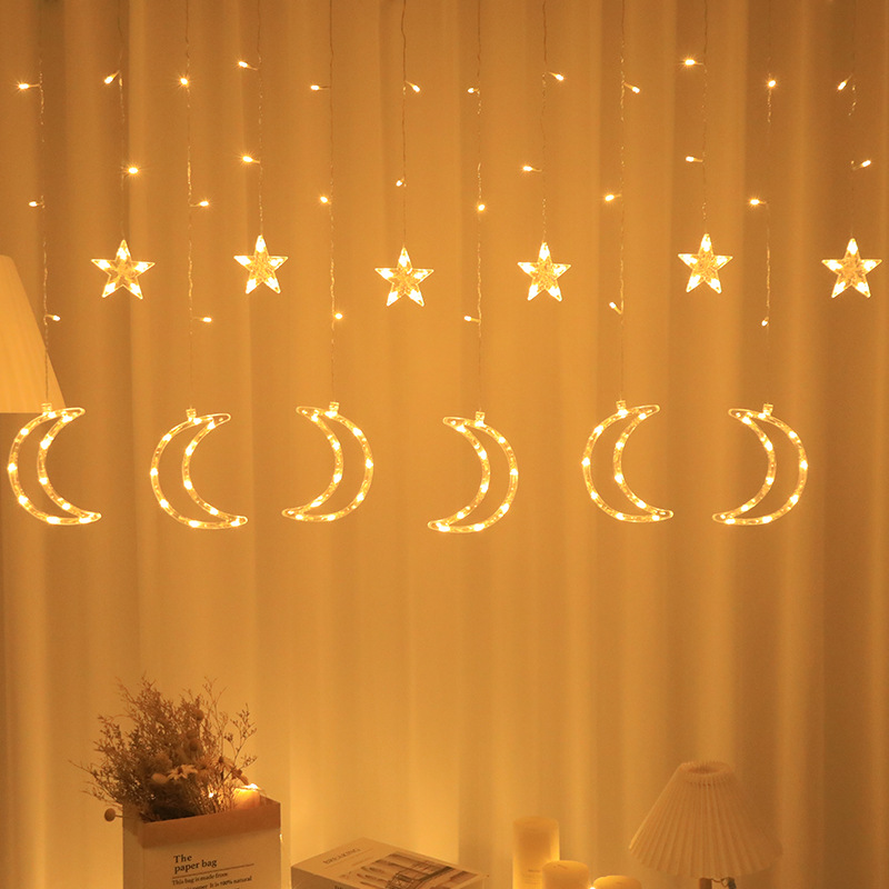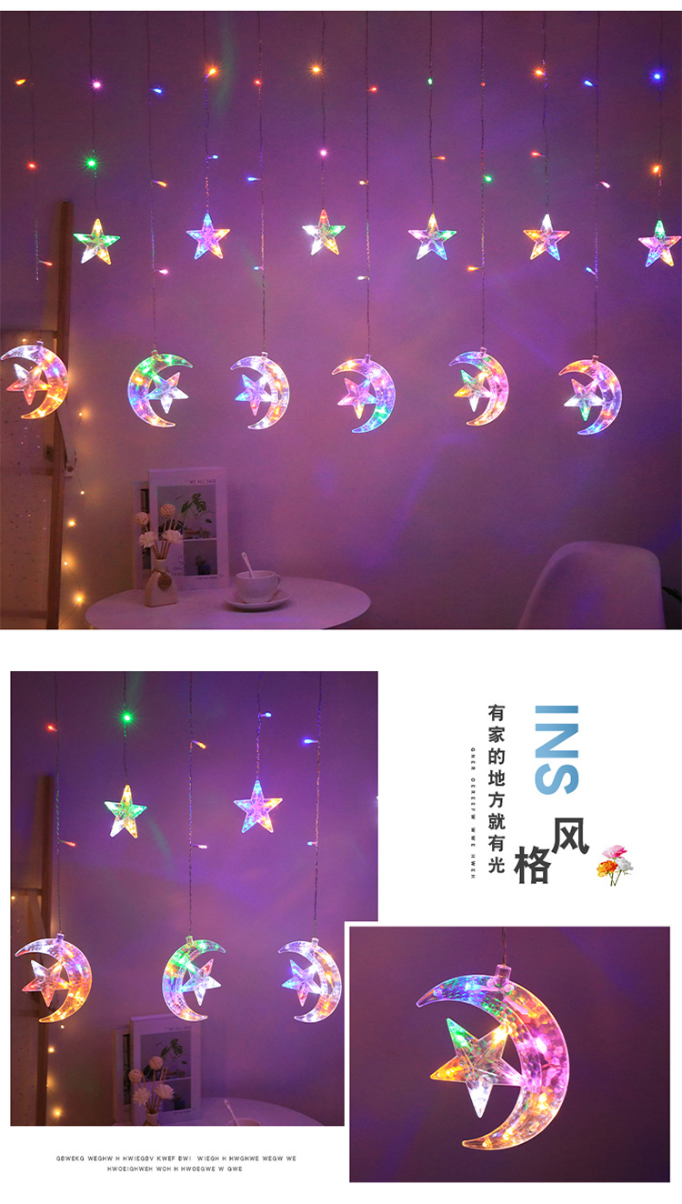 국경 LED 별이 빛나는 빛 끈 별이 빛나는 달 커튼 라이트 룸 장식 컬러 라이트 스트링 야외 캠핑 분위기 방수 램프스토어 가기