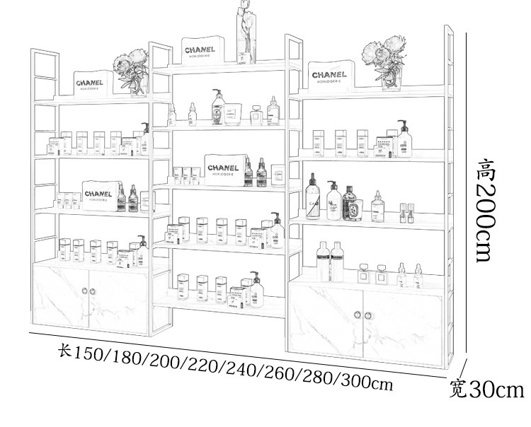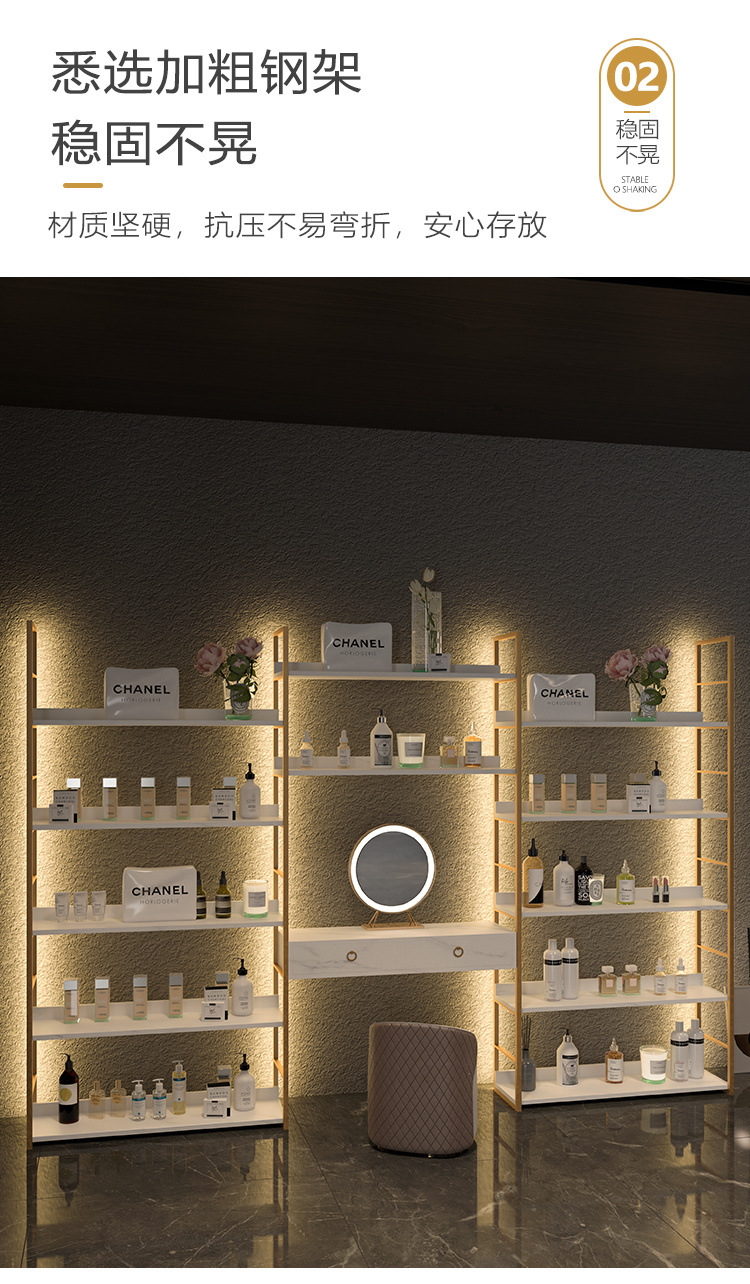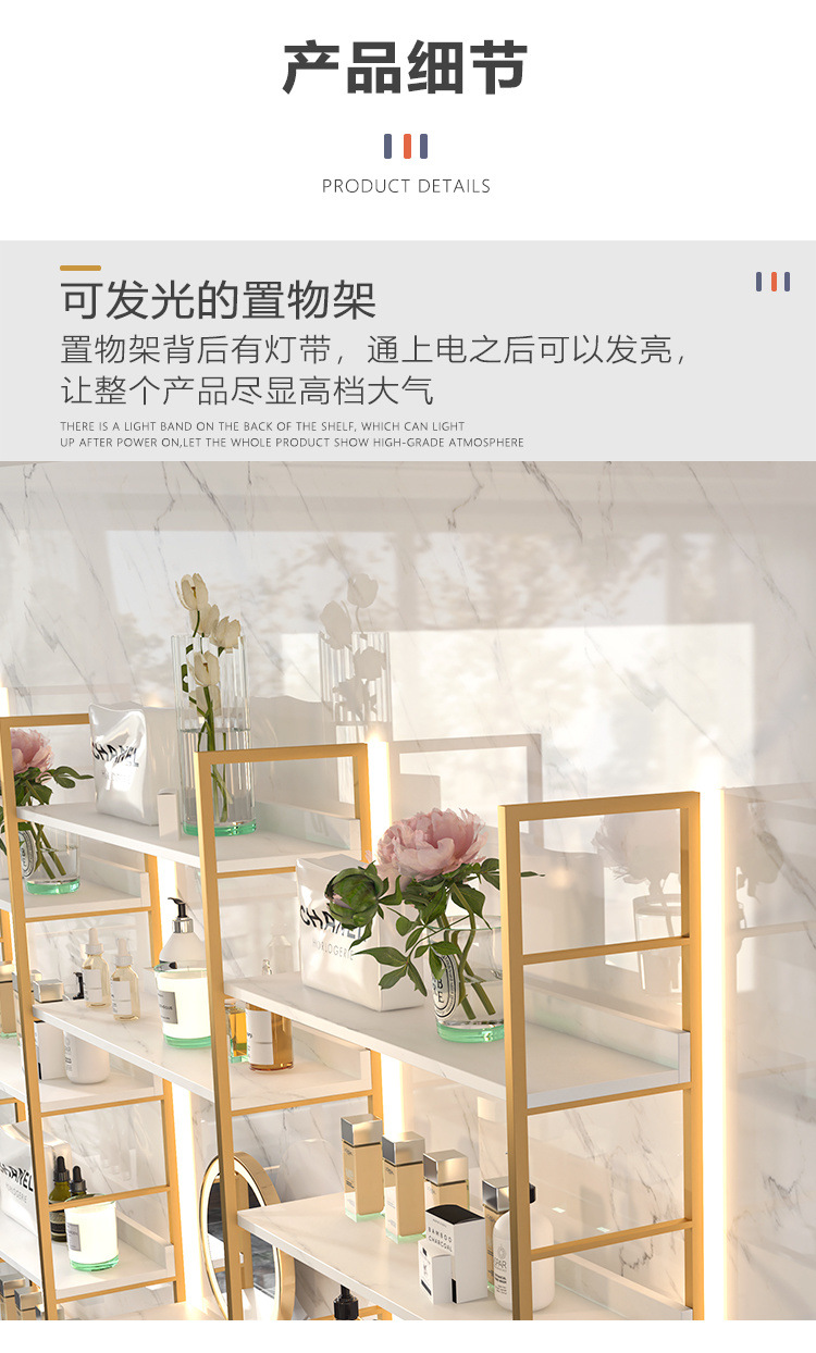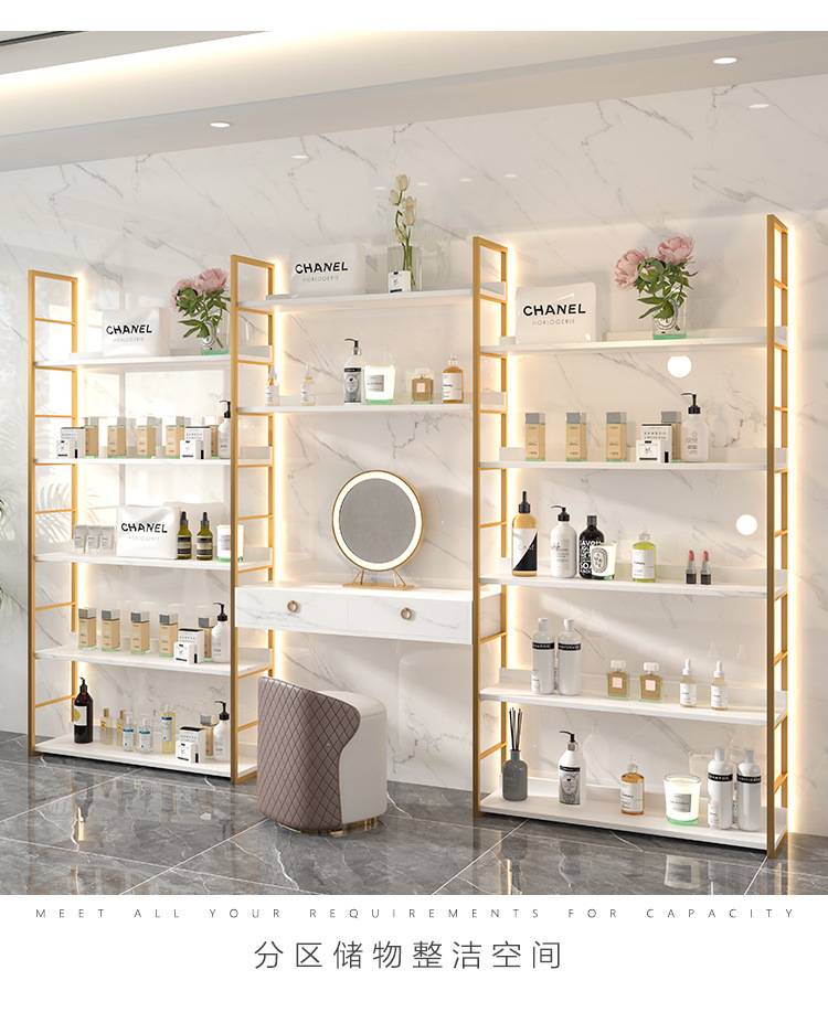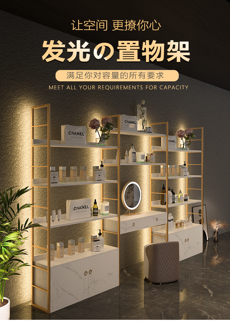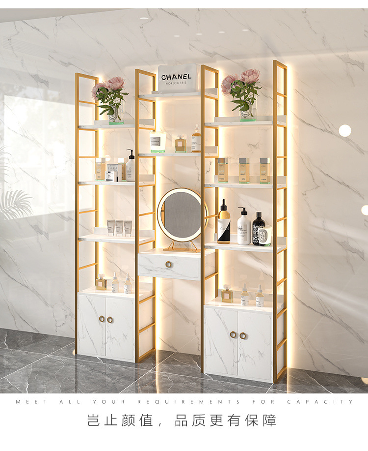 화장품 디스플레이 캐비닛 제품 디스플레이 캐비닛 뷰티 살롱 스킨 케어 제품 빛과 거울과 스토리지 랙 선반 디스플레이 랙
