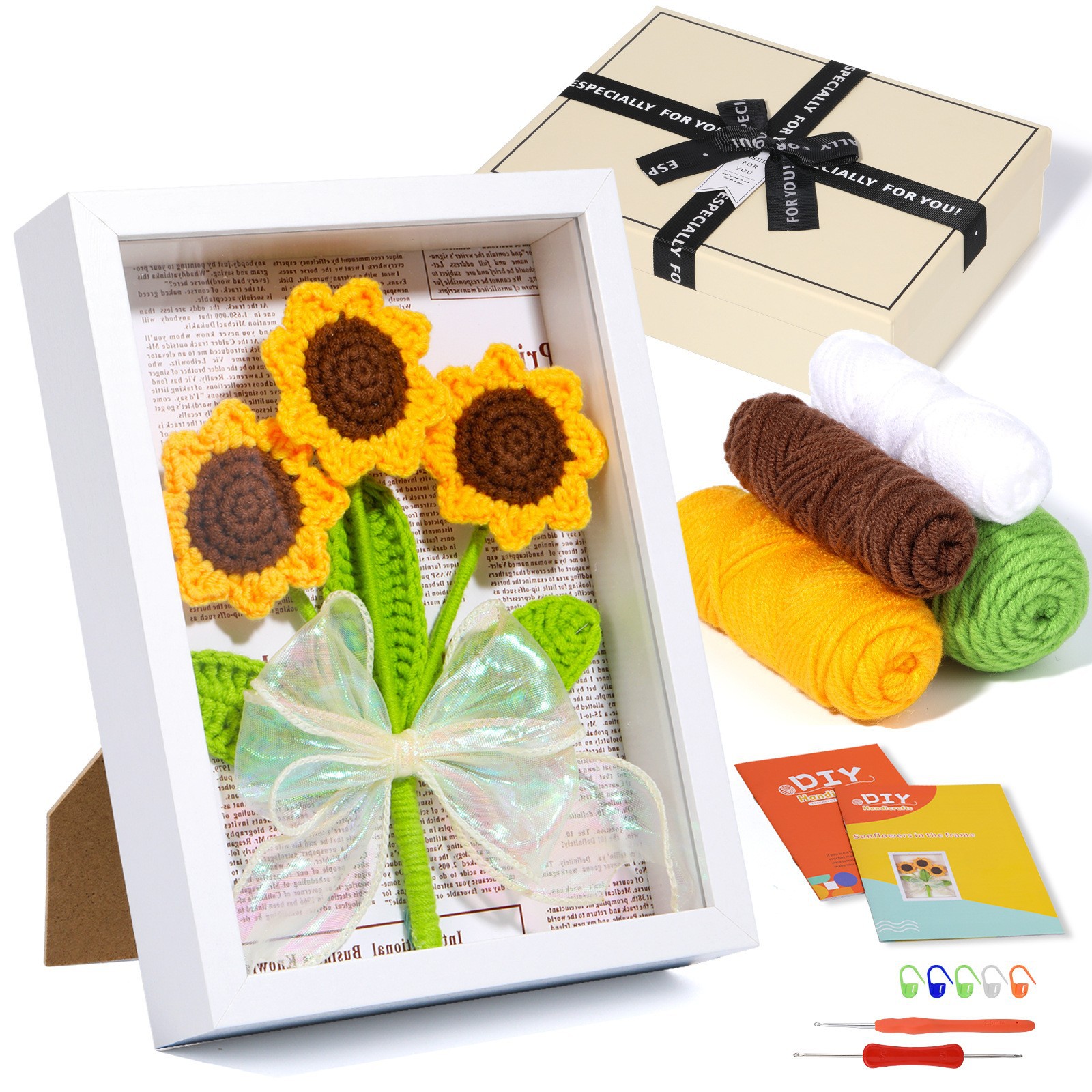 • 해바라기 * 크로 셰 뜨개질 소재 팩 + 영어 비디오 * 50% * 일반 * 21S * 4