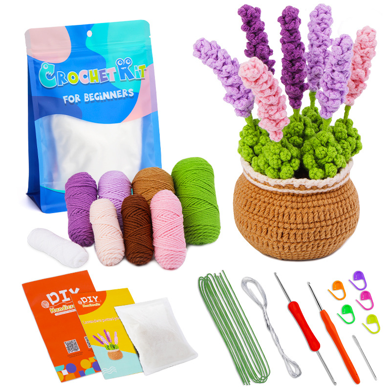 • 라벤더 * 크로 셰 뜨개질 소재 팩 + 영어 비디오 * 50% * 일반 * 21S * 4