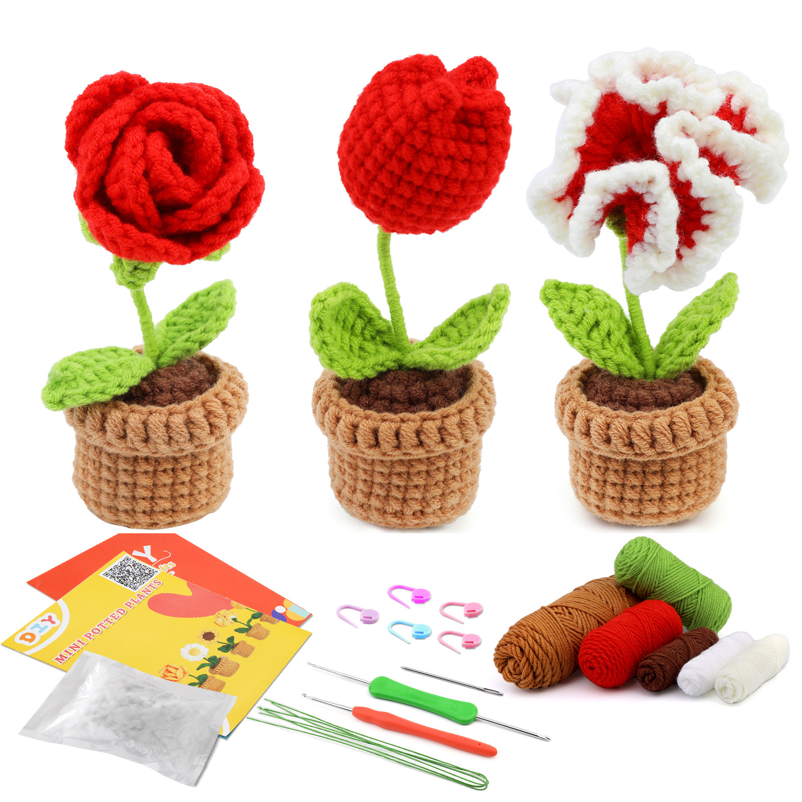 국경을 넘는 인기 상품, 뜨개질 재료 세트, 손뜨개 화분 꽃 DIY 장식품, 명절 선물, 손뜨개