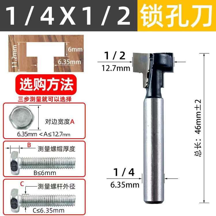 1/4 핸들 목공 밀링 커터 열쇠 구멍 커터 나사 구멍 밀링 커터 사진 프레임 교수형 커터 사진 프레임 공 커터 조각 커터 T 자형 커터