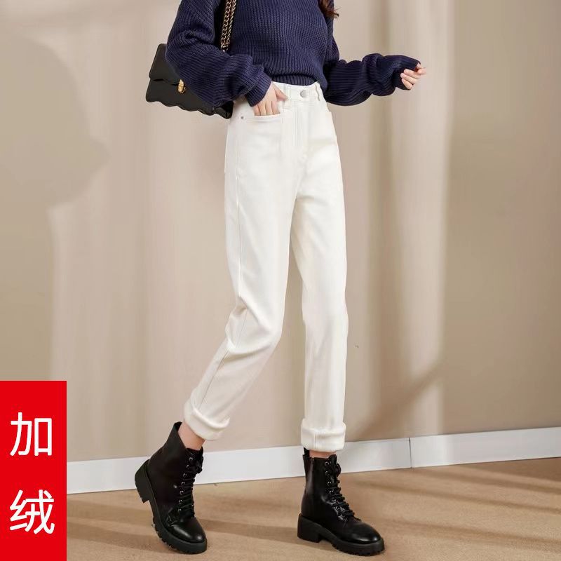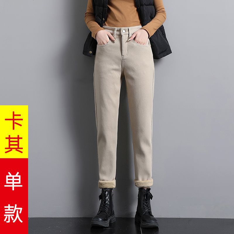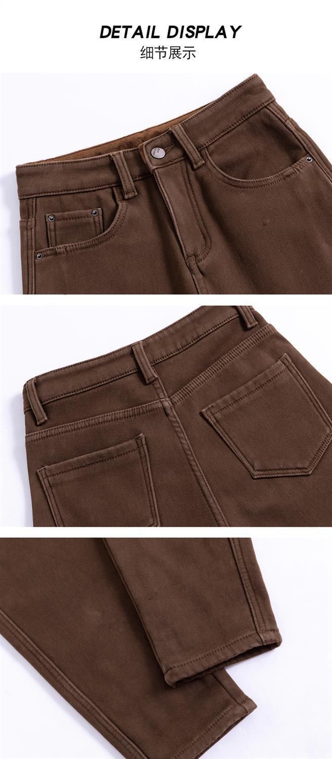 2025 겨울용 기모 여성 하렘 청바지, 커피색, 다용도, 하이웨이스트, 슬림핏, 몸매 가리기, 신축성 있는 당근 바지스토어 가기