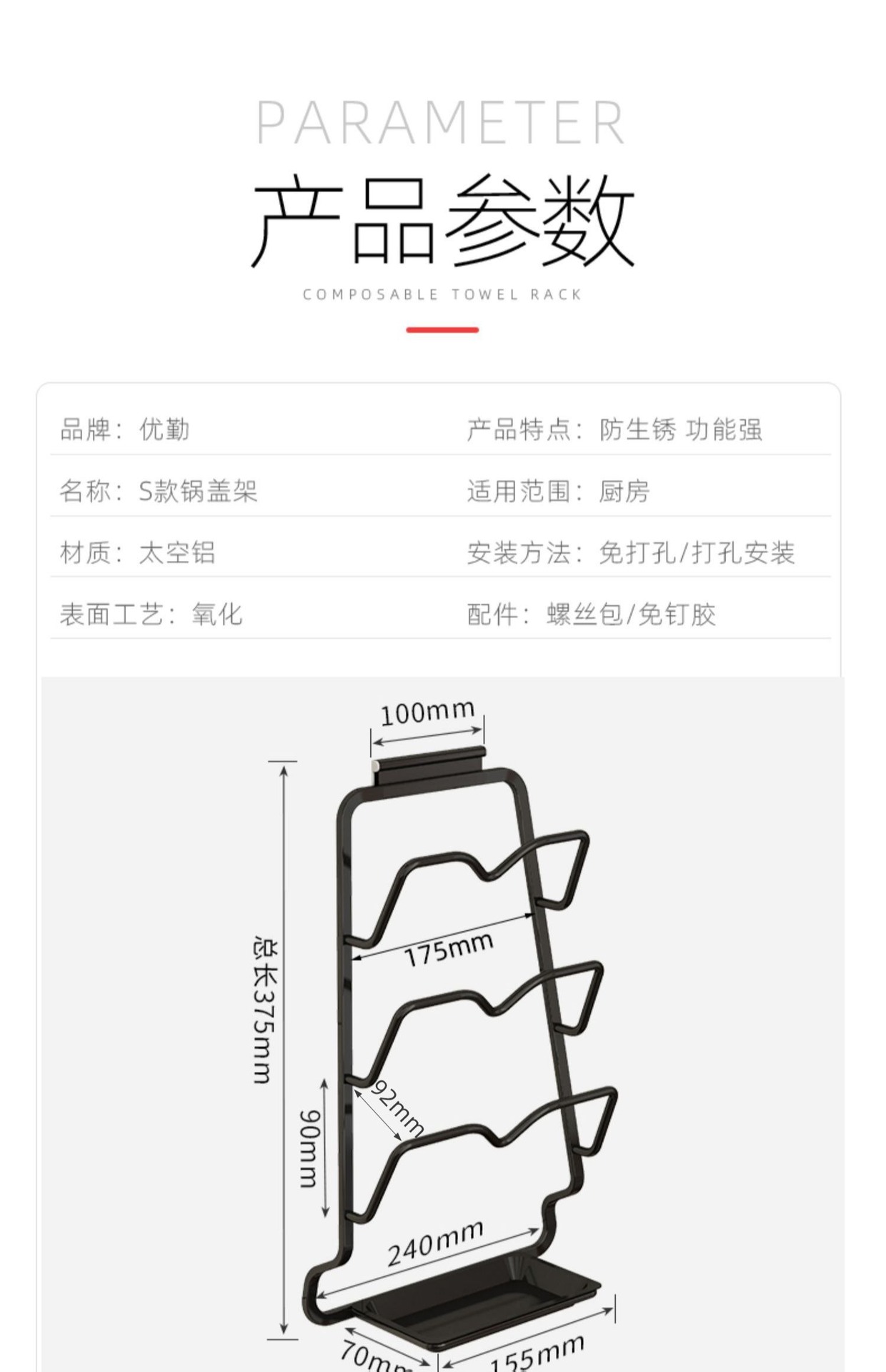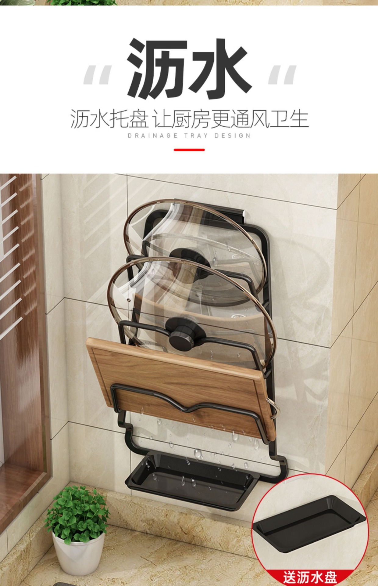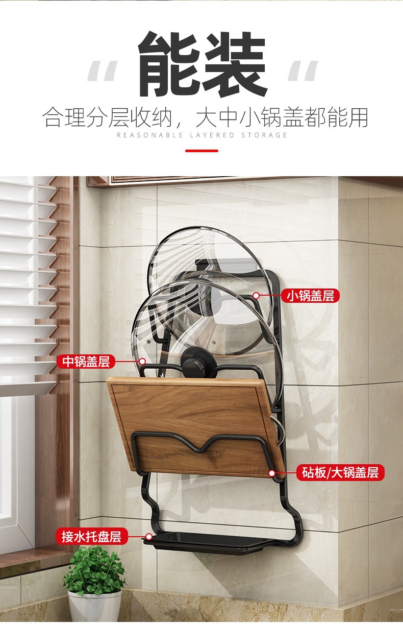 냄비 커버 랙 비 펀치 벽걸이 형 주방 수납 랙 대형 도마 플레이서 가정용 수납 다층 도마 선반