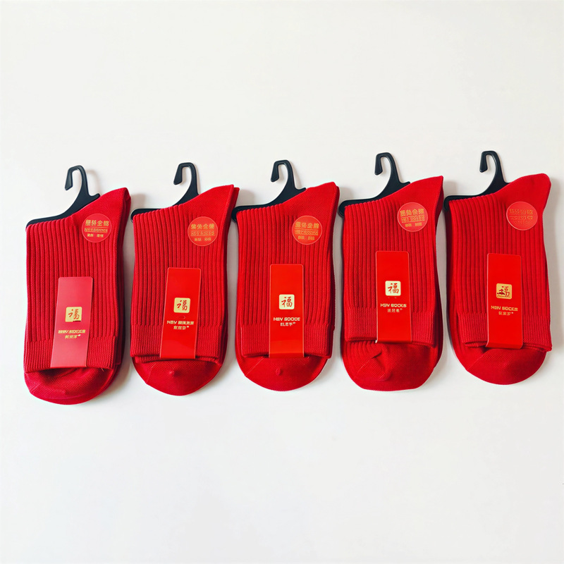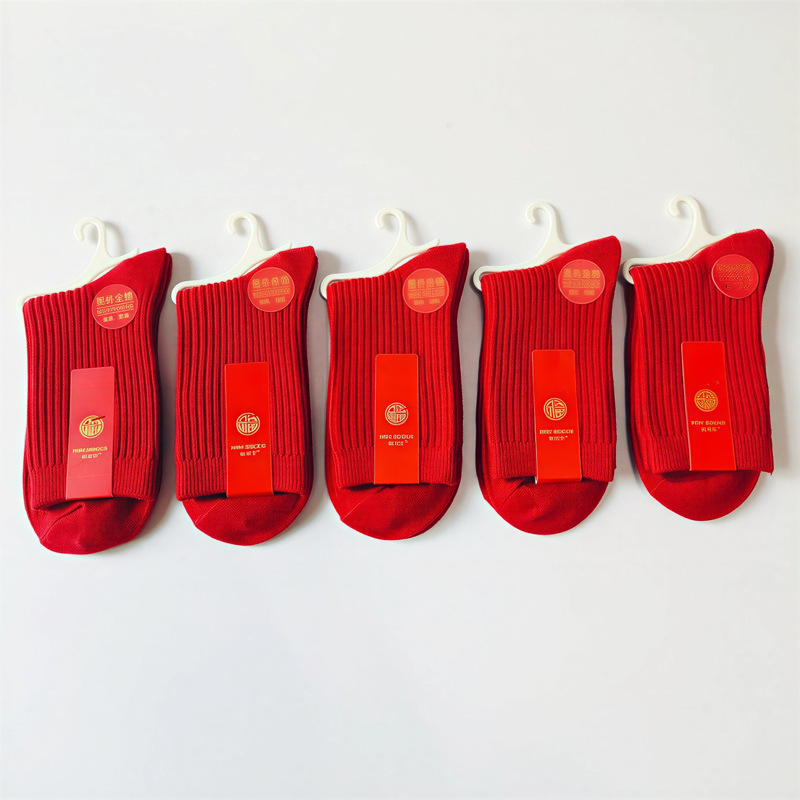 男士女士同款大红双针中筒袜子,                        上面的单价是一双袜子的价格                                   男款版型大一点                                                                           袜子包装和图片一样,每双都带独立挂钩和卡纸。                            专注商超供货,有条形码