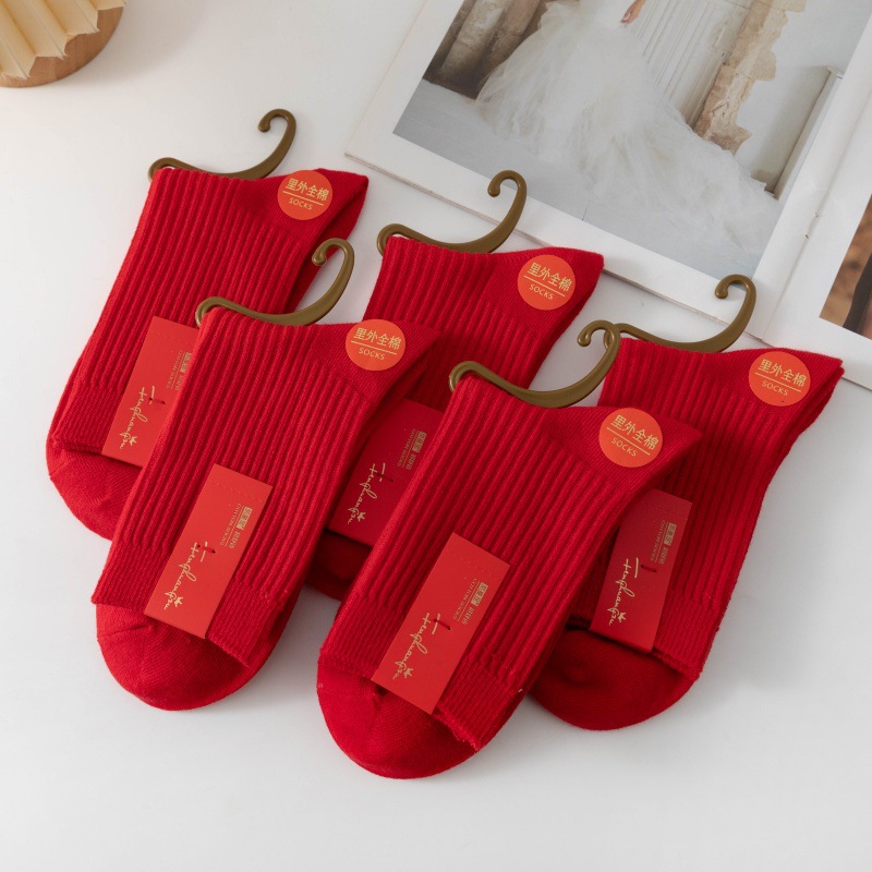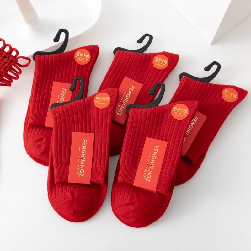 남녀 신년 띠끼년 빨간 양말, 이중 바늘 중목면 양말, 가을 겨울용 축제용 말띠 결혼식 빨간 양말