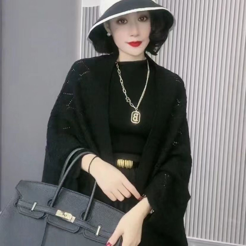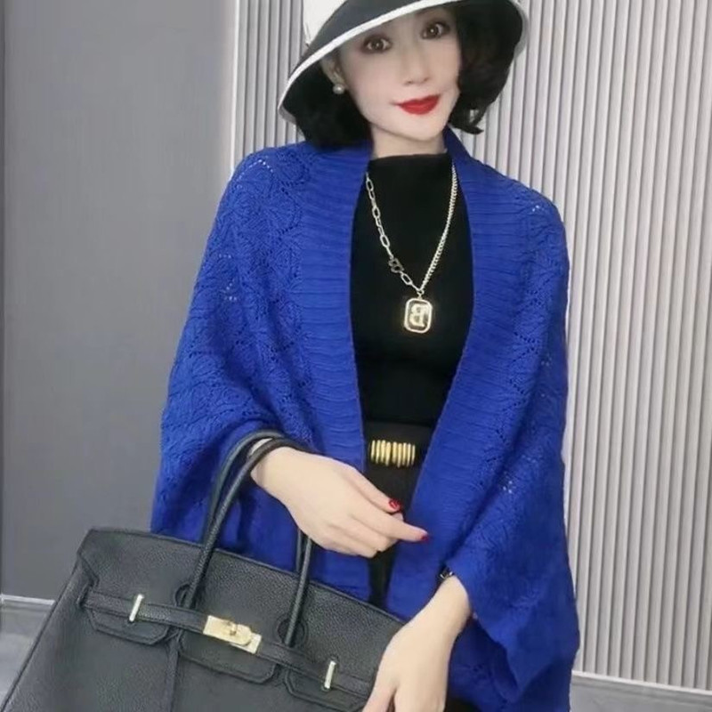 2024 인터넷 연예인 라이브 할로우 목도리 봄 및 여름 새로운 니트 올 매치 재킷 여성 에어컨이 설치된 방 망토 카디건스토어 가기