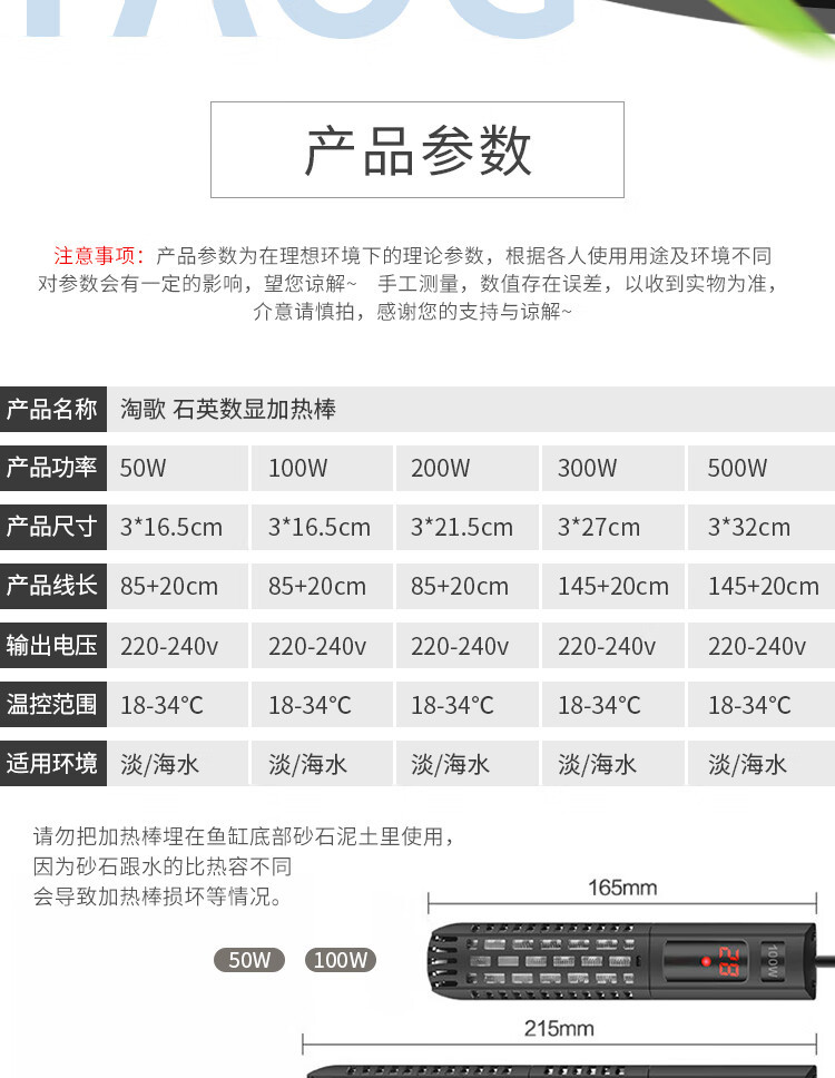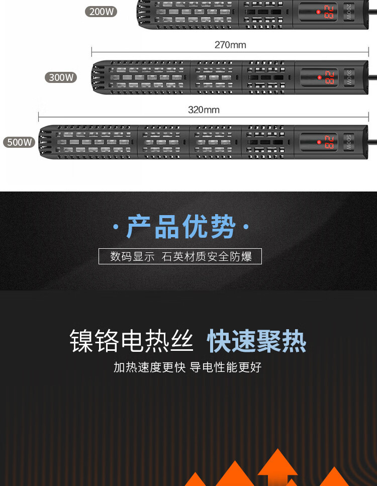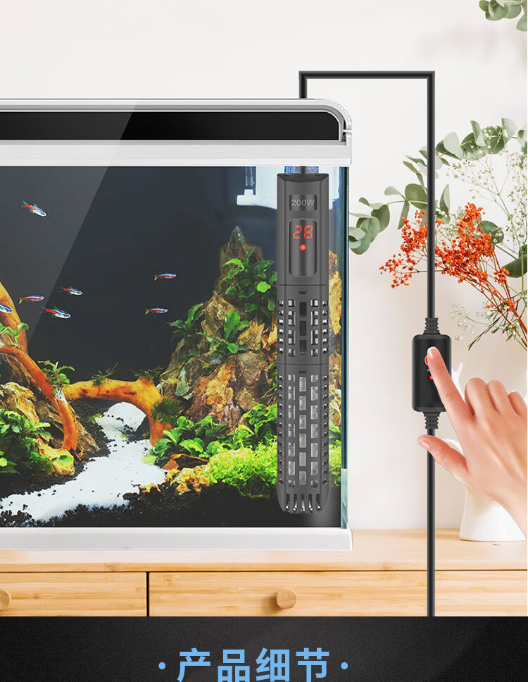 거북이 물고기 탱크 가열 막대 자동 항온 유리 폭발 방지 소형 가열 막대 디지털 디스플레이 온도 가열 막대스토어 가기