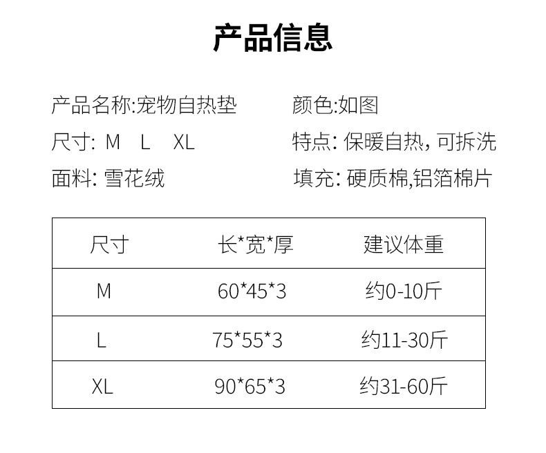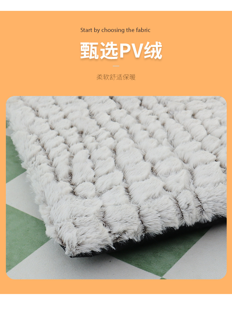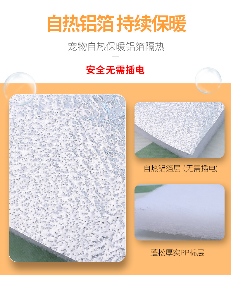 【产品面料】:雪花PV绒、内胆:硬质棉+铝箔棉片+无纺布、底部:滴速布