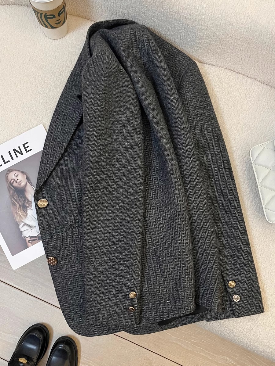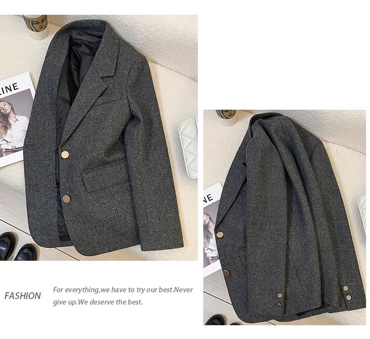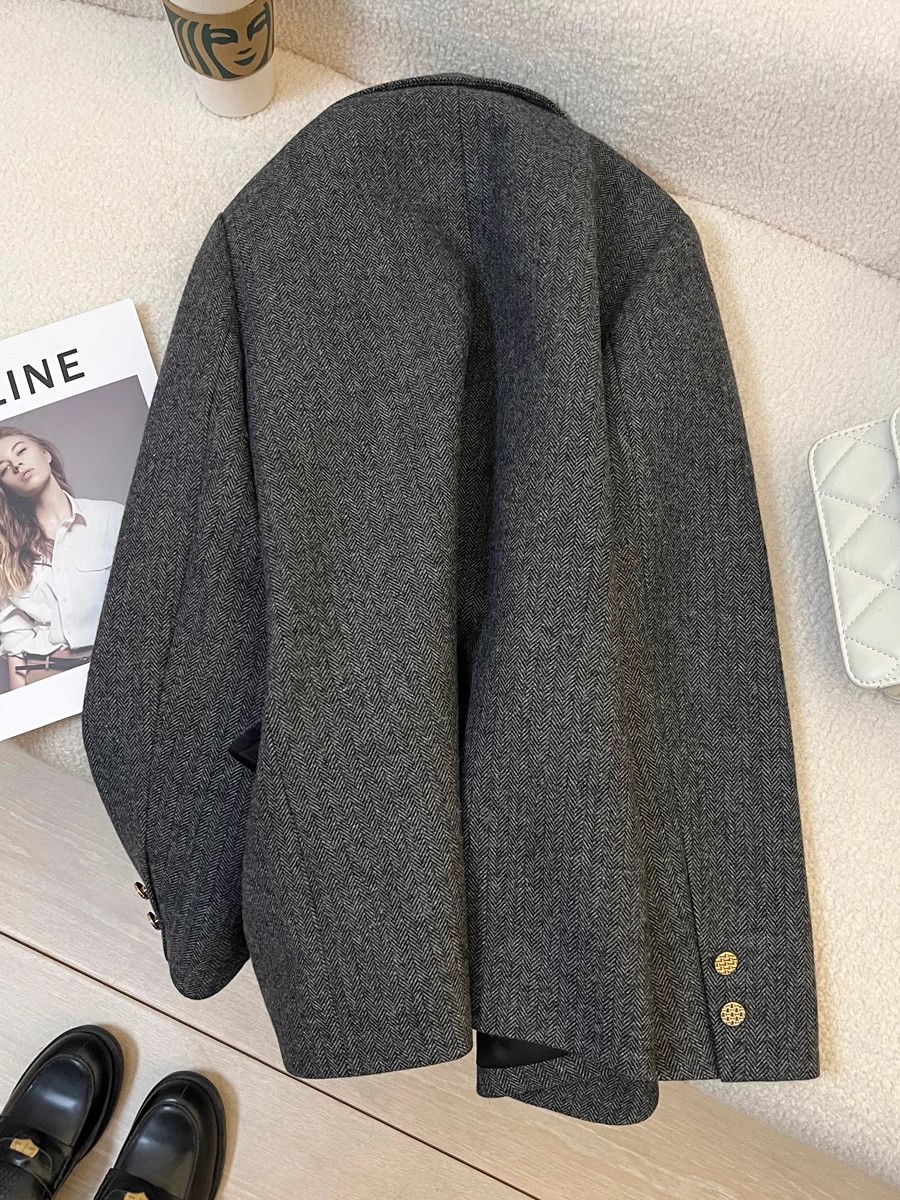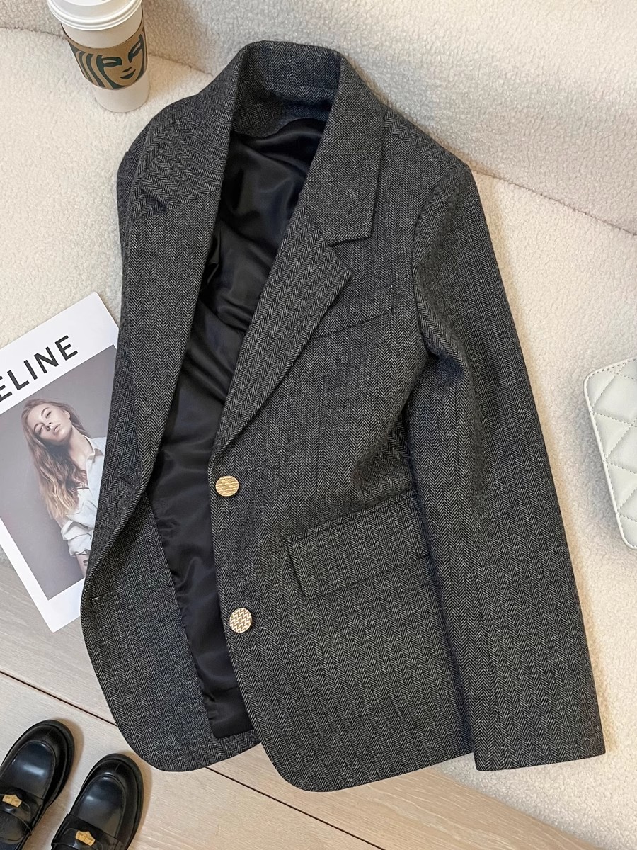여성을위한 하이 엔드 회색 모직 정장 재킷 2025 이른 봄 새로운 스타일 캐주얼 영국 스타일 통근 작은 정장스토어 가기