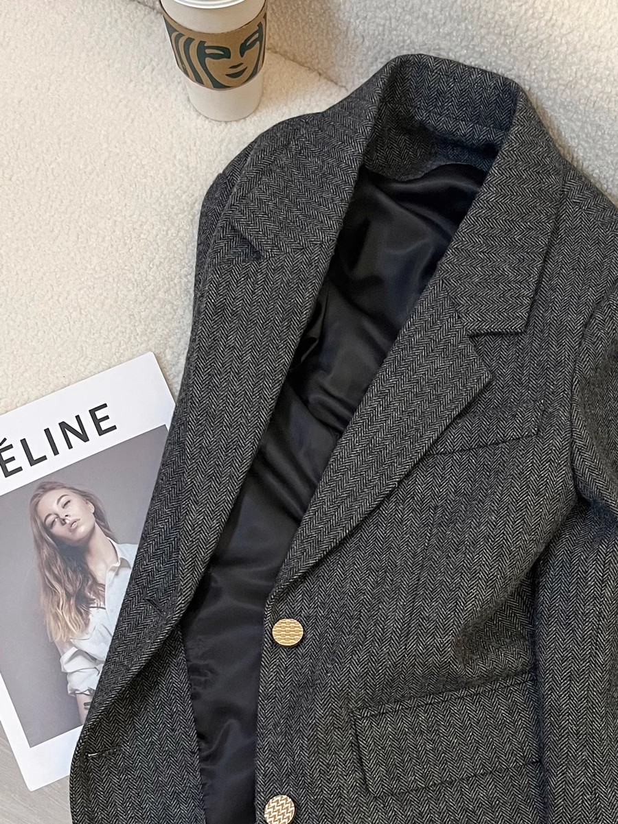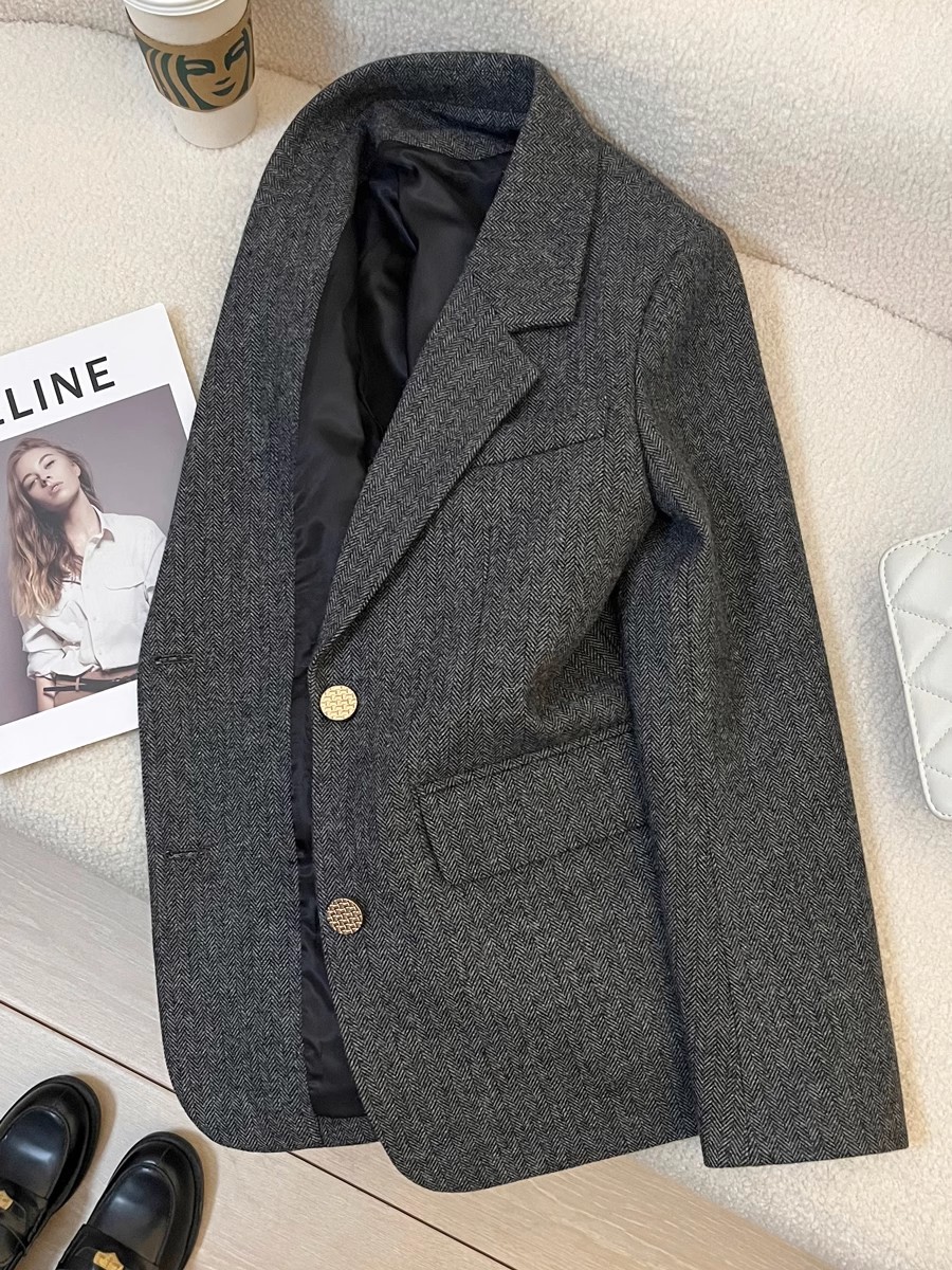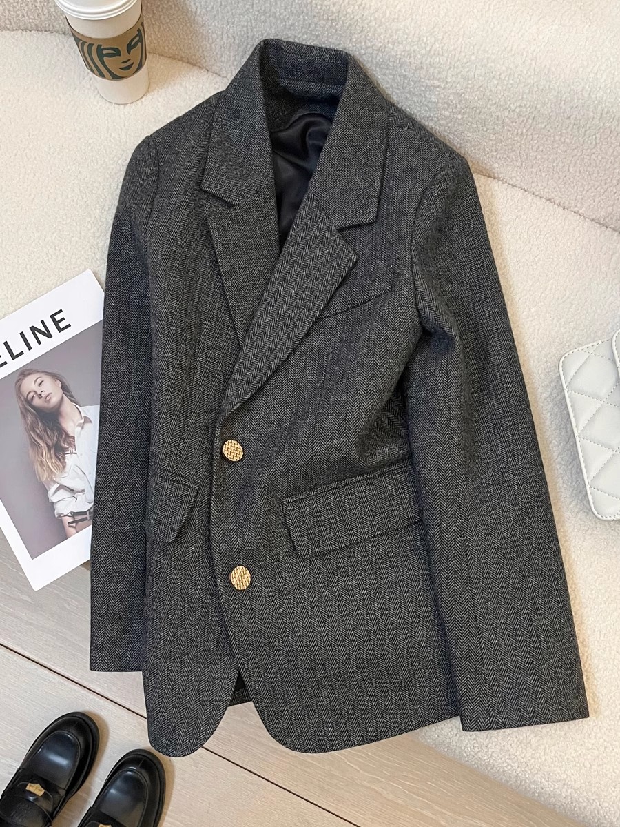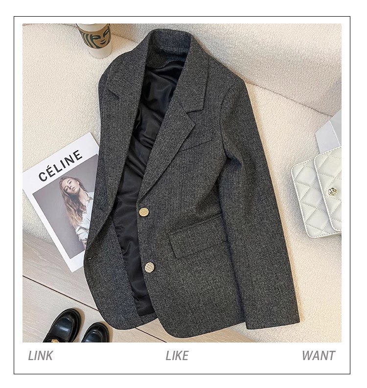 여성을위한 하이 엔드 회색 모직 정장 재킷 2025 이른 봄 새로운 스타일 캐주얼 영국 스타일 통근 작은 정장스토어 가기