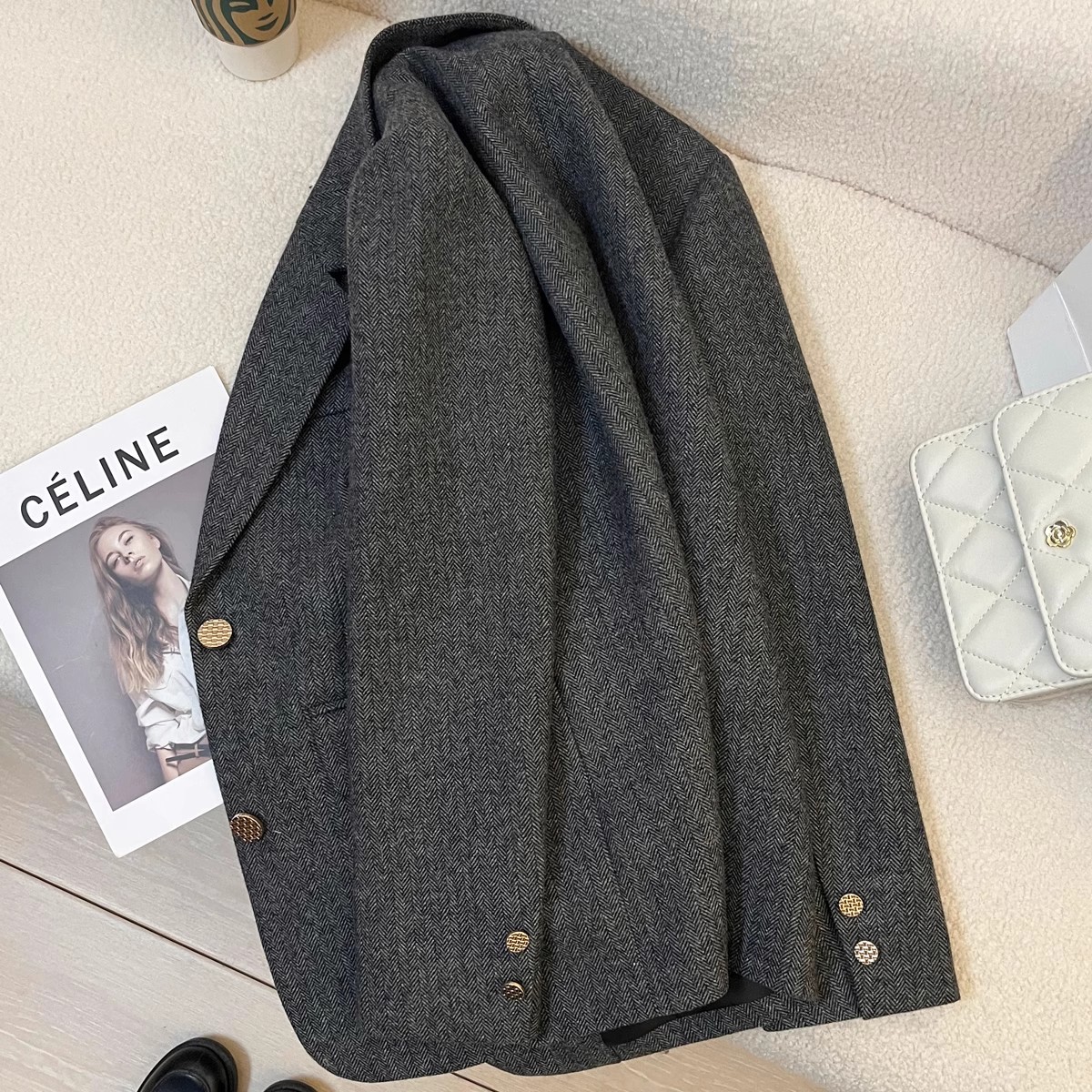 여성을위한 하이 엔드 회색 모직 정장 재킷 2025 이른 봄 새로운 스타일 캐주얼 영국 스타일 통근 작은 정장