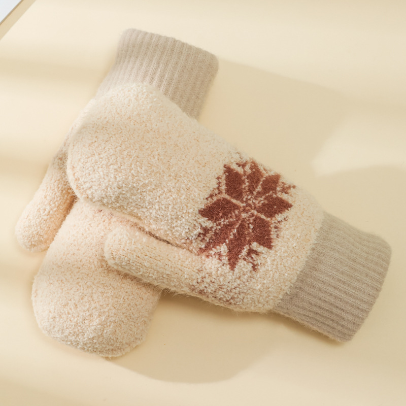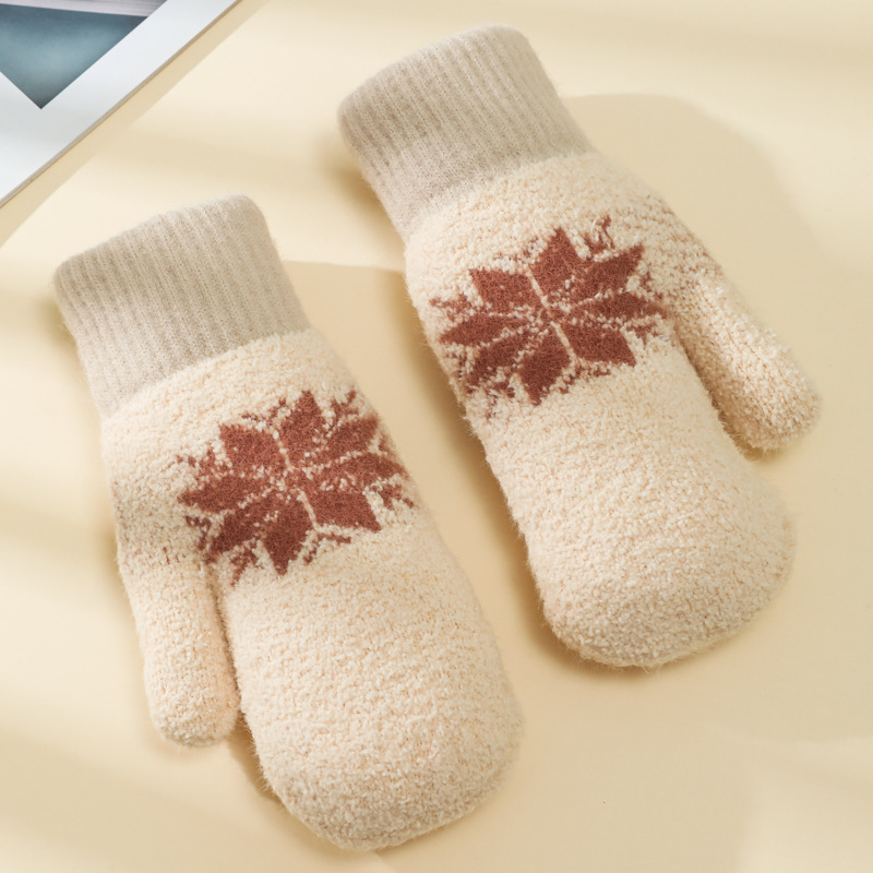 학생 장갑 여자의 겨울 방한 한국식 귀여운 눈송이 손가락 양모 니트 두꺼운 기모 커플 양고기 양털
