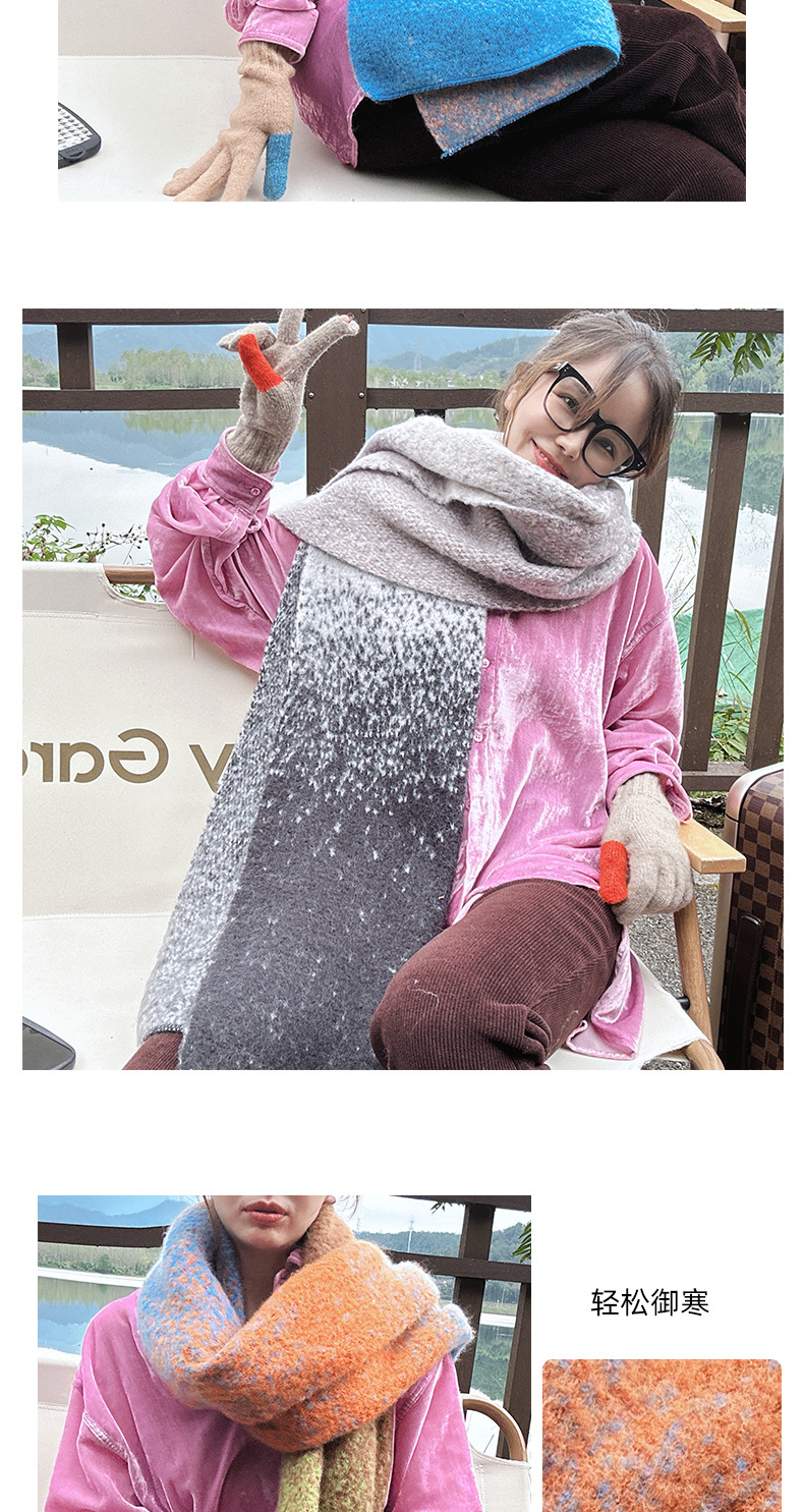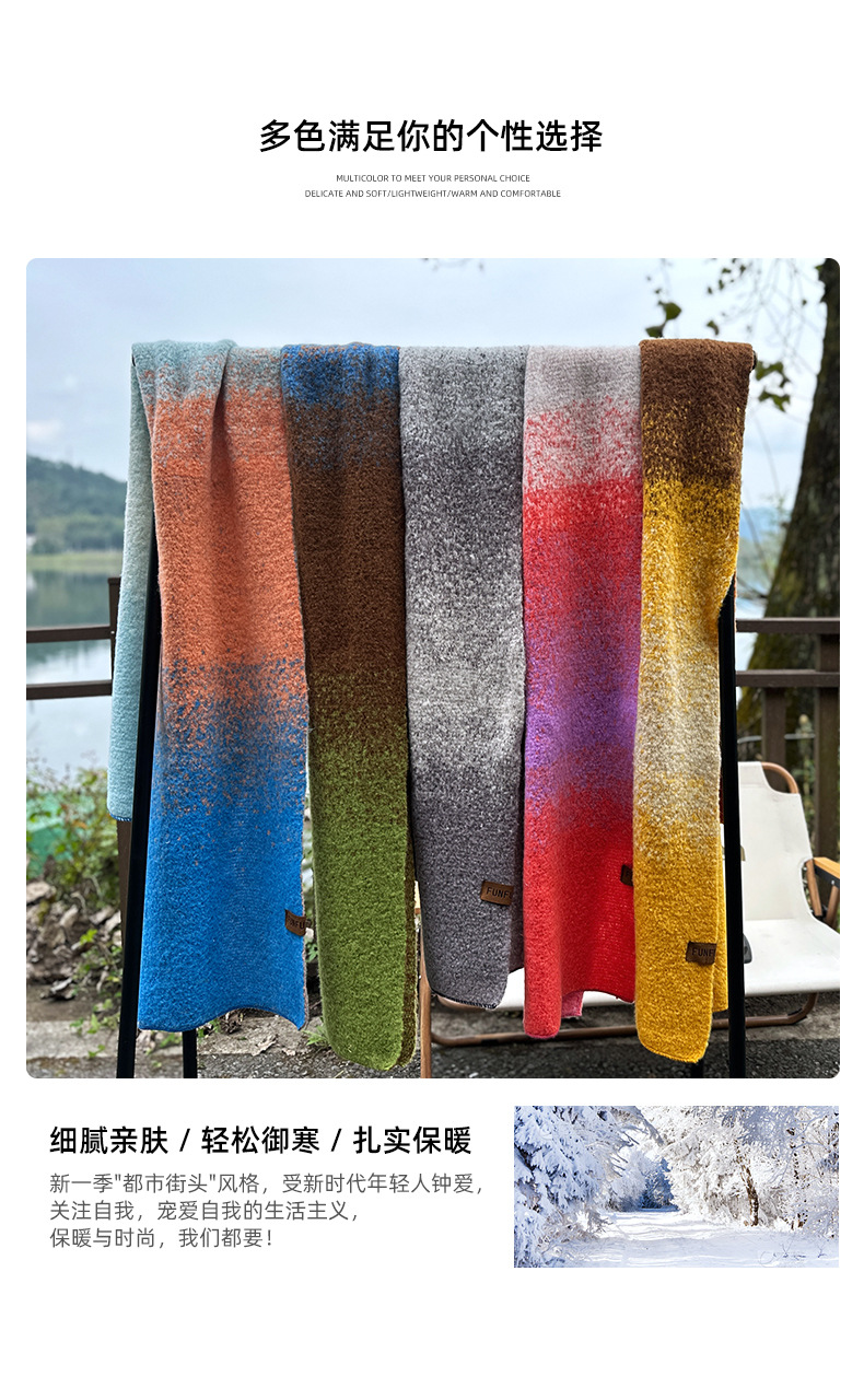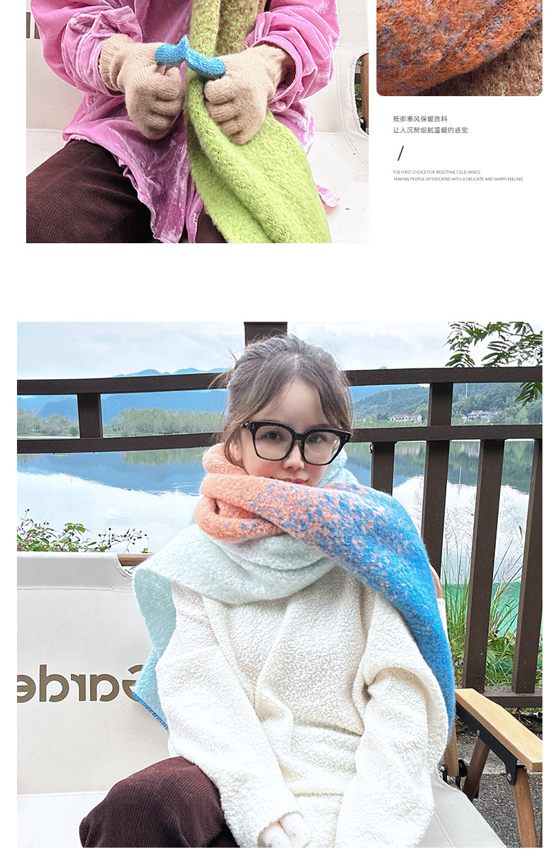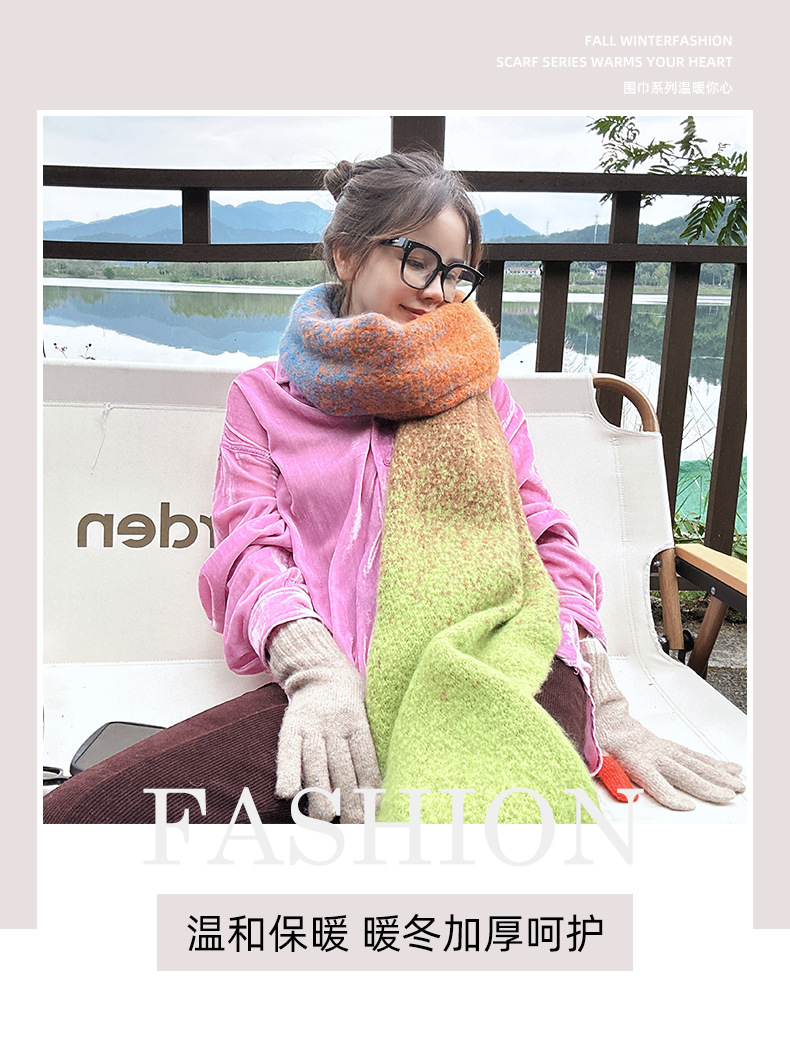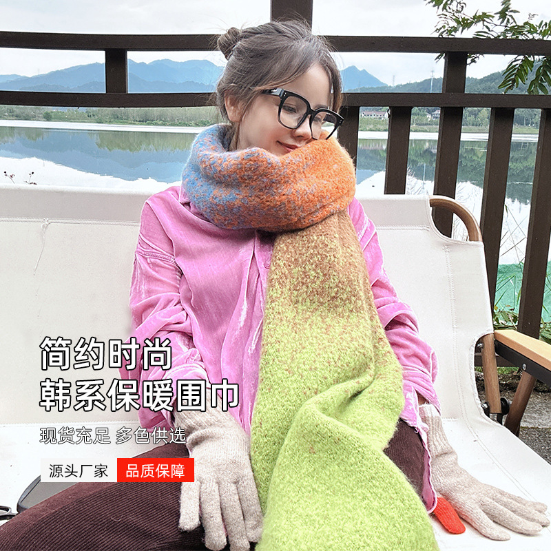 고급 한국 틈새 스카프 여성의 가을과 겨울 무지개 니트 목도리 두꺼운 따뜻한 대비 색상 디자인 스카프스토어 가기