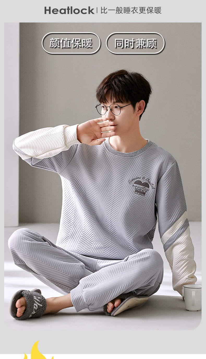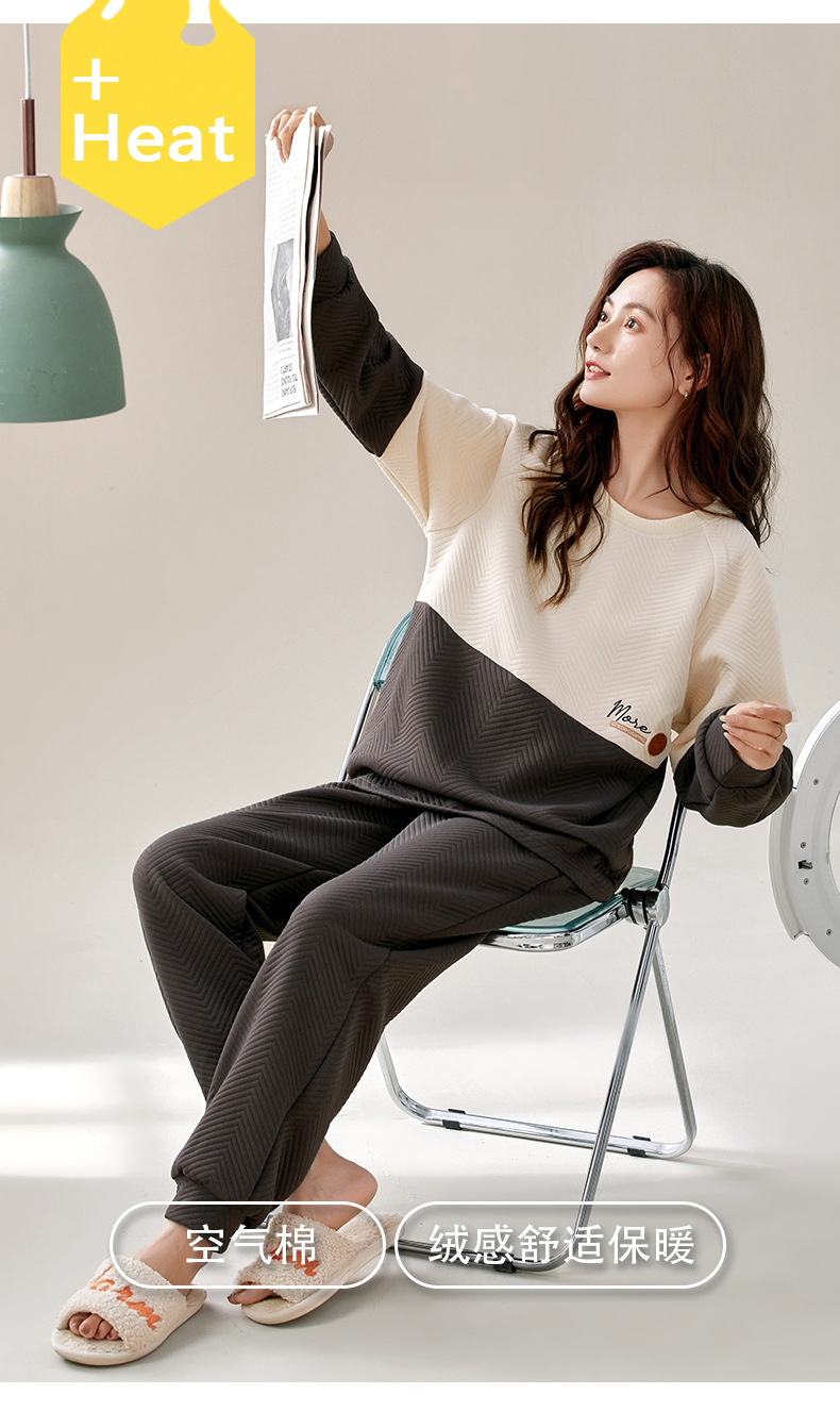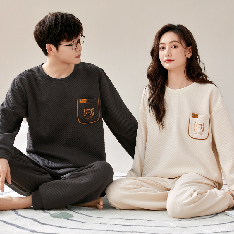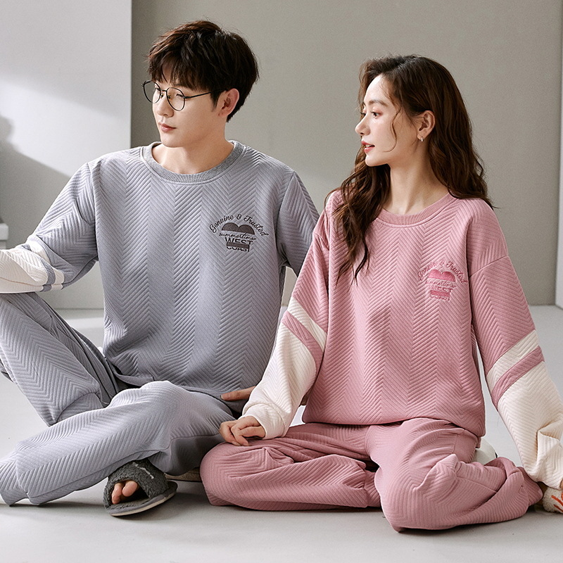겨울 커플 잠옷 여자 남자의 풀오버 공기 면 샌드위치 따뜻한 세트 한 남자와 한 여자의 가정 옷을 착용 할 수 있습니다스토어 가기