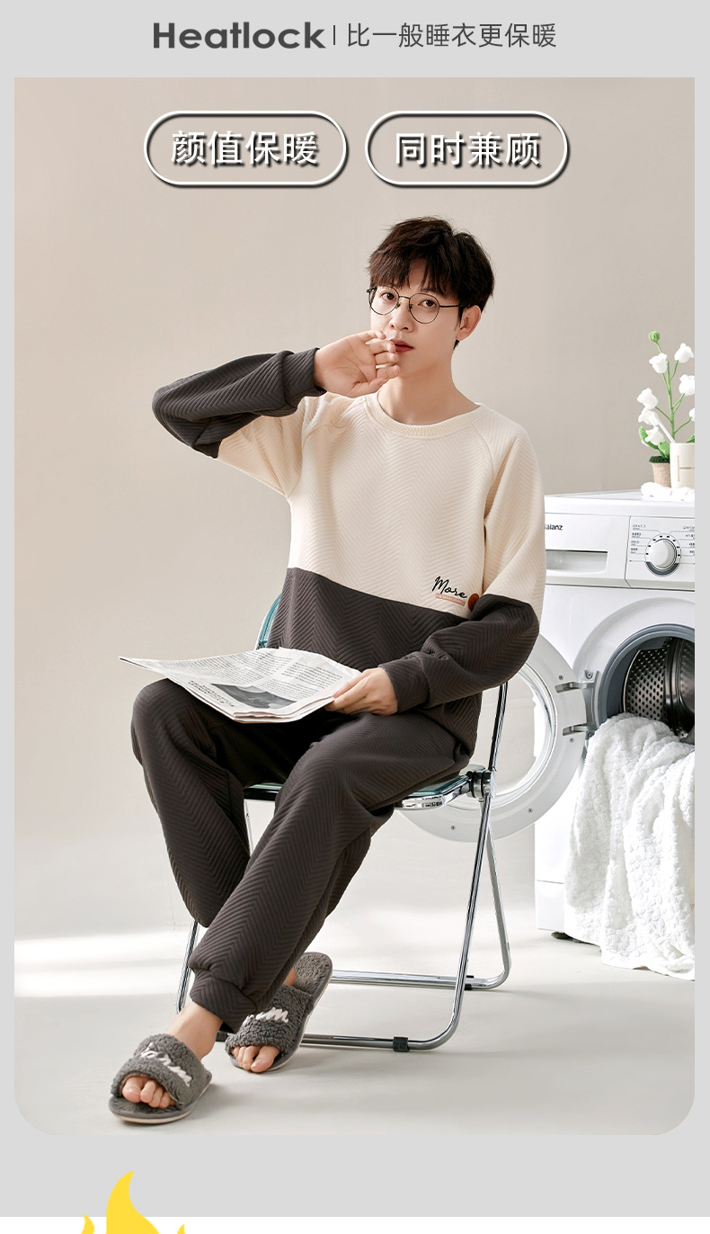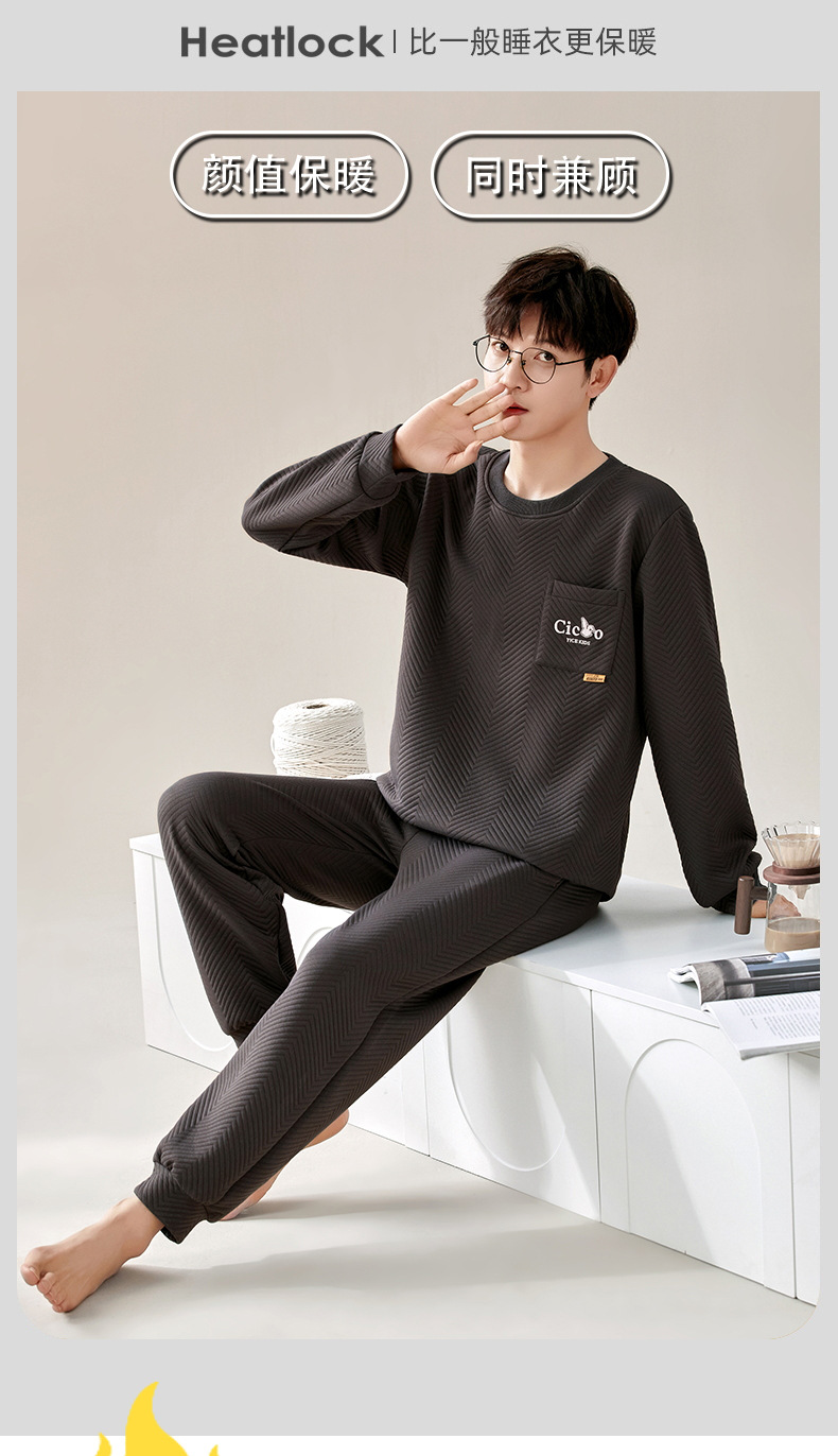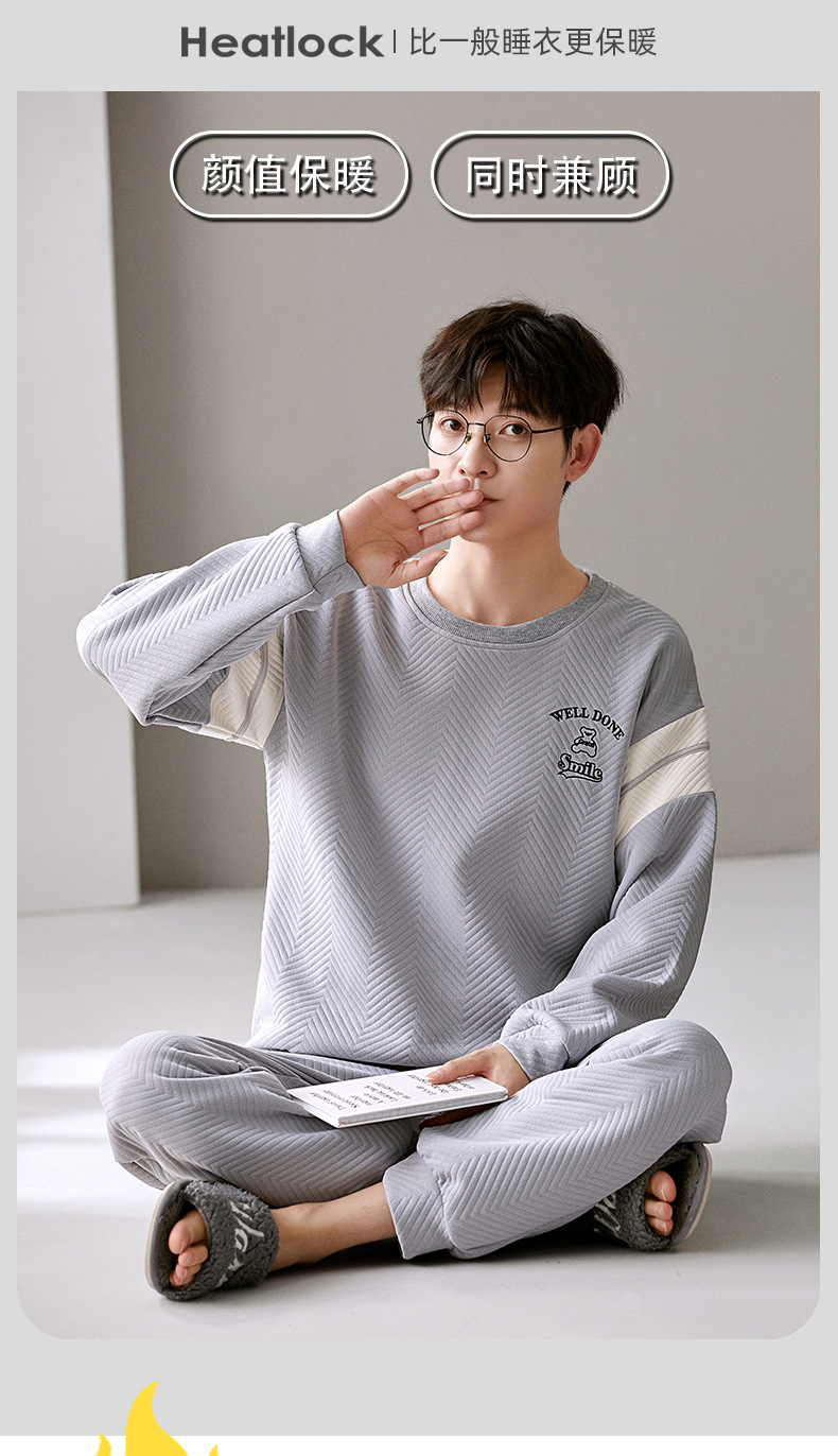 겨울 커플 잠옷 여자 남자의 풀오버 공기 면 샌드위치 따뜻한 세트 한 남자와 한 여자의 가정 옷을 착용 할 수 있습니다스토어 가기