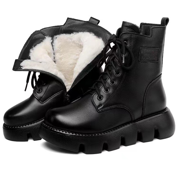 여성을위한 크로스 보더 두꺼운 밑창 마틴 부츠 2022 새로운 가을, 겨울 복고풍 짧은 부츠 레이스 업 부드러운 가죽 여성 부츠 부드러운 가죽 부츠