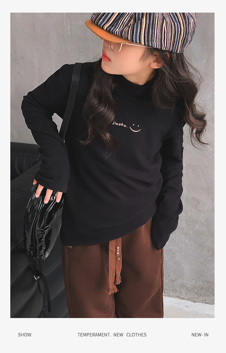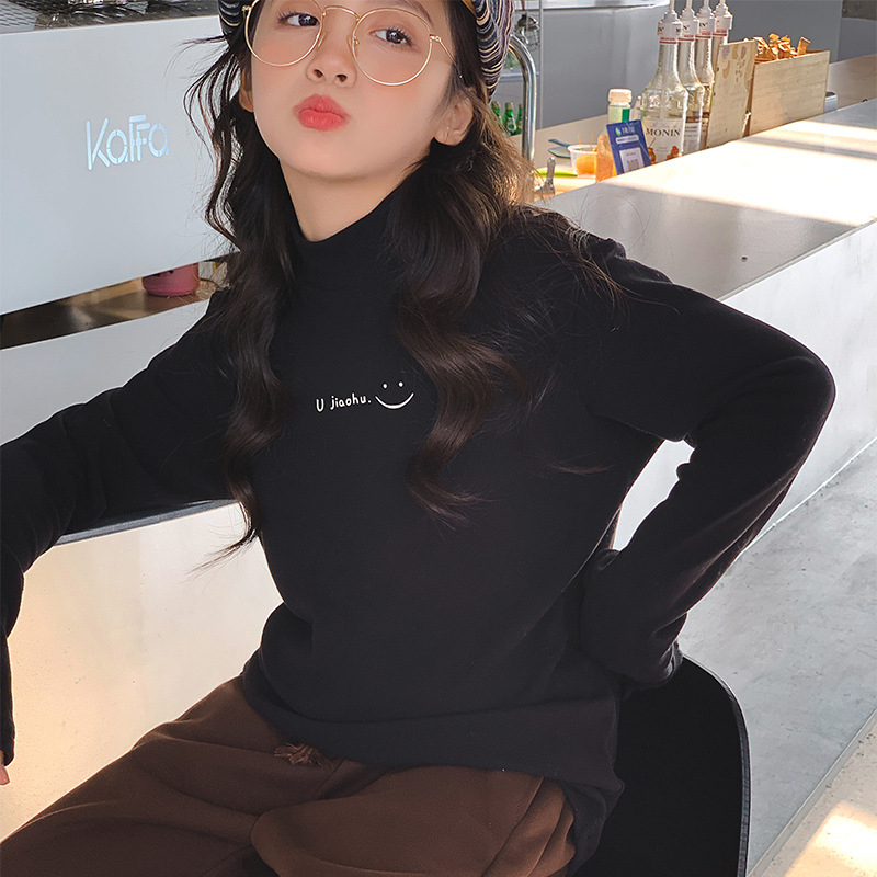 여아용 독일산 기모 내의 2025 가을 겨울 신상 한국 스타일 세련된 여아용 하프 터틀넥 기모 긴팔 티셔츠