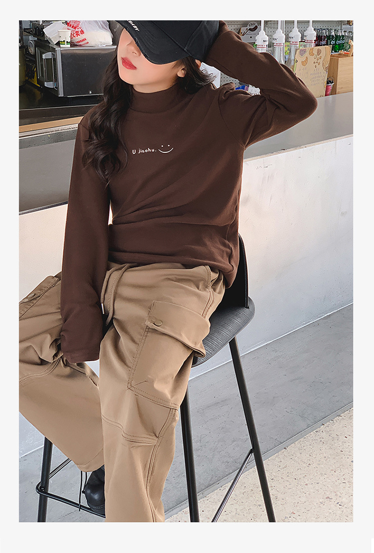 여아용 독일산 기모 내의 2025 가을 겨울 신상 한국 스타일 세련된 여아용 하프 터틀넥 기모 긴팔 티셔츠스토어 가기