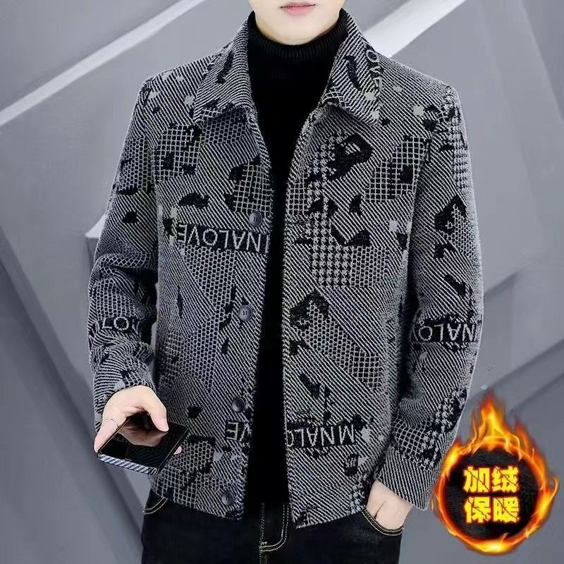 2023 남성 가을과 겨울 새로운 라펠 고급 모직 코트 캐주얼 모든 매치 두꺼운 짧은 모직 남성 코트