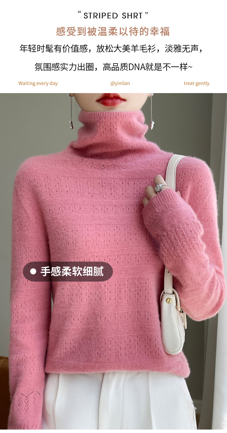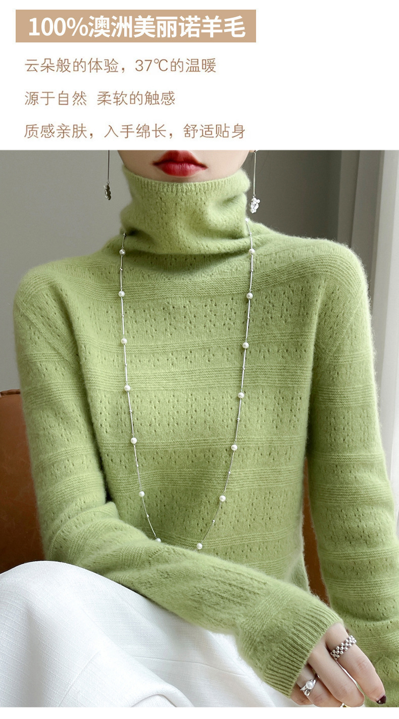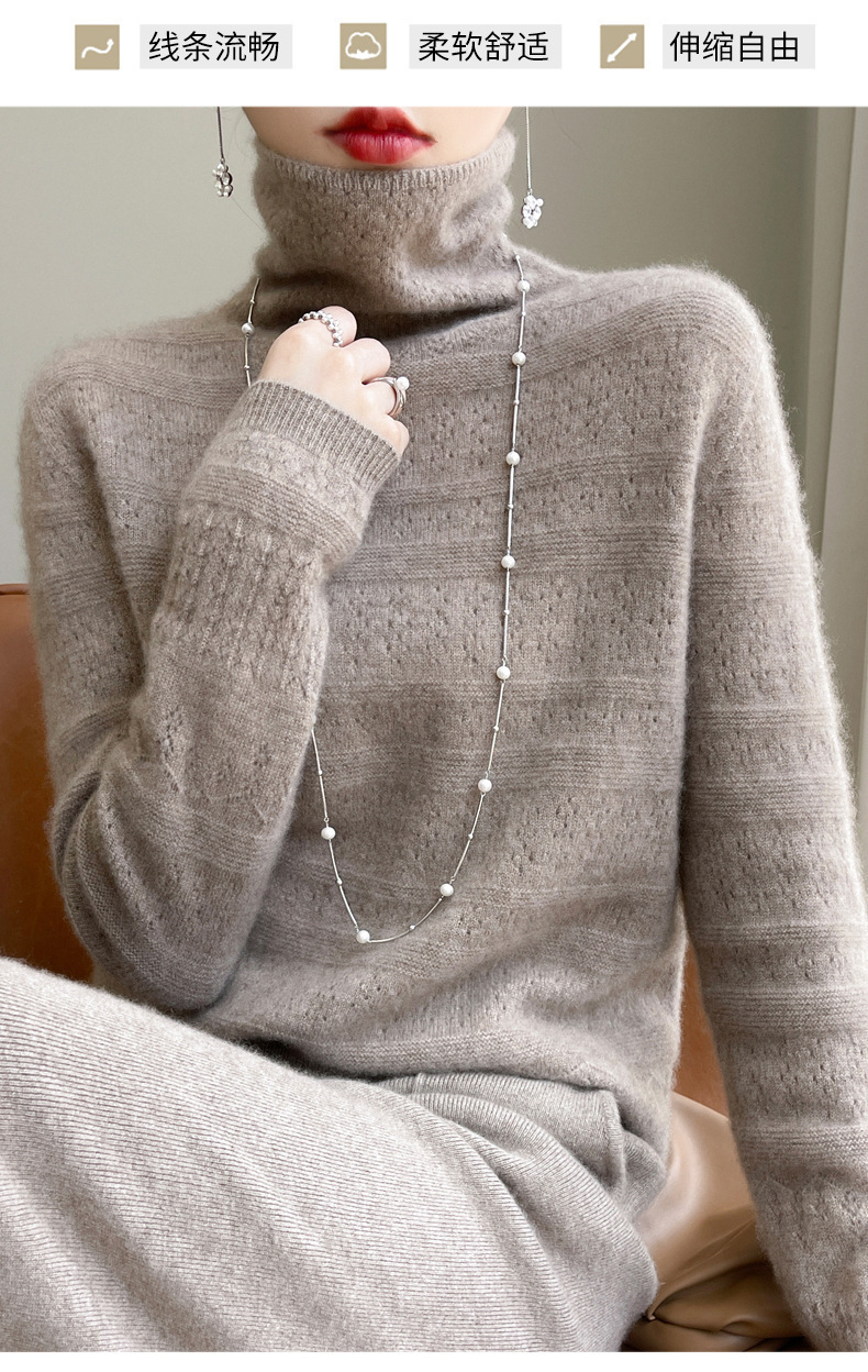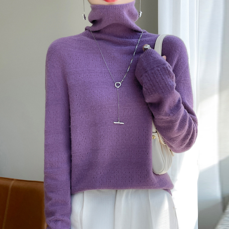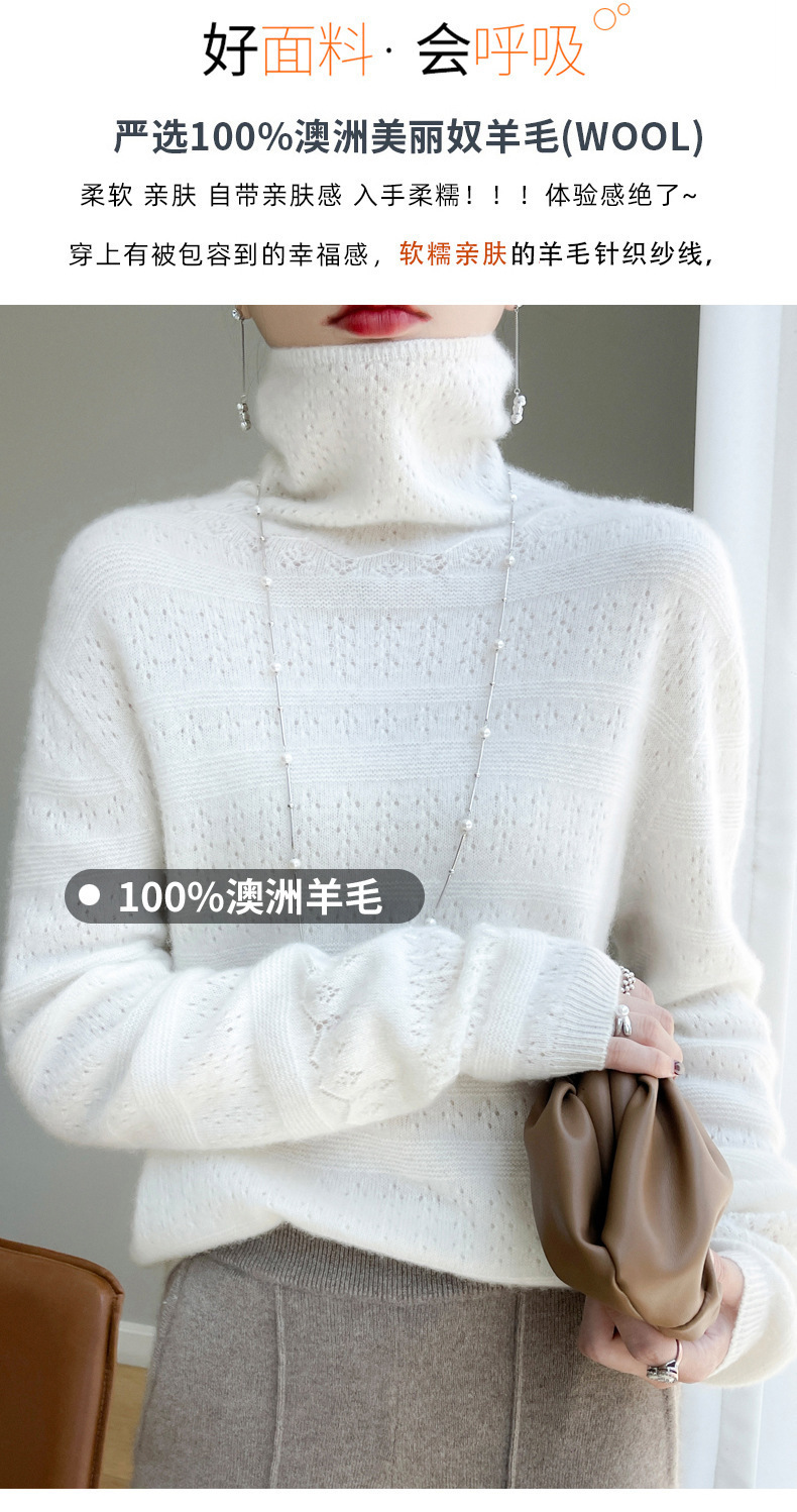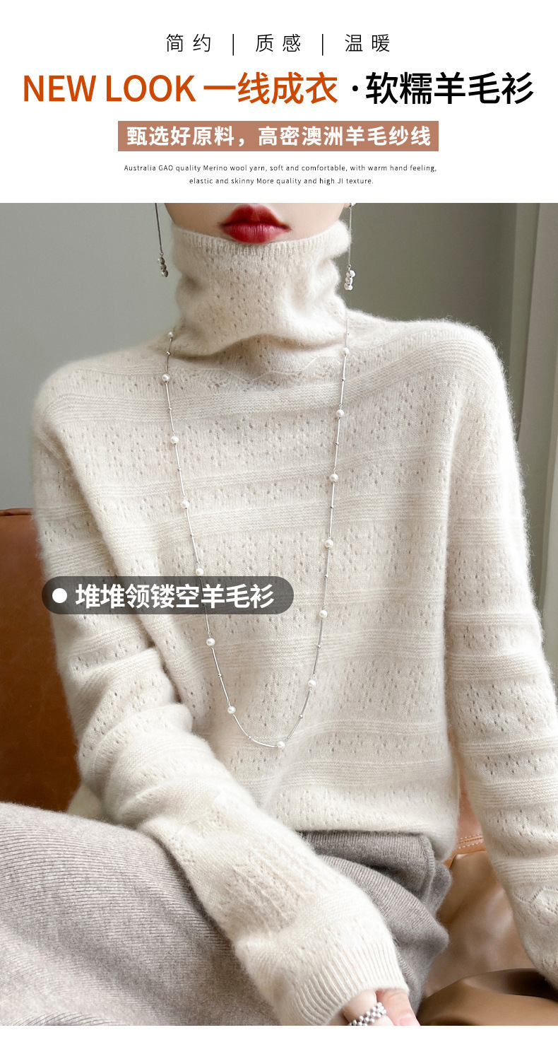 2023 가을과 겨울 새 울 스웨터 여성의 첫 번째 라인 레디 메이드 의류 원활한 내부 베이스 탑 더미 칼라 중공 스웨터스토어 가기