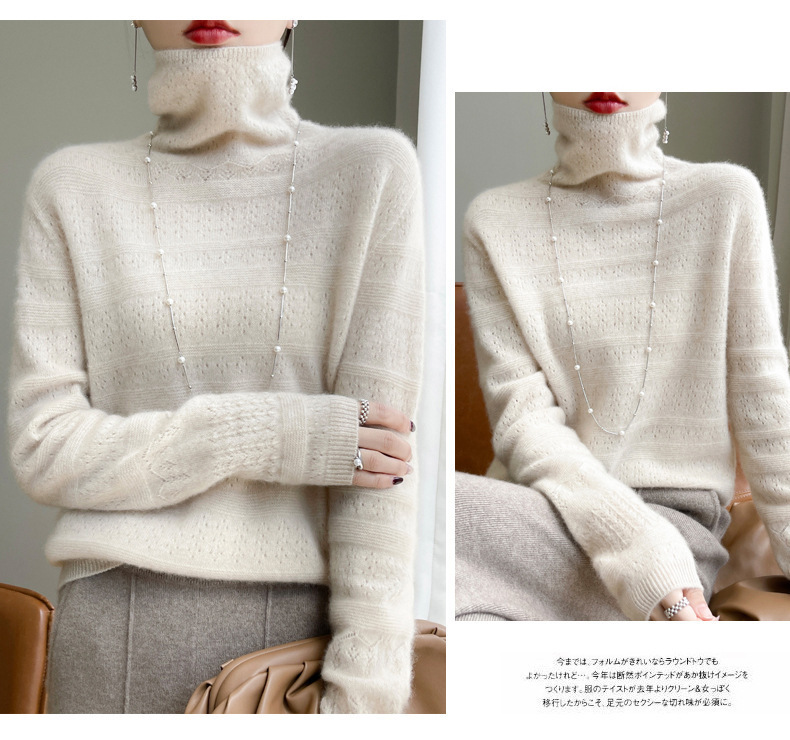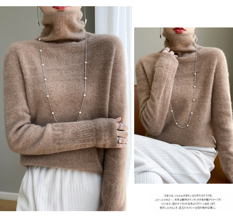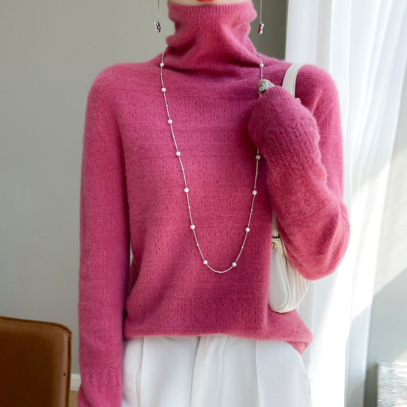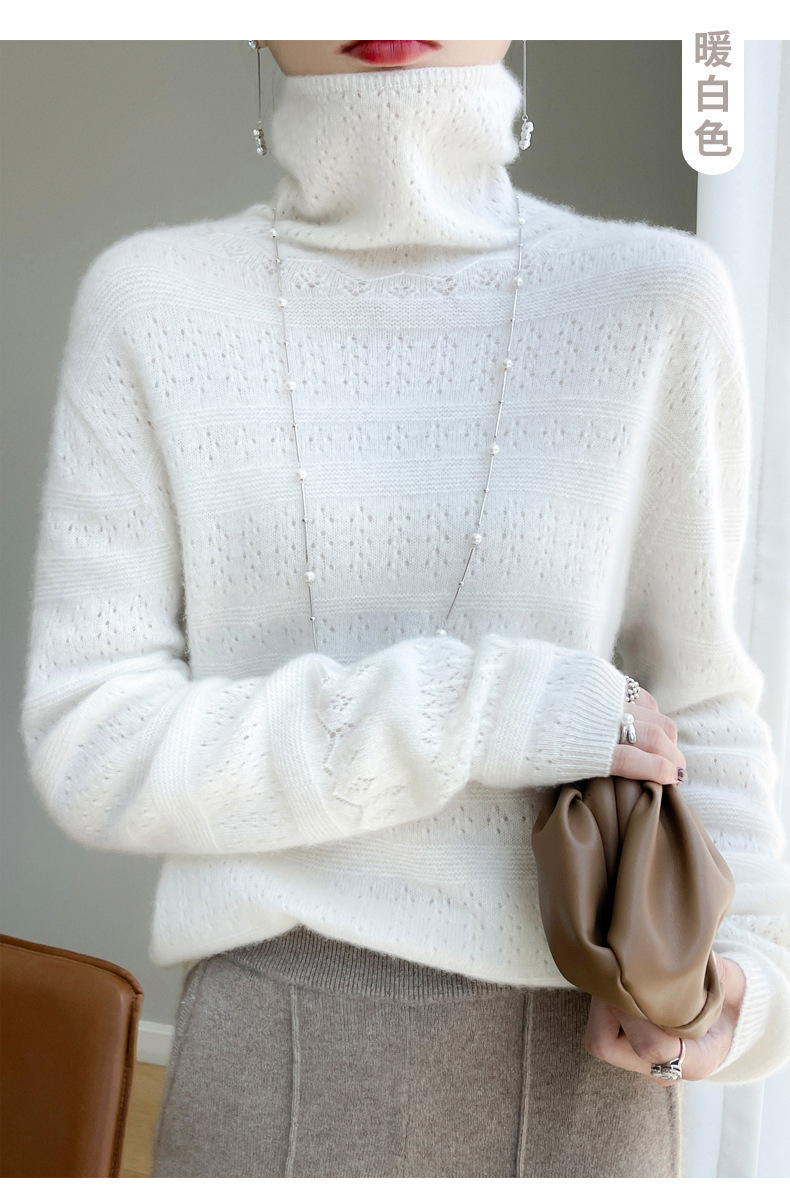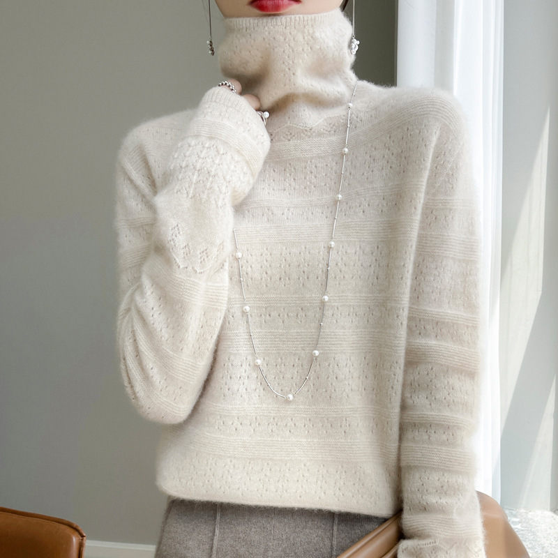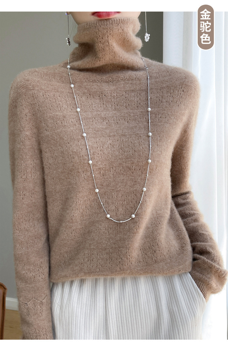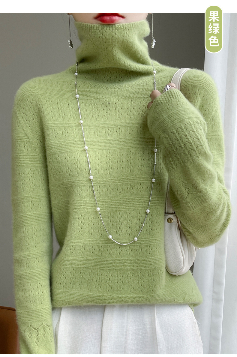 2023 가을과 겨울 새 울 스웨터 여성의 첫 번째 라인 레디 메이드 의류 원활한 내부 베이스 탑 더미 칼라 중공 스웨터스토어 가기