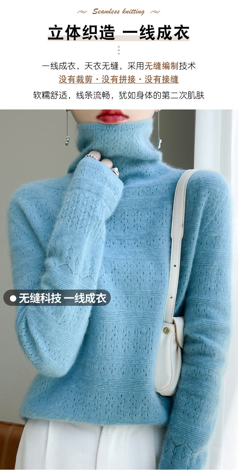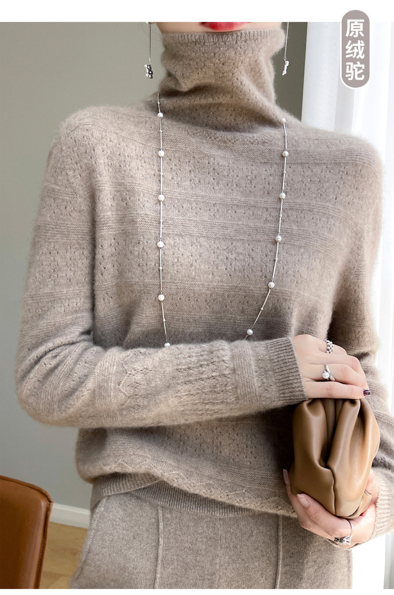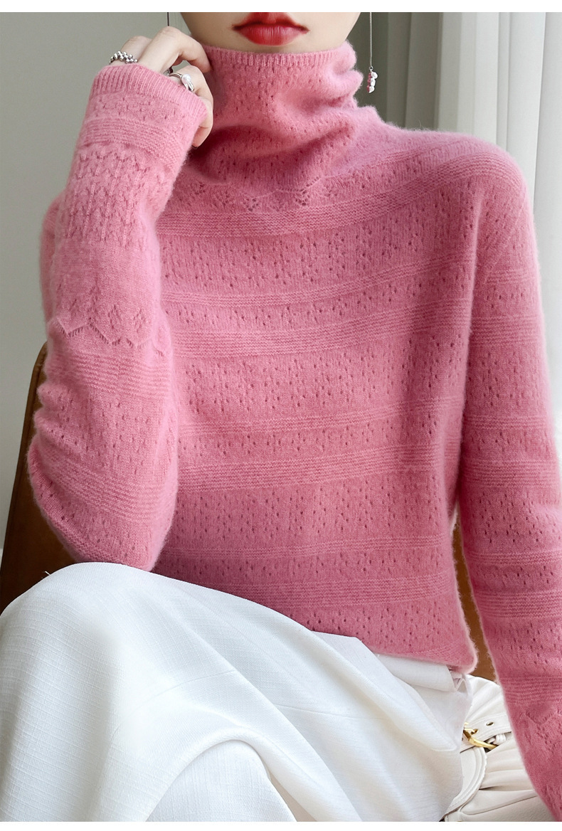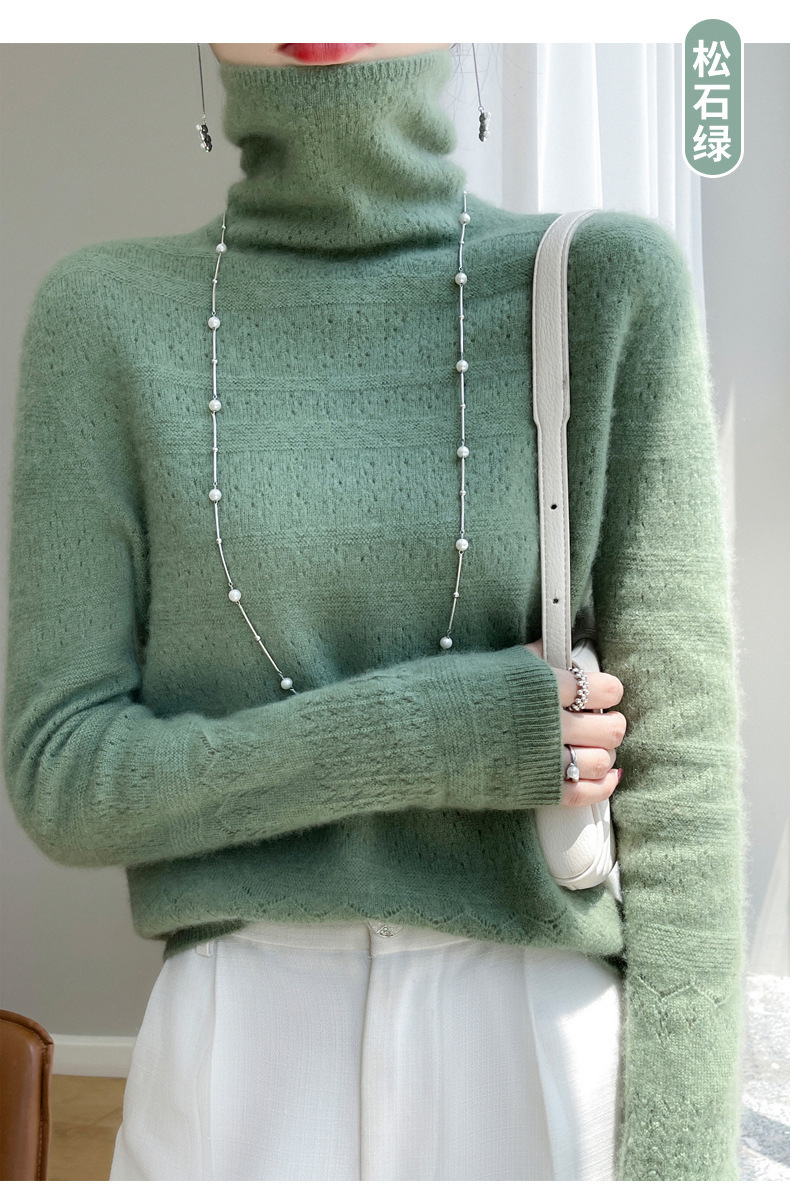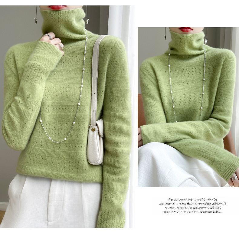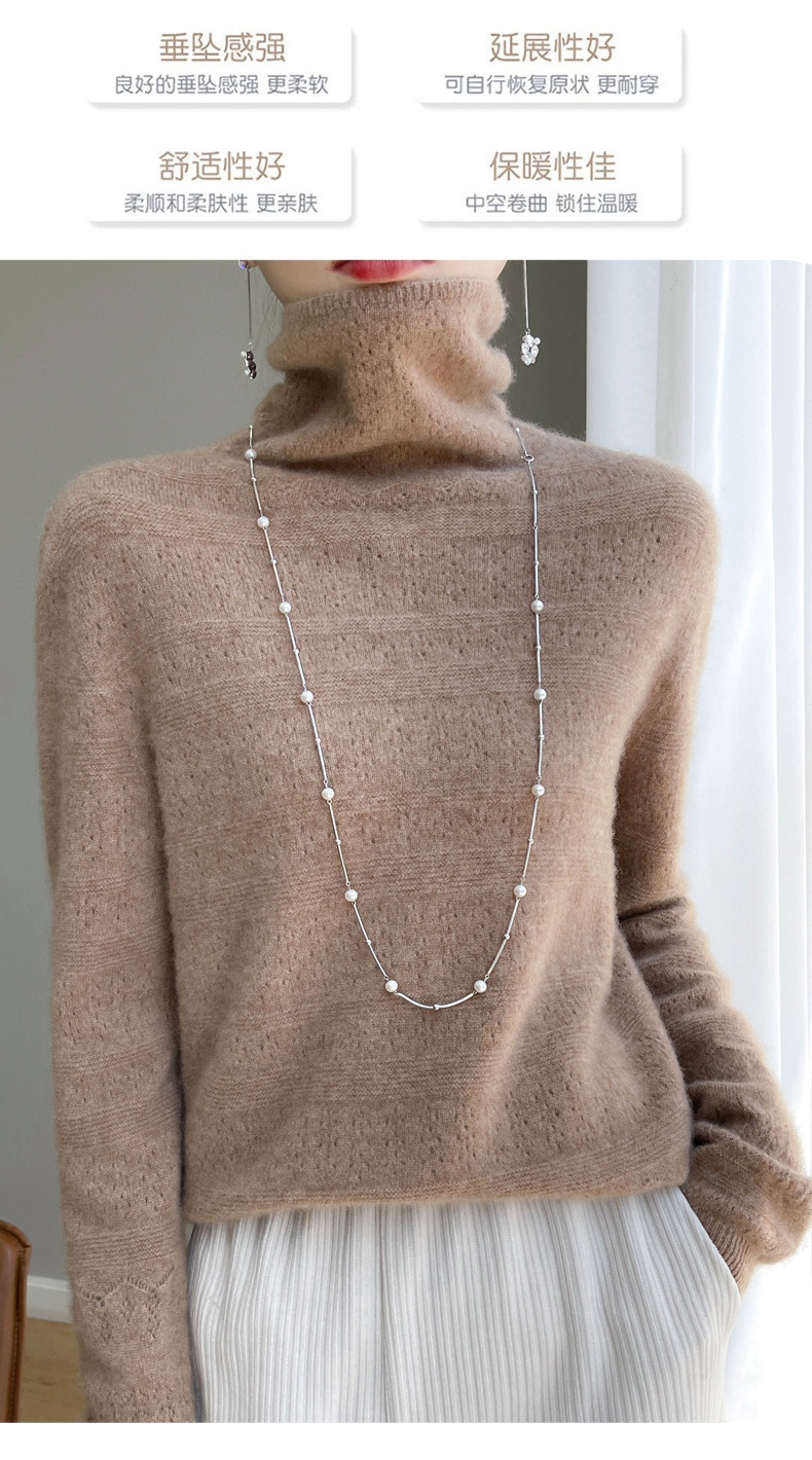 2023 가을과 겨울 새 울 스웨터 여성의 첫 번째 라인 레디 메이드 의류 원활한 내부 베이스 탑 더미 칼라 중공 스웨터스토어 가기
