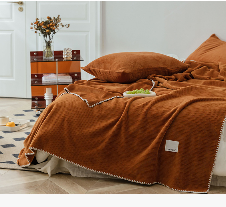 새로운 두꺼운 와플 담요 더블 레이어 복합 우유 벨벳 단색 다기능 담요 크로스 보더 라이브 방송