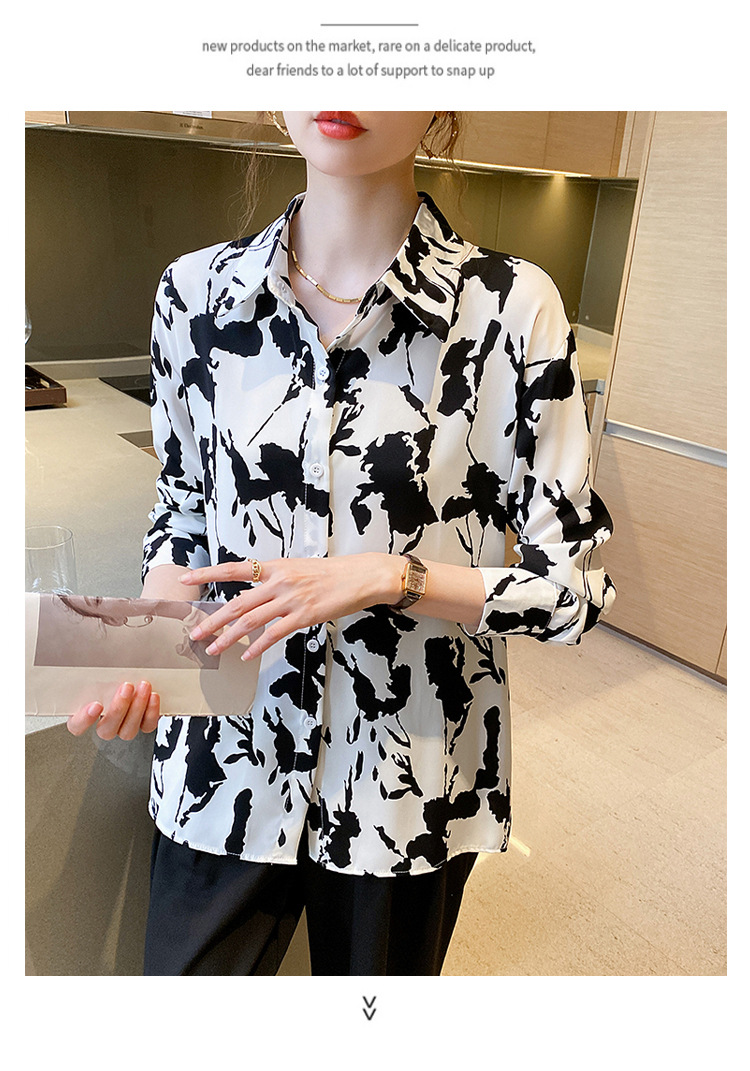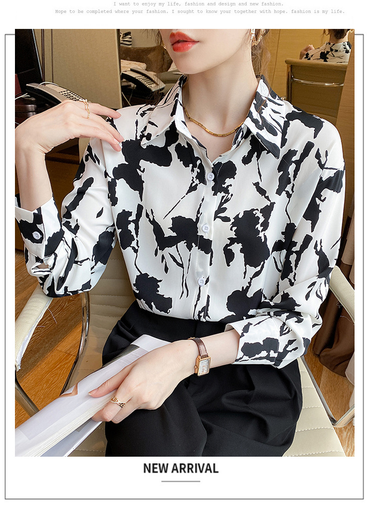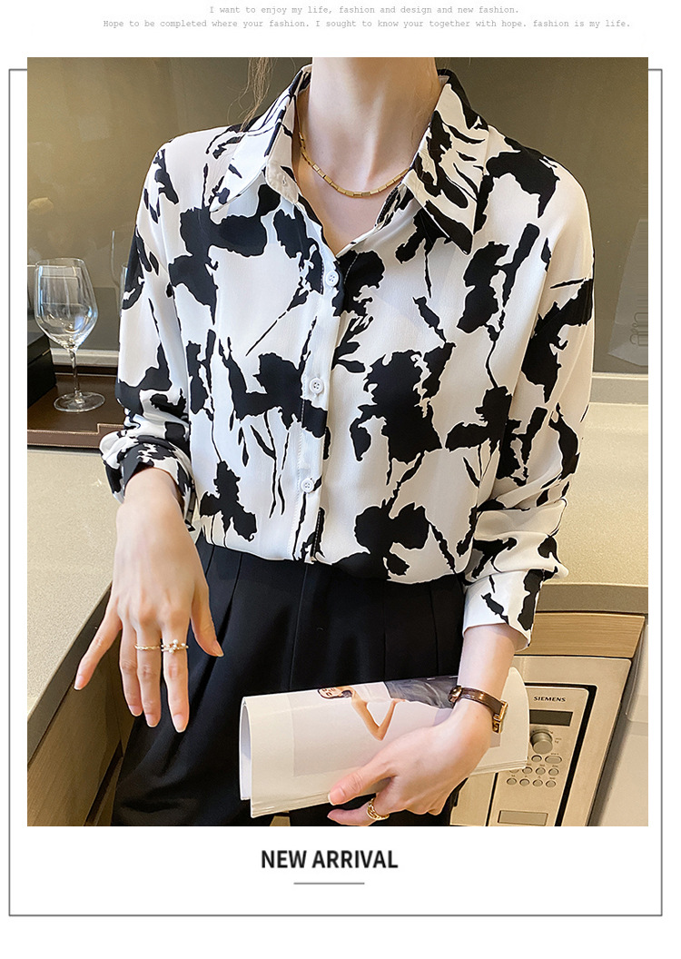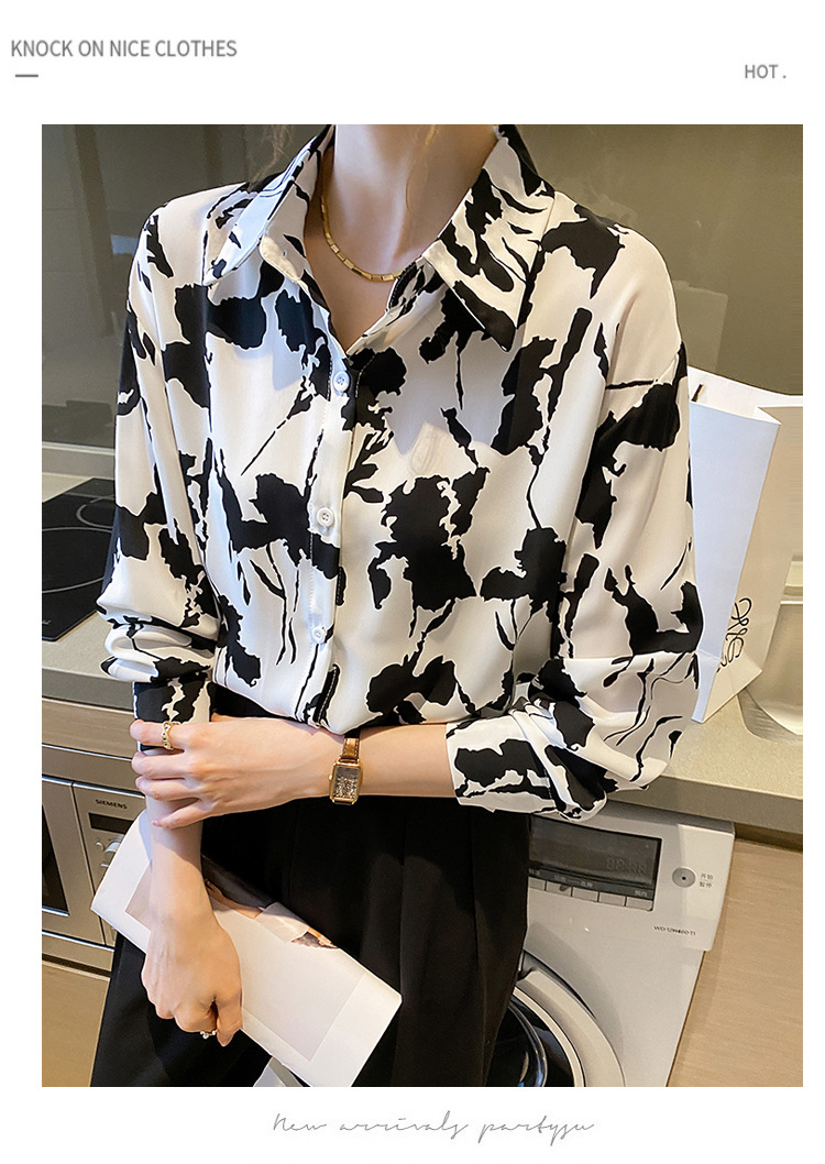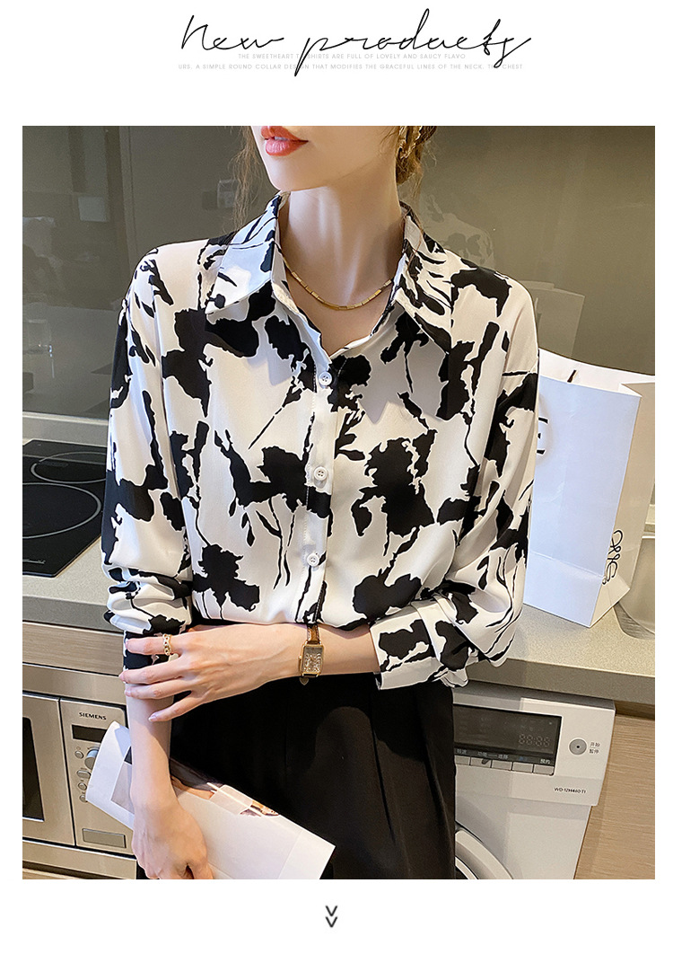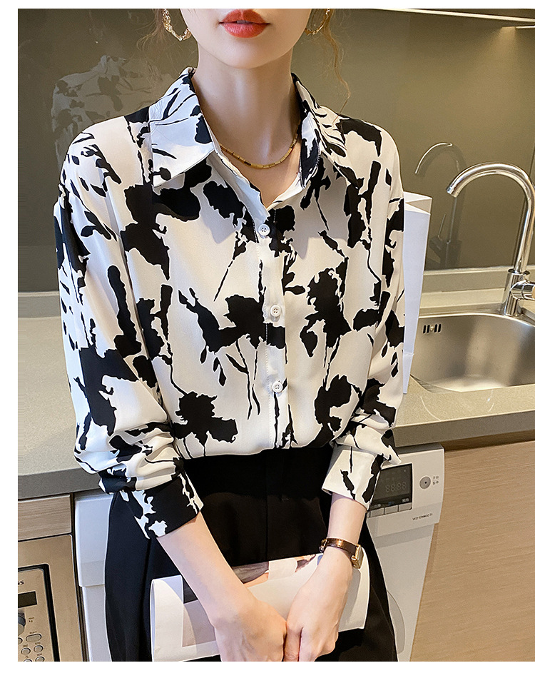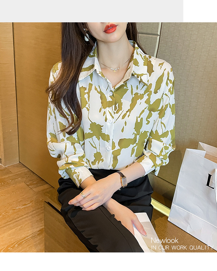 새로운 패션 프린트 탑 디자인 센스 라펠 우아한 느슨한 슬리밍 웨스턴 스타일 모든 매치 맞춤형 여성 셔츠스토어 가기