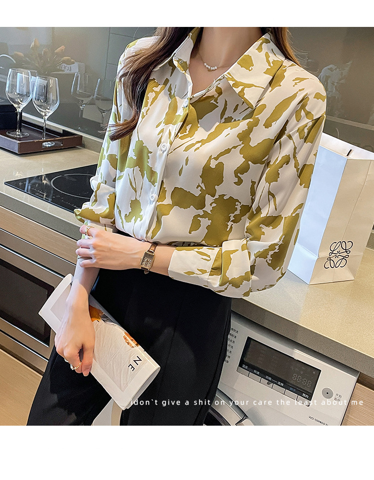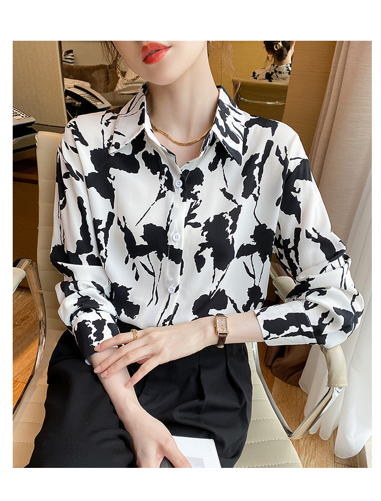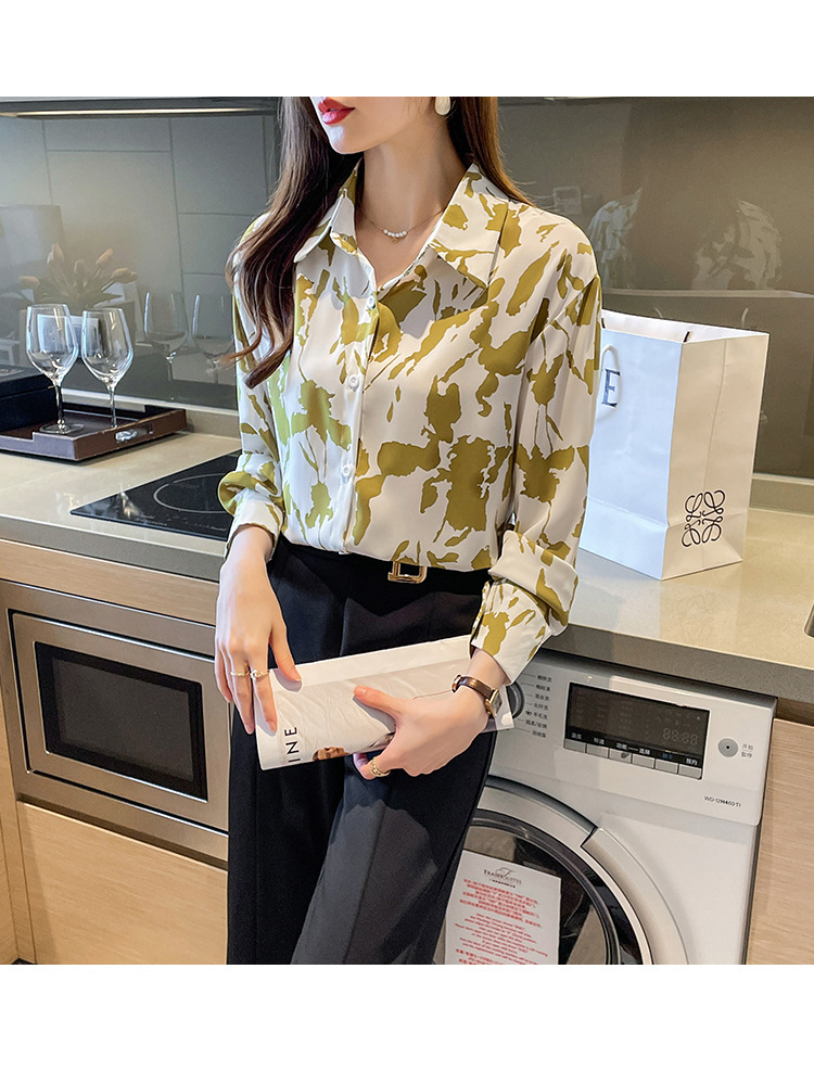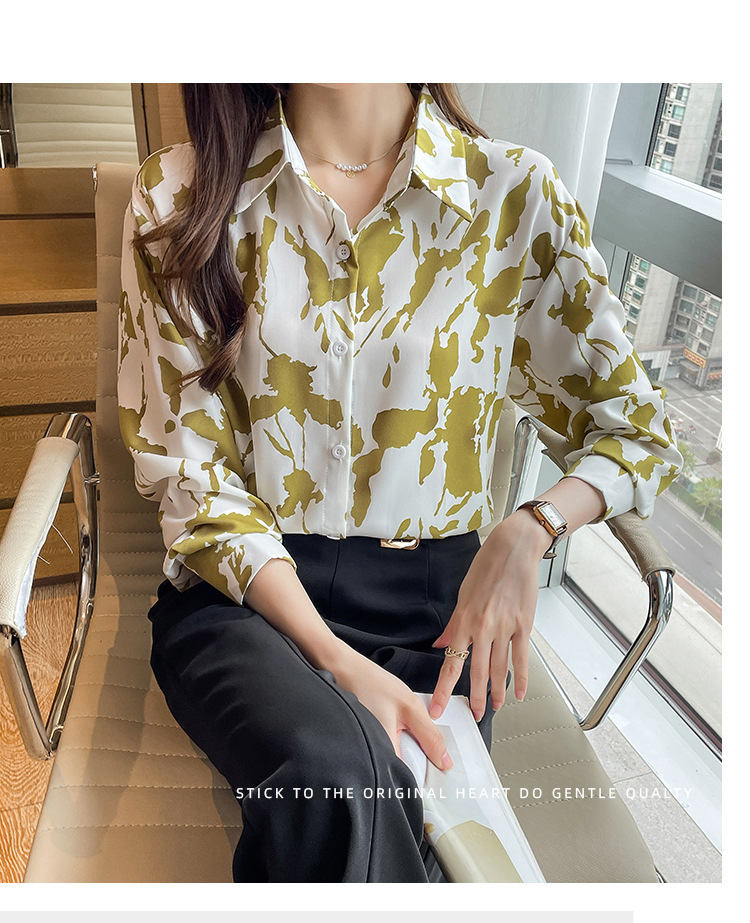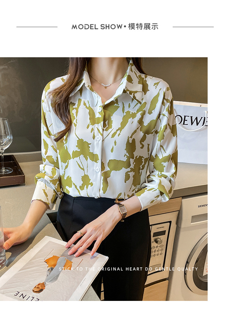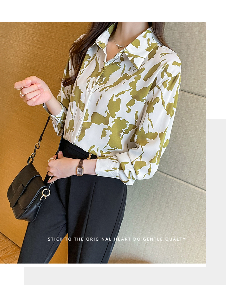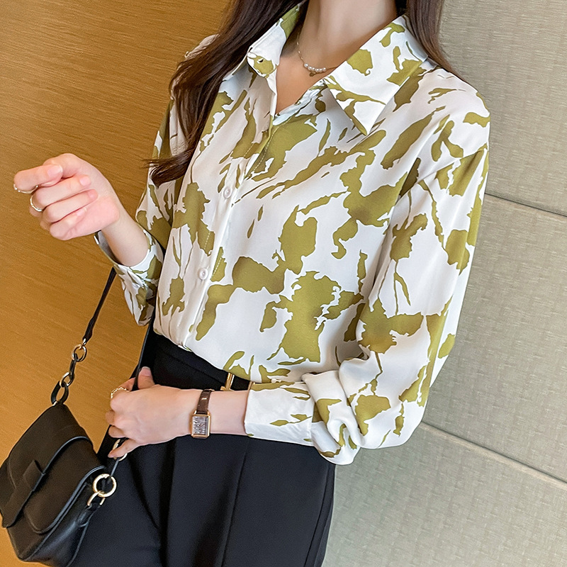 새로운 패션 프린트 탑 디자인 센스 라펠 우아한 느슨한 슬리밍 웨스턴 스타일 모든 매치 맞춤형 여성 셔츠스토어 가기