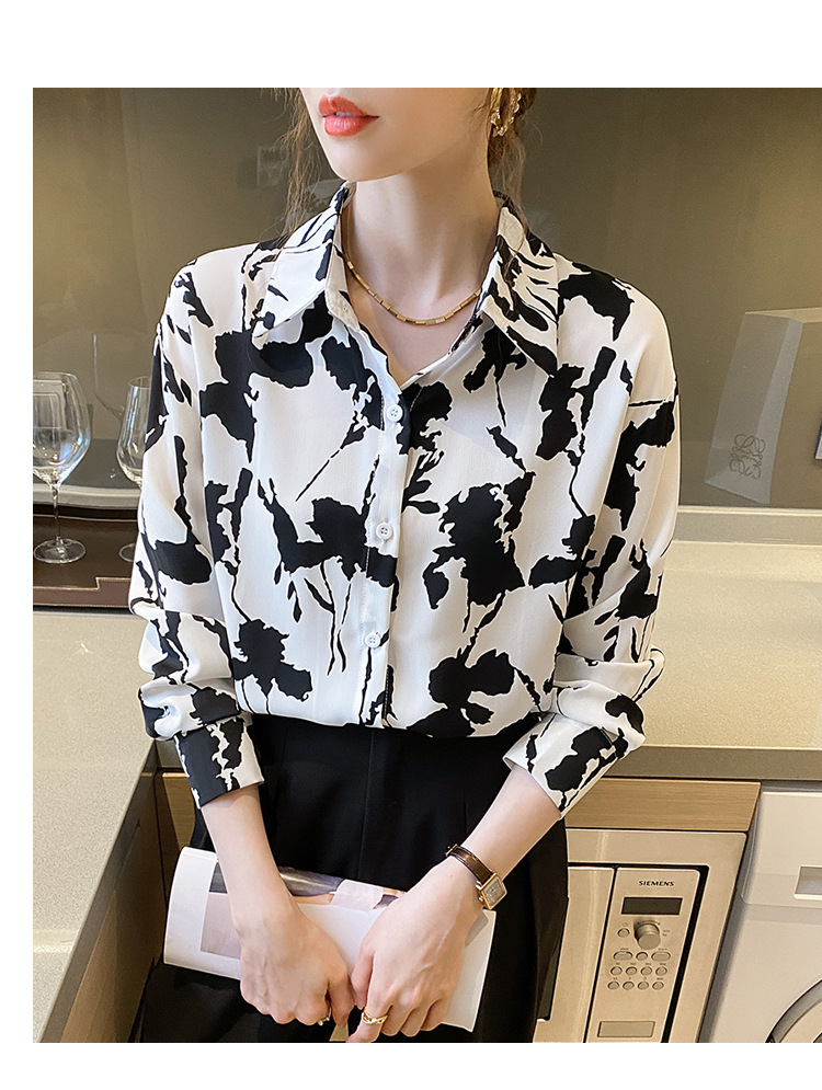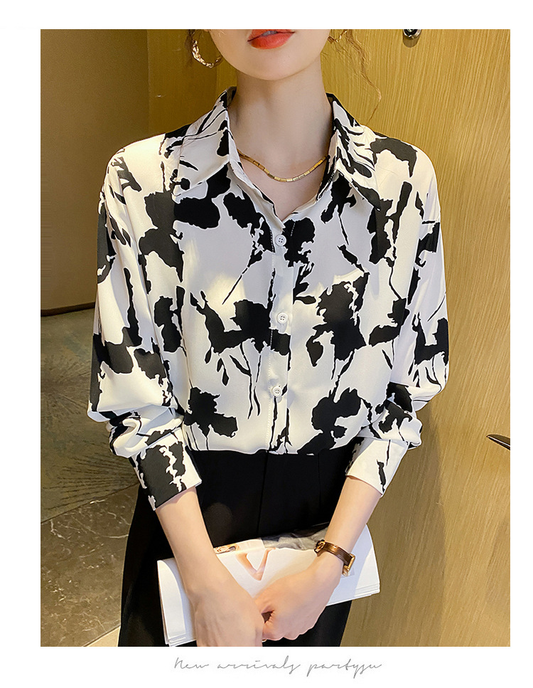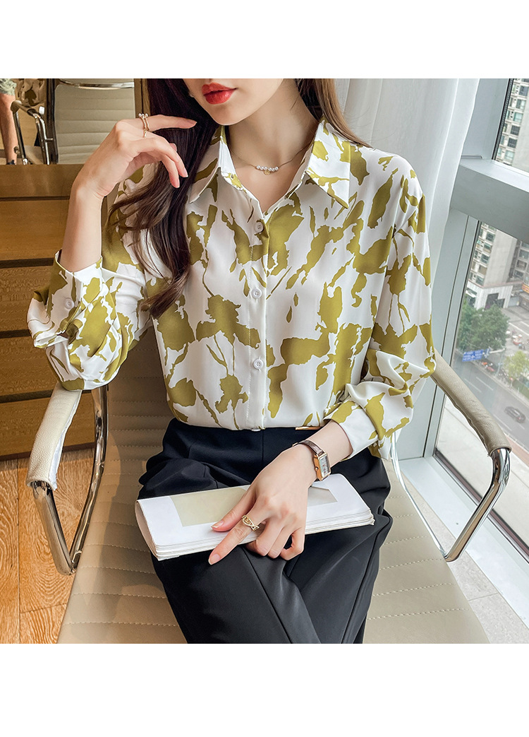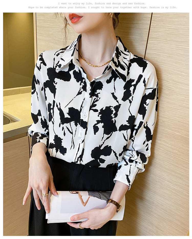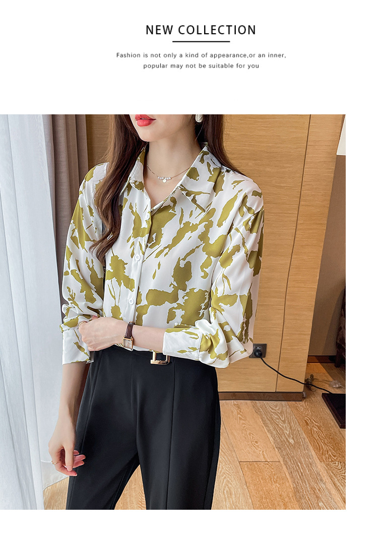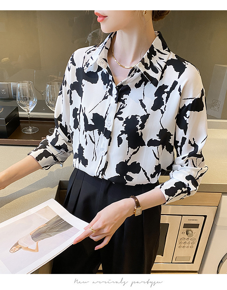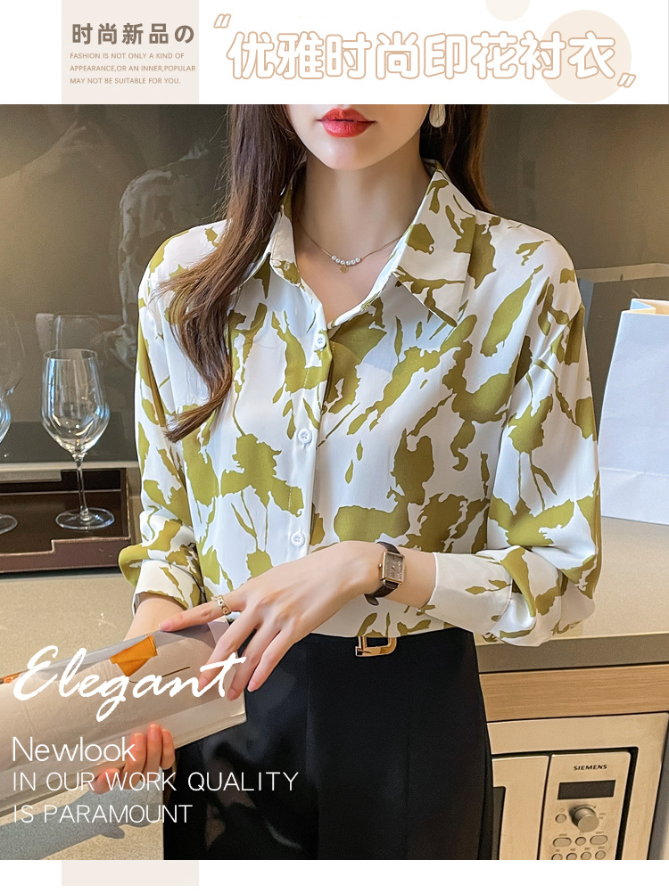 새로운 패션 프린트 탑 디자인 센스 라펠 우아한 느슨한 슬리밍 웨스턴 스타일 모든 매치 맞춤형 여성 셔츠스토어 가기