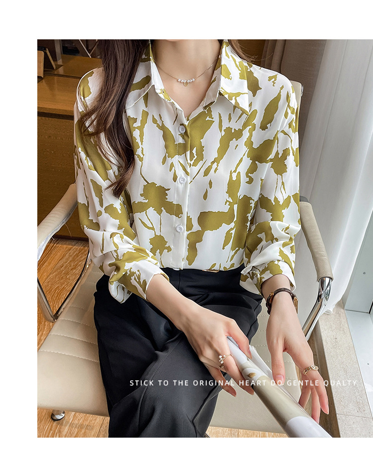 새로운 패션 프린트 탑 디자인 센스 라펠 우아한 느슨한 슬리밍 웨스턴 스타일 모든 매치 맞춤형 여성 셔츠