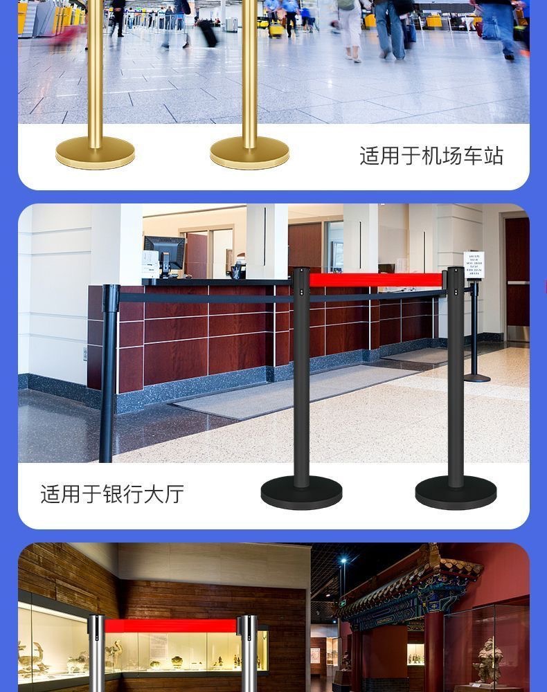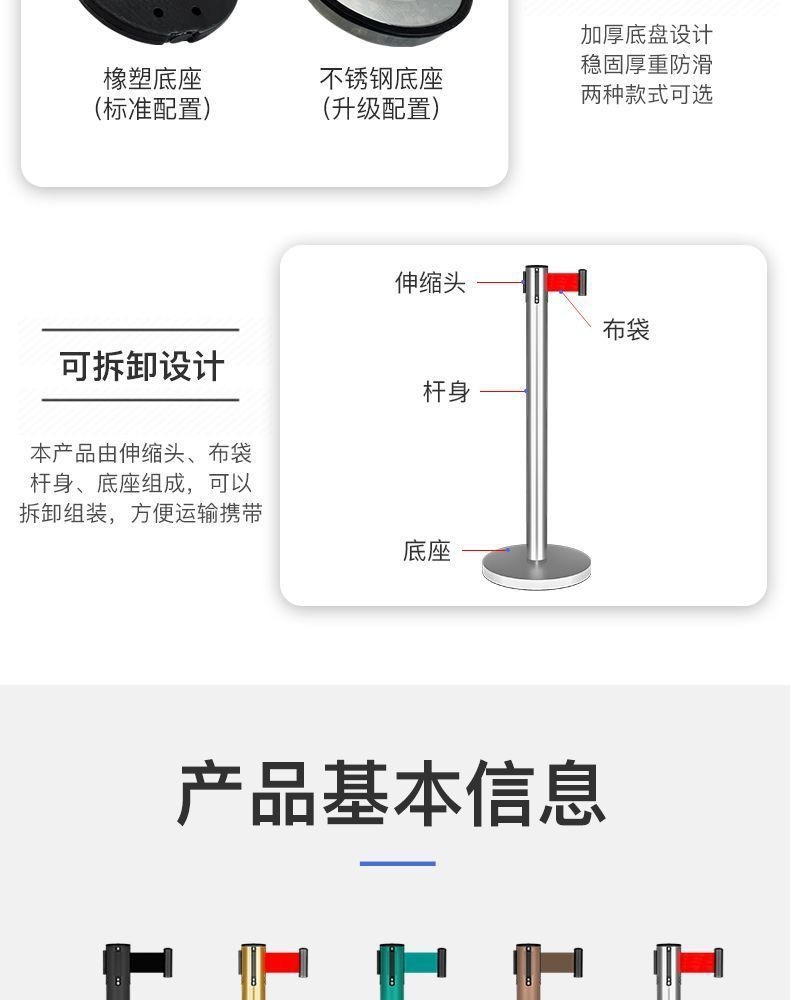 1.0m 라인 안전 접이식 배리어, 대기열 스테인레스 스틸 분리 테이프, 울타리 경고 기둥, 은행 기둥 유형 전체 세트
