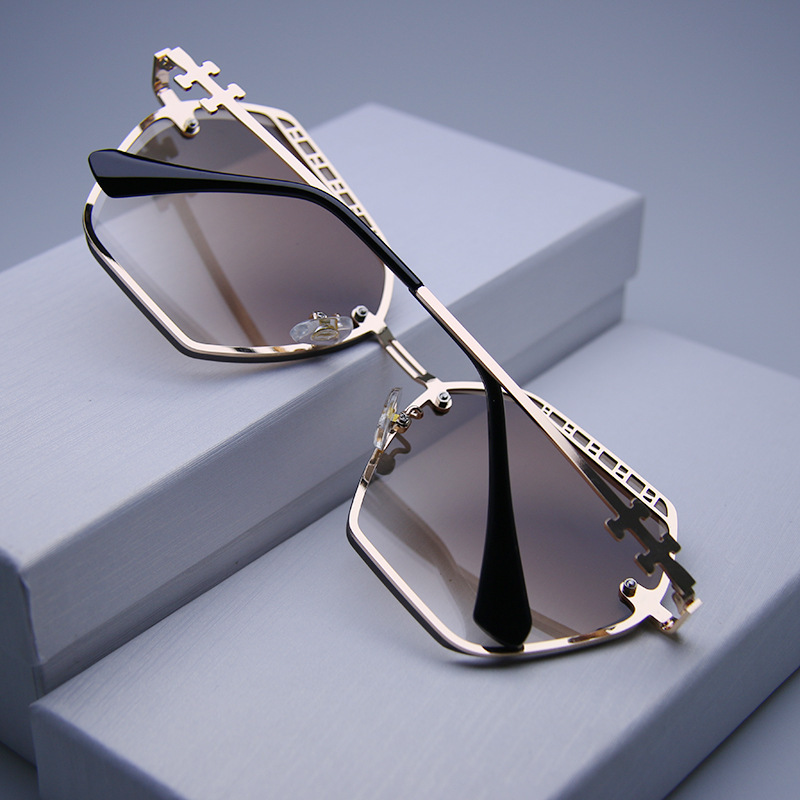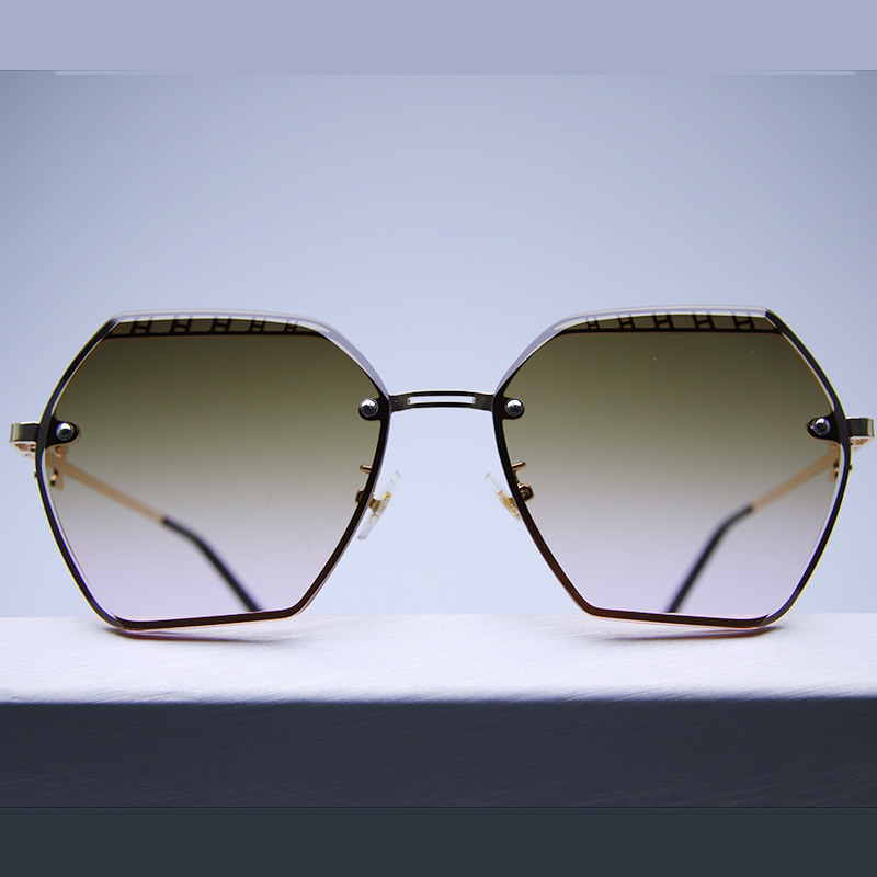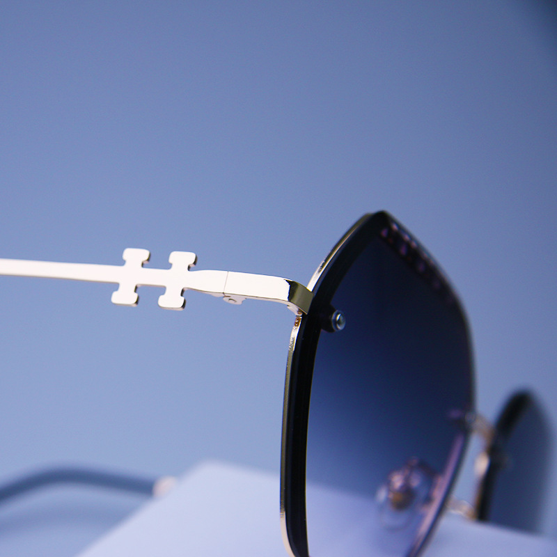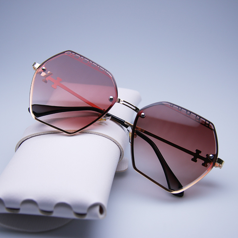 2023 선글라스 여성 프레임리스 트리밍 높은 감각 성격 HD 불규칙한 선글라스 UV 보호 패션 도매스토어 가기