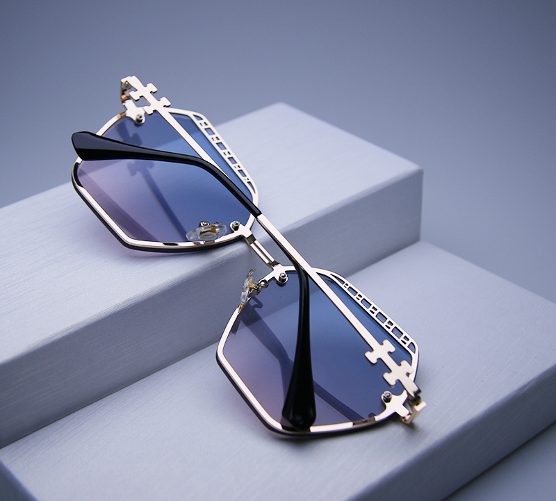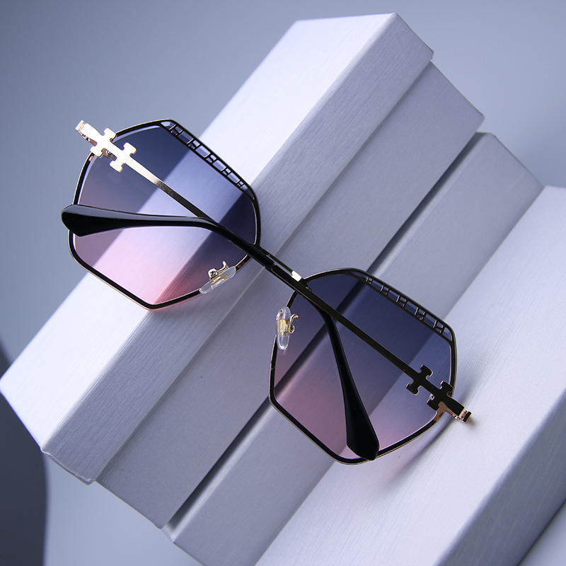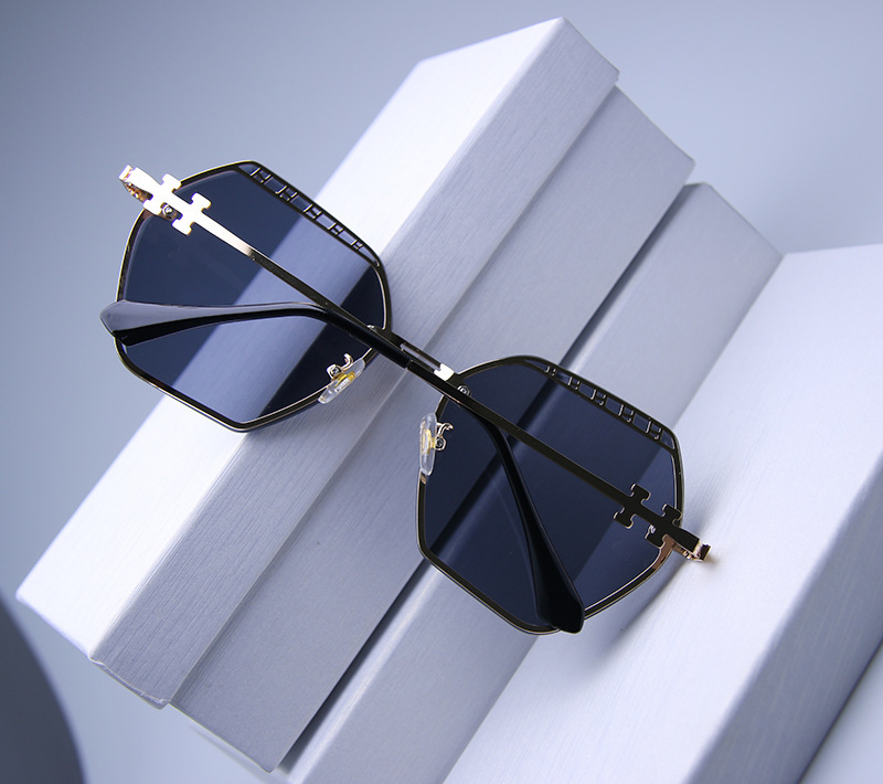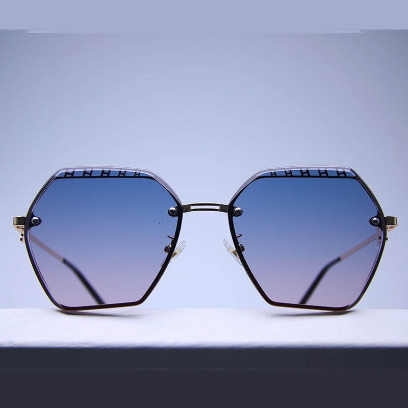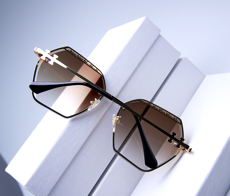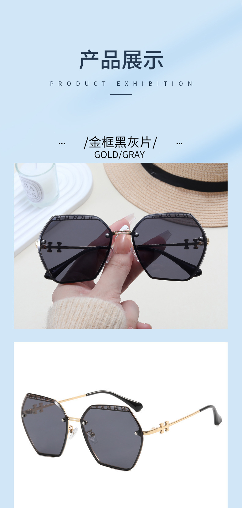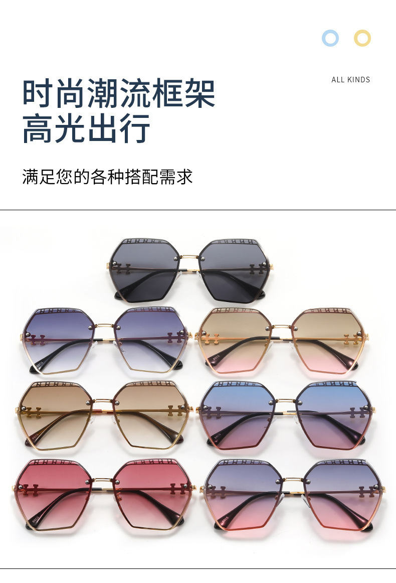 2023 선글라스 여성 프레임리스 트리밍 높은 감각 성격 HD 불규칙한 선글라스 UV 보호 패션 도매