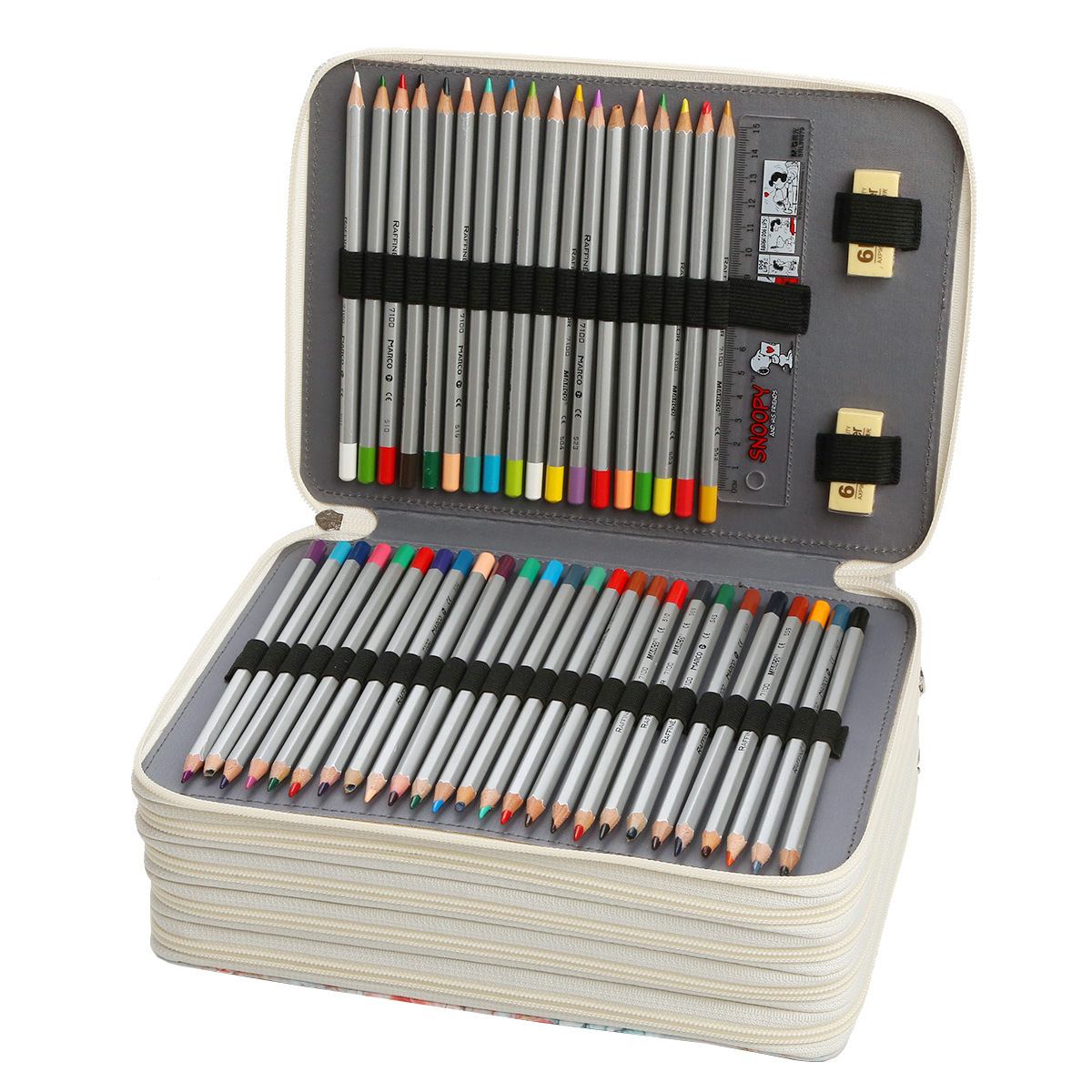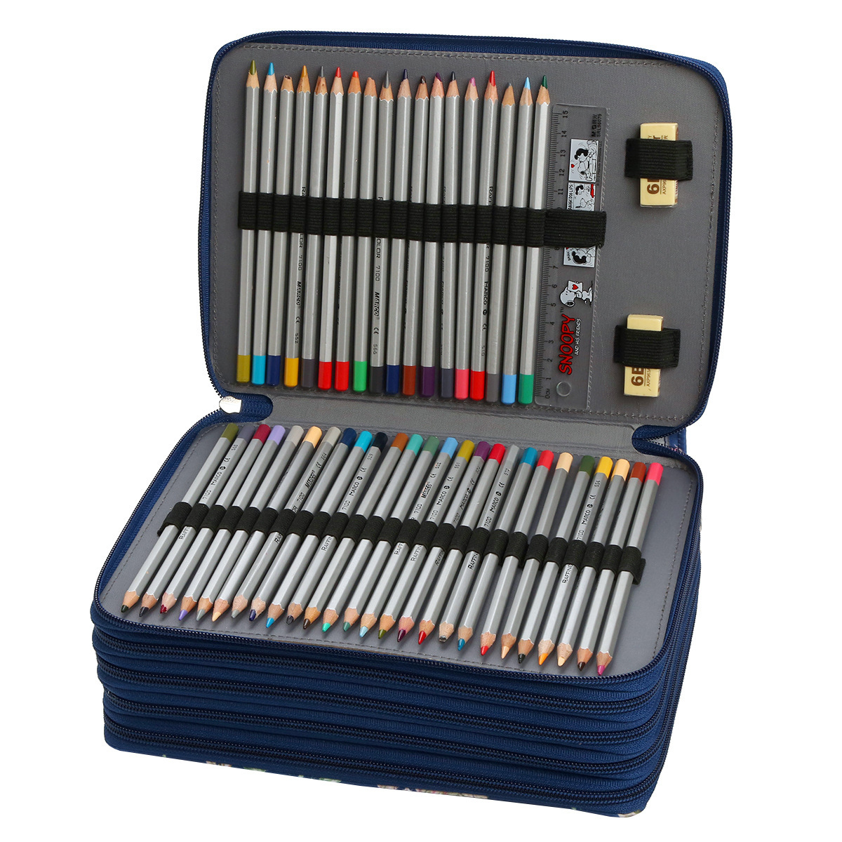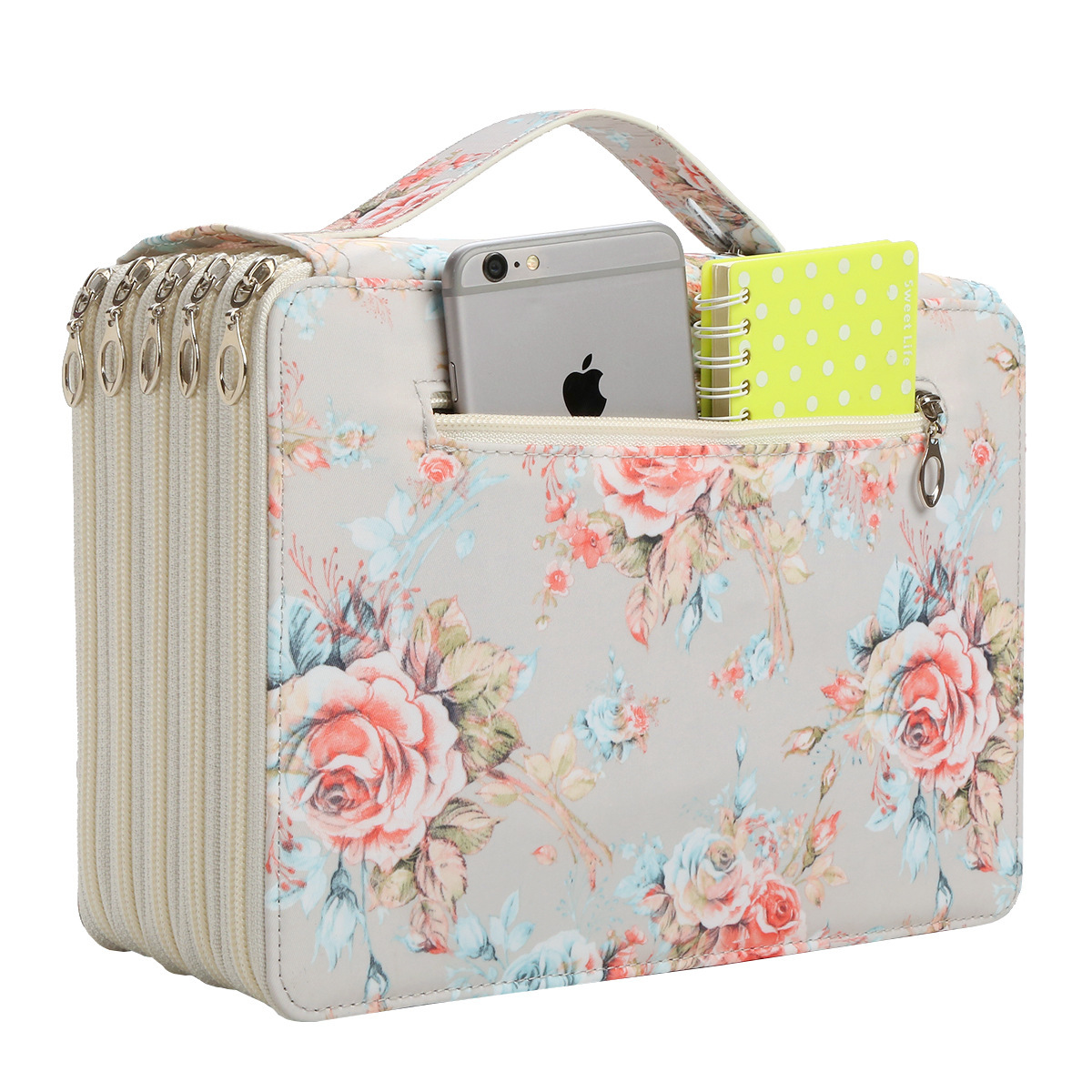 크로스 보더 뉴 252 홀 사이드 지퍼 아트 펜슬 백 로즈 빅 플라워 스케치 페인팅 펜슬 백 대용량 펜슬 백
