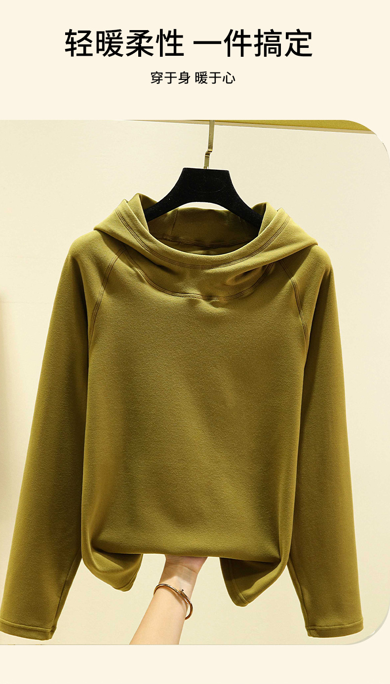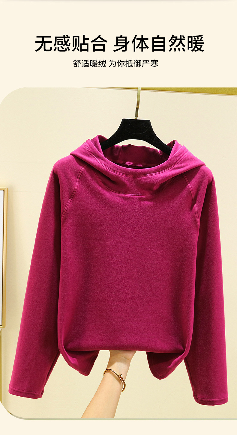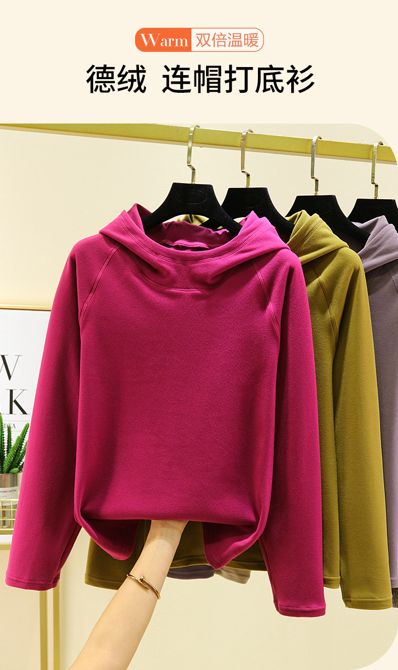 德绒连帽卫衣女秋冬季加绒加厚长袖打底衫外穿保暖上衣双面绒T恤