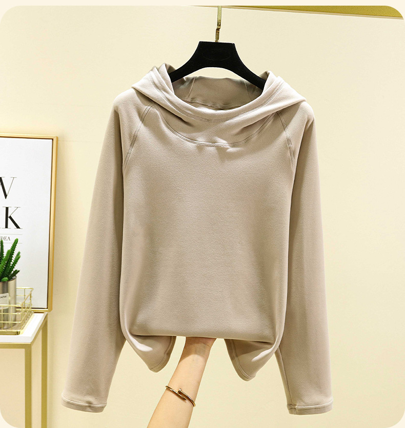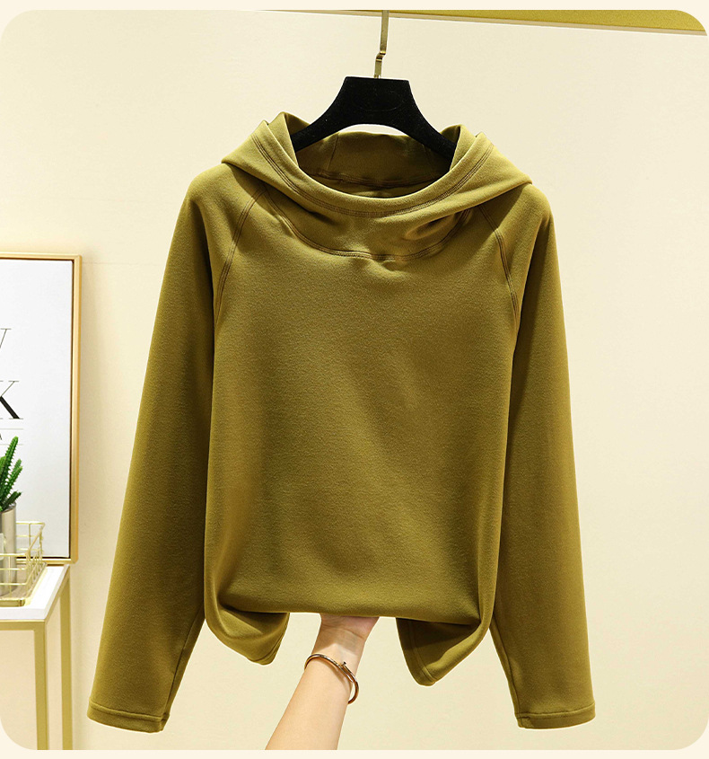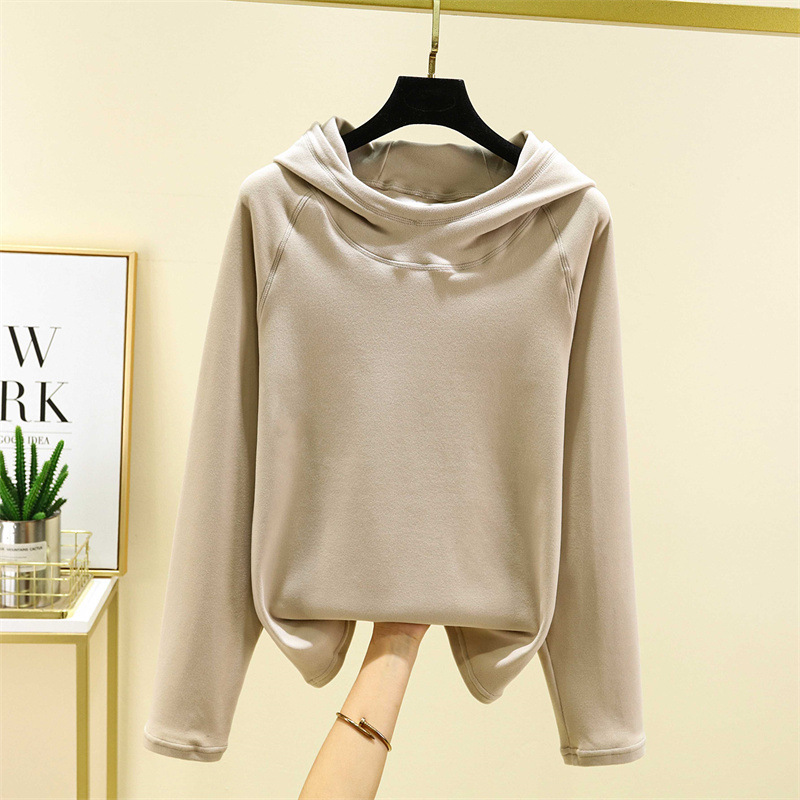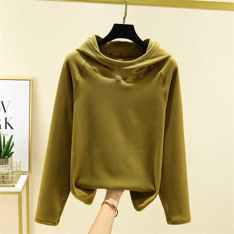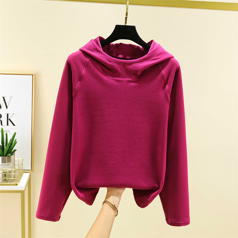 독일 벨벳 후드 스웨터 여성의 가을과 겨울 기모 두꺼운 긴팔 베이스 셔츠 겉옷을 입고 따뜻한 탑 양면 벨벳 티셔츠