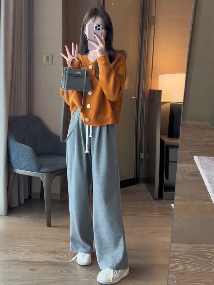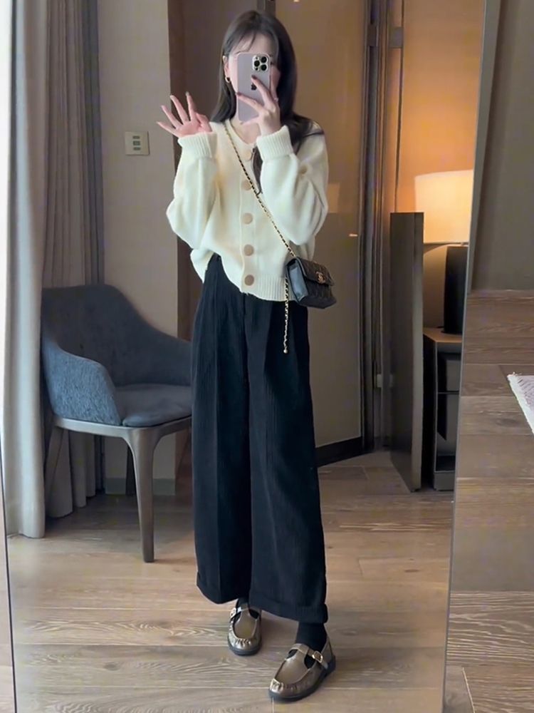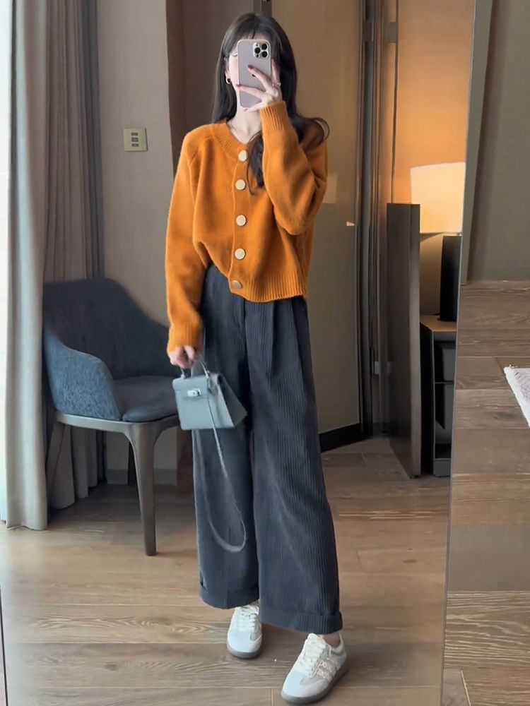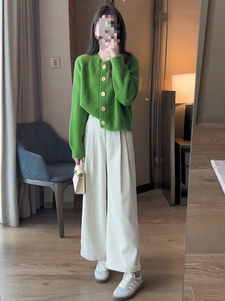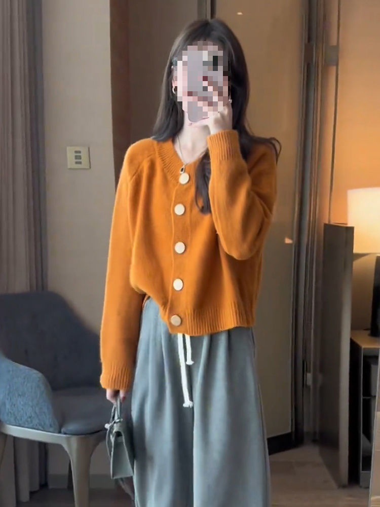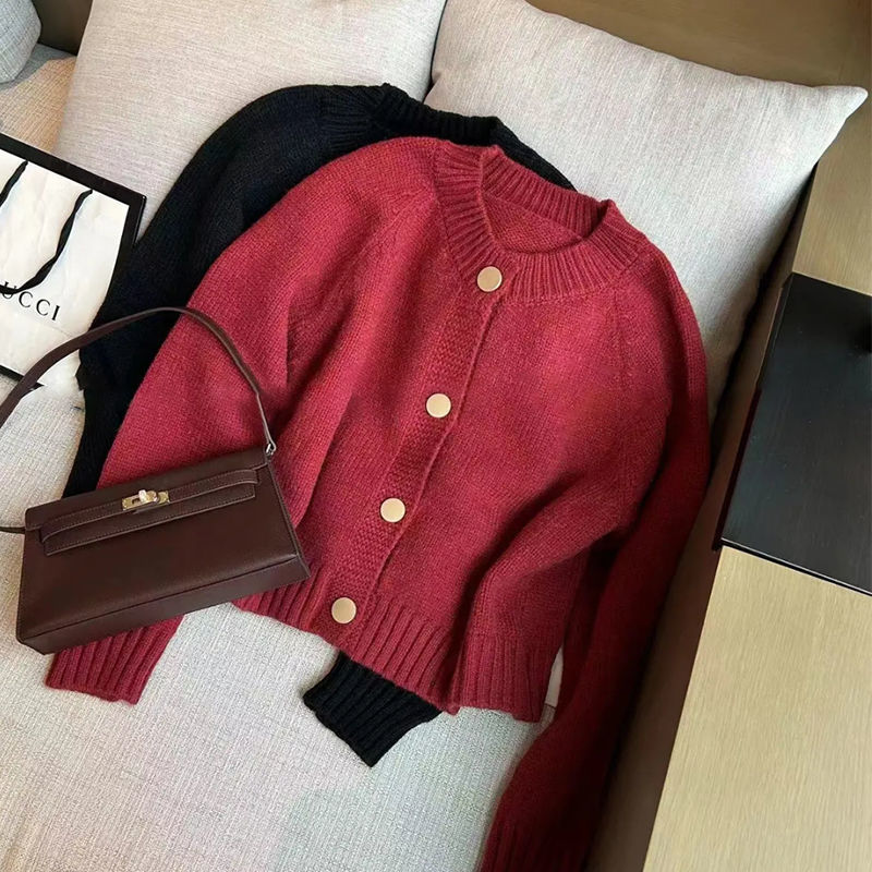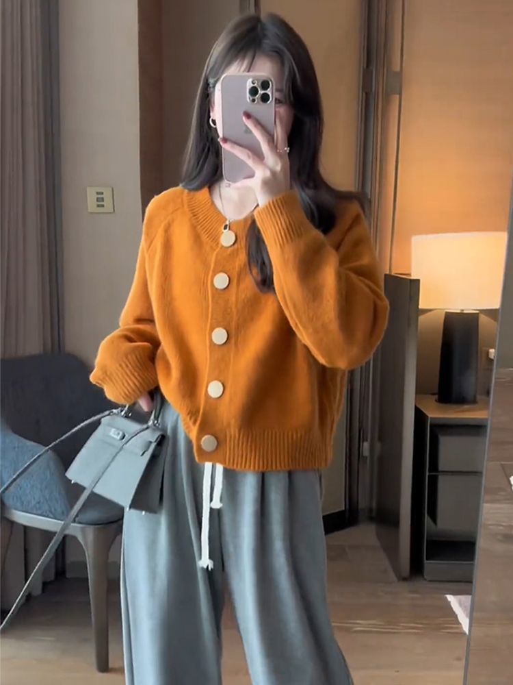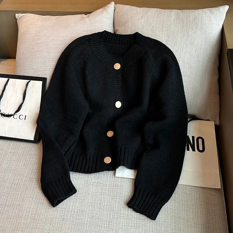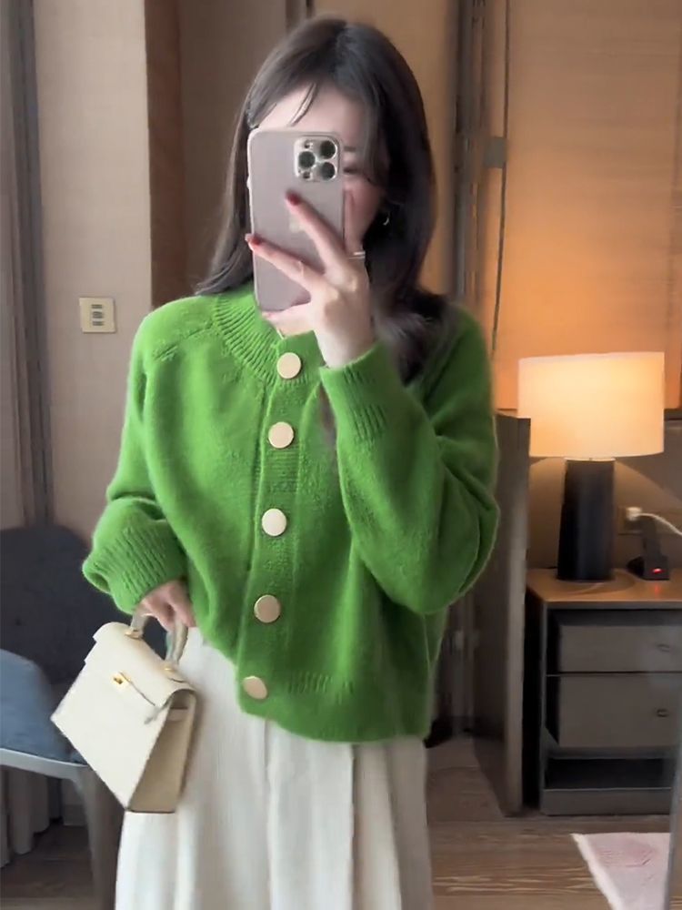 한국 스타일 심플 스타일 핑크 밀크 푸푸 니트 카디건 여성의 가을과 겨울 새로운 디자인 감각 틈새 싱글 브레스트 스웨터