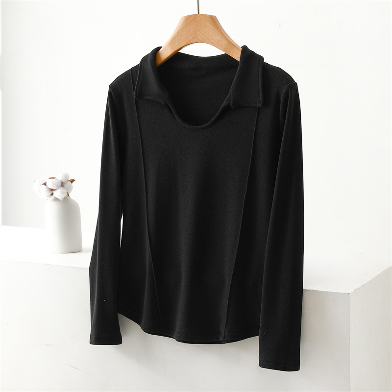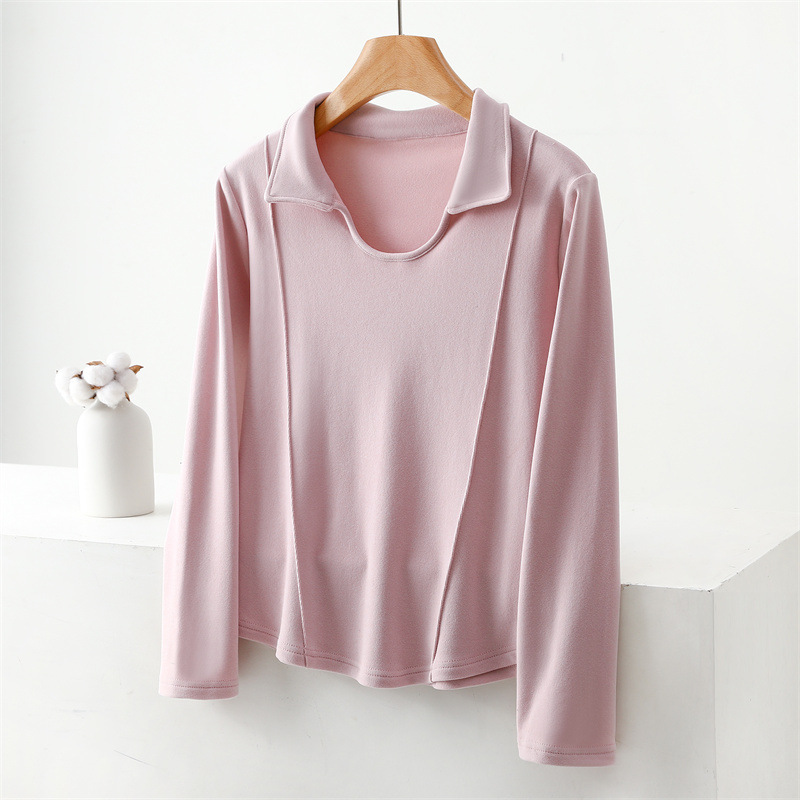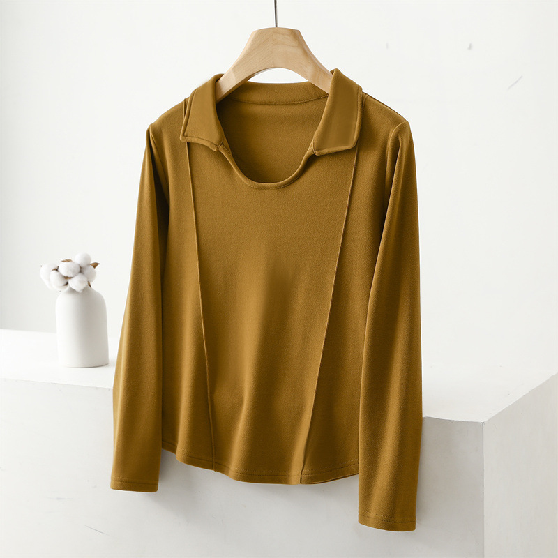 벨벳 슬림핏 긴팔 티셔츠 여성용 가을과 겨울 기모 두꺼운 난방 U 칼라 이너 재킷 올매치 베이스 셔츠