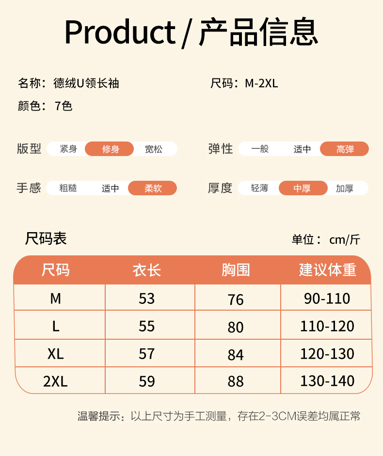 德绒修身长袖T恤女秋冬季加绒加厚发热保暖U领内搭上衣百搭打底衫