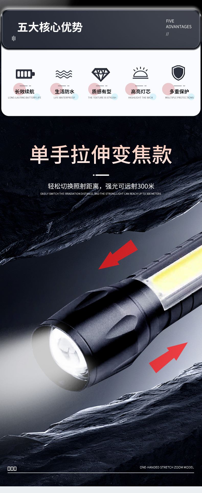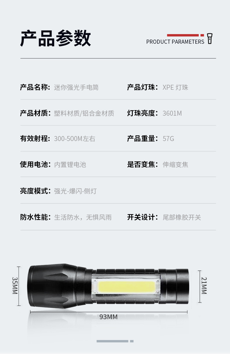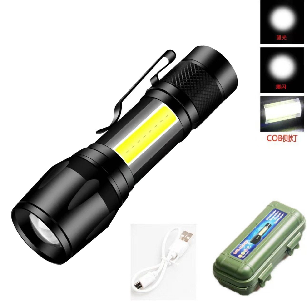 LED 미니 손전등 지속 방폭 야외 휴대용 비상 조명 야외 USB 충전