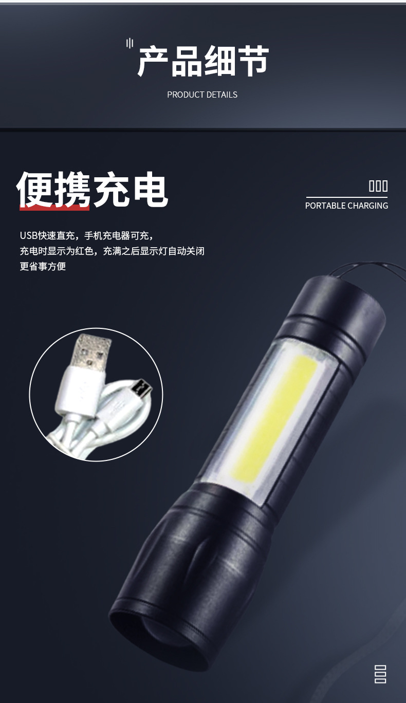 LED 미니 손전등 지속 방폭 야외 휴대용 비상 조명 야외 USB 충전스토어 가기
