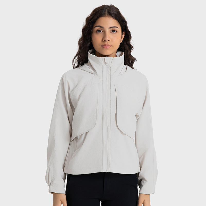 가을과 겨울 새로운 소프트 쉘 후드 세로 칼라 투웨어 스포츠 재킷 여성용 방수 벨트 포켓 느슨한 캐주얼 야외 재킷