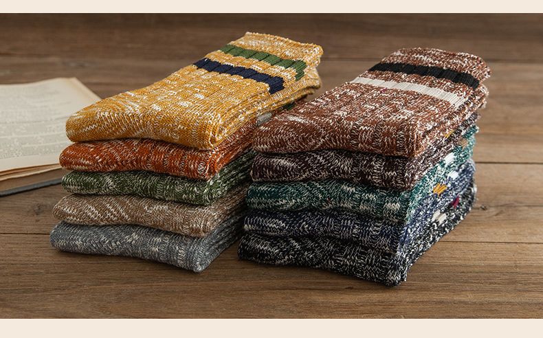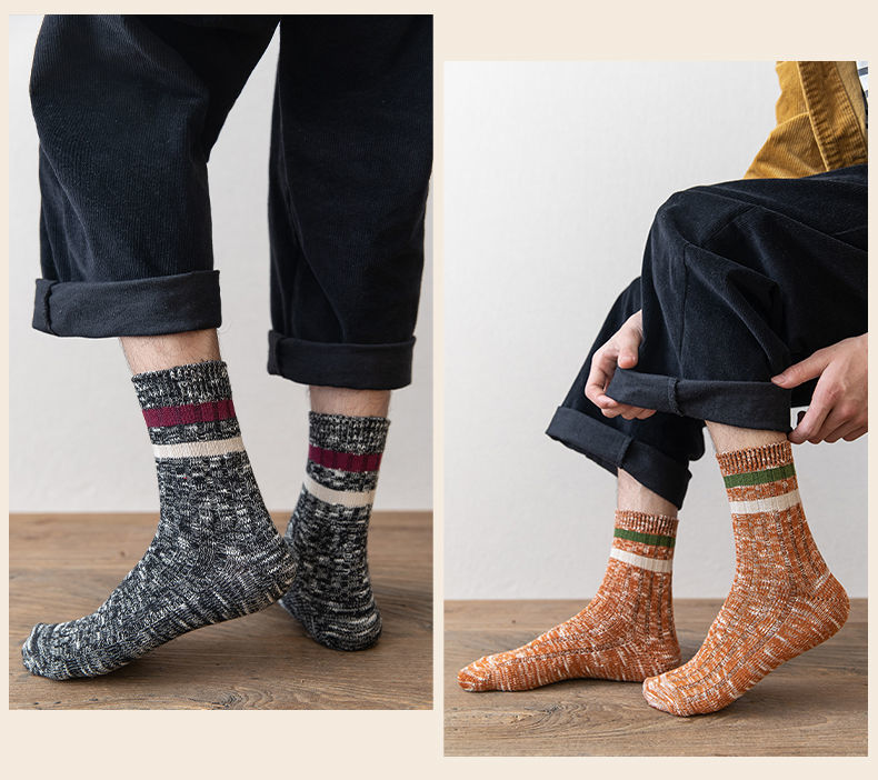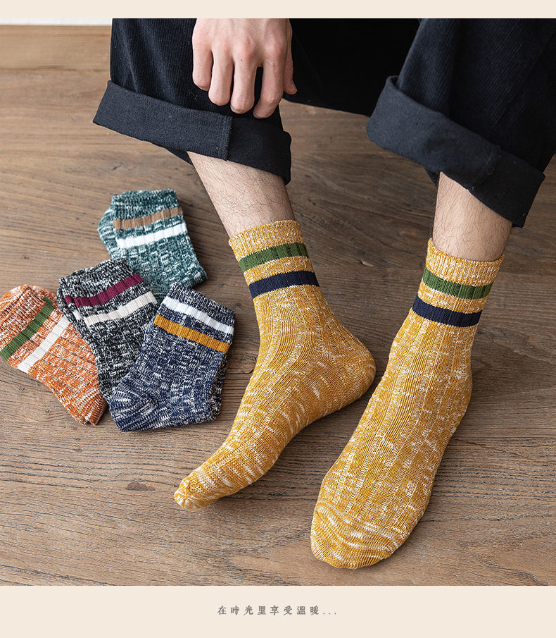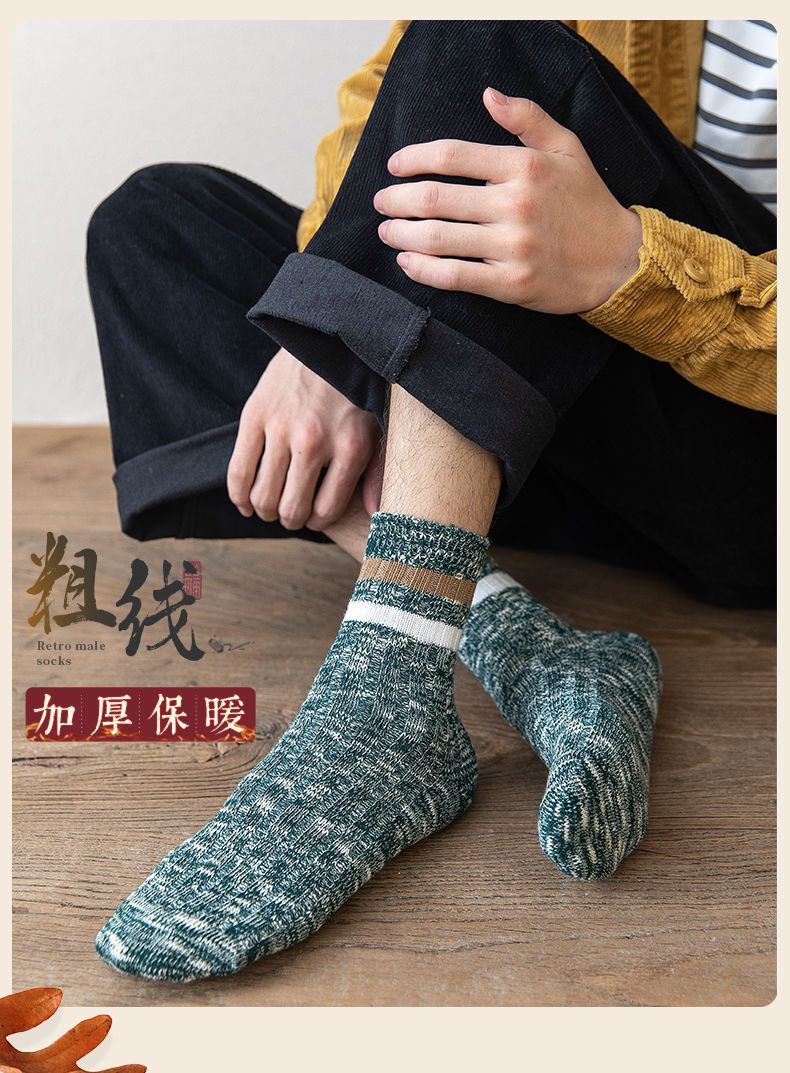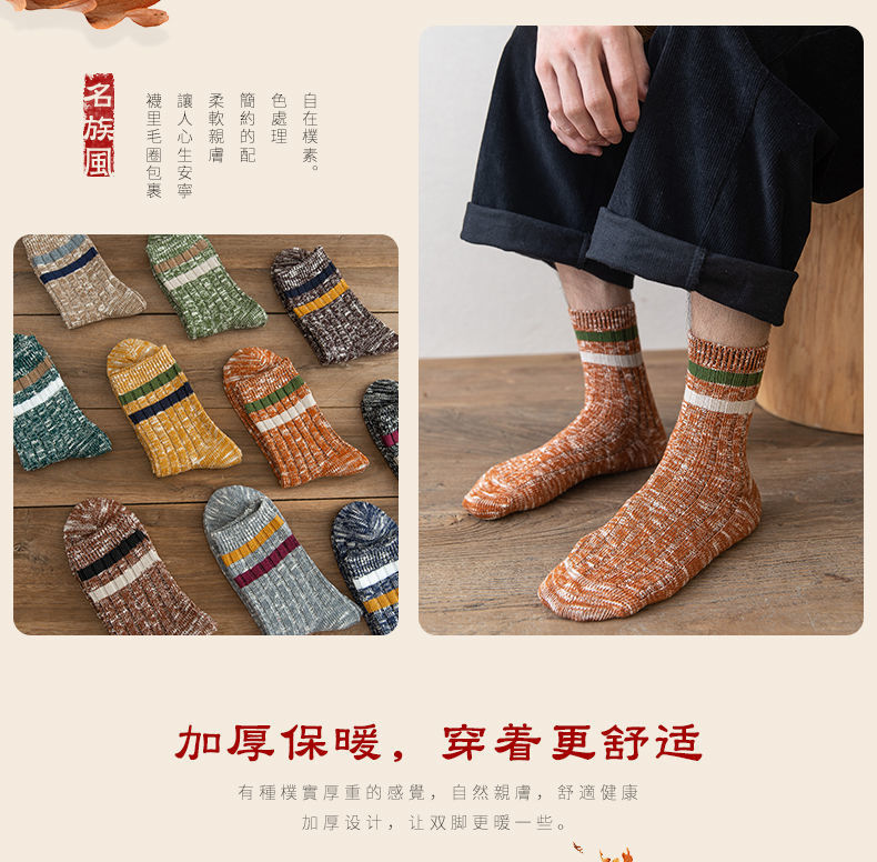 레트로 민족 바람 튜브 따뜻한 캐주얼 패딩 Zhuji 더블 바늘 두꺼운 라인 남성 양말 가을과 겨울 새로운 세대의 머리카락