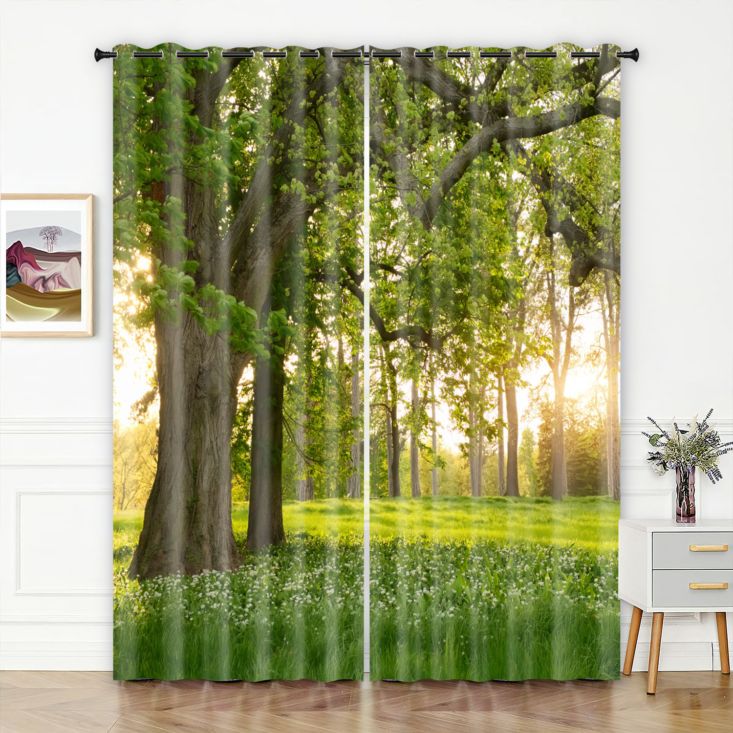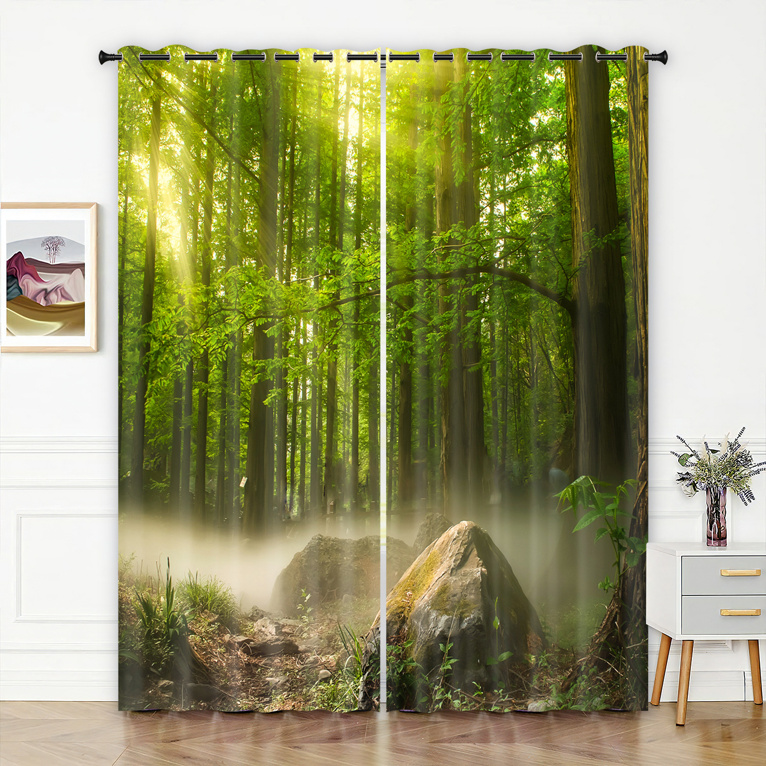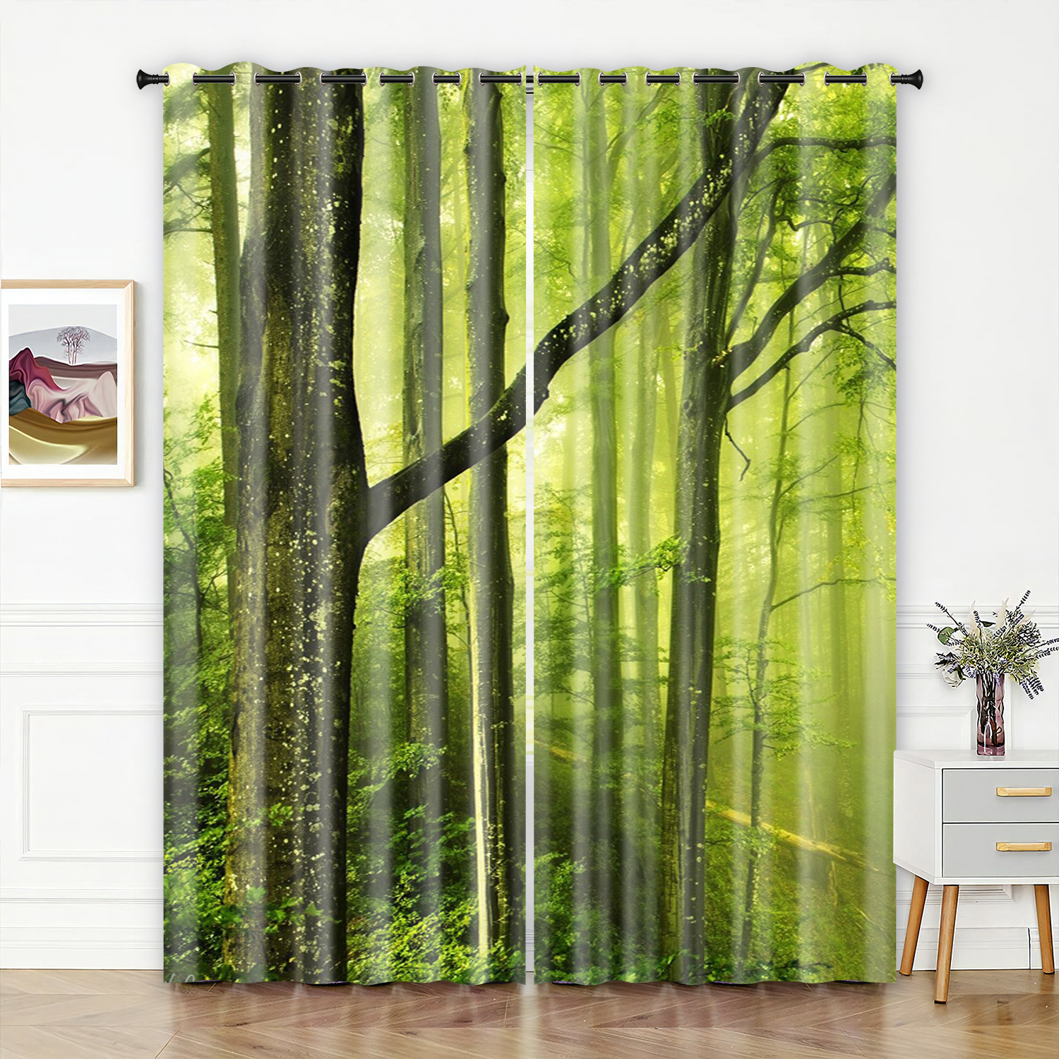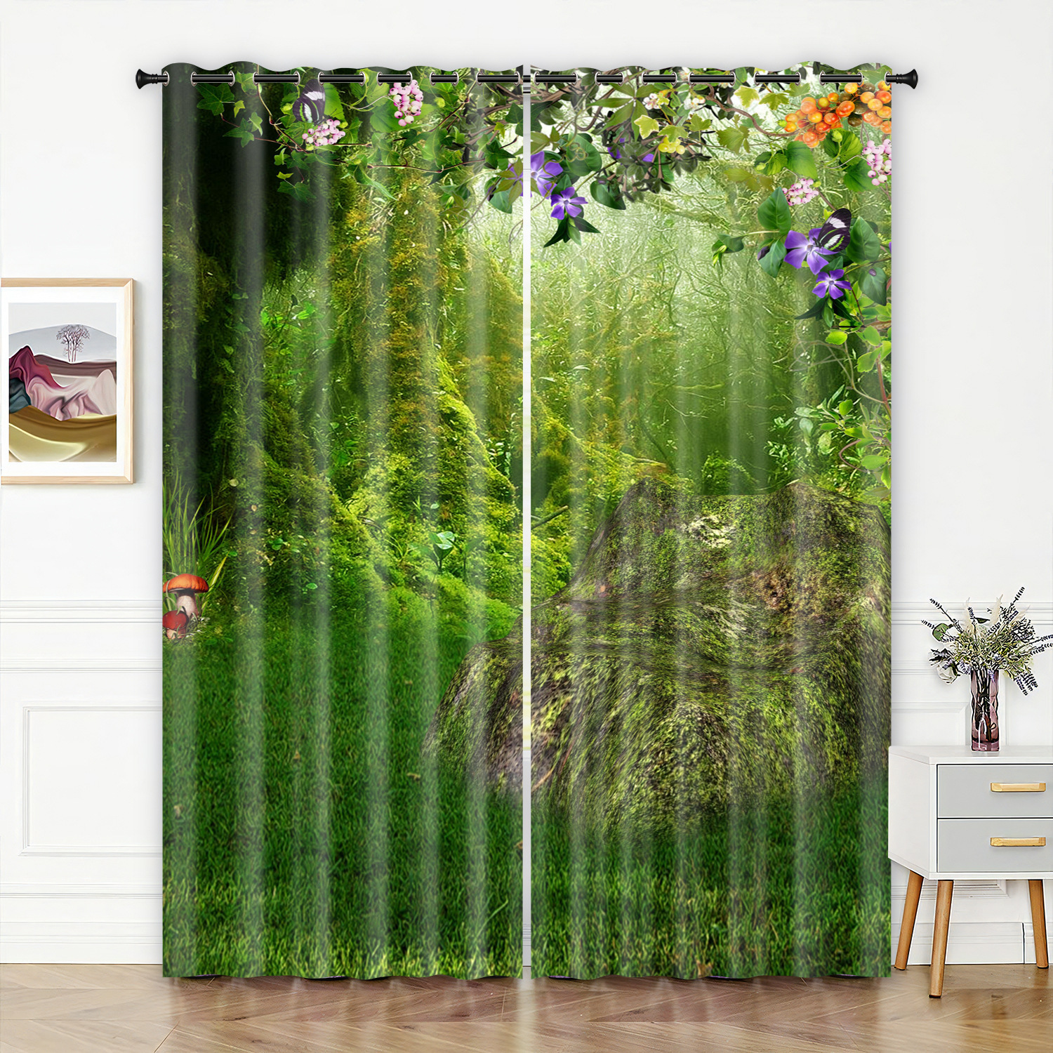 숲 영역 3D 디지털 프린팅 커튼 고정밀 풀 차양 홈 침실 펀치 프리 심플 커튼스토어 가기