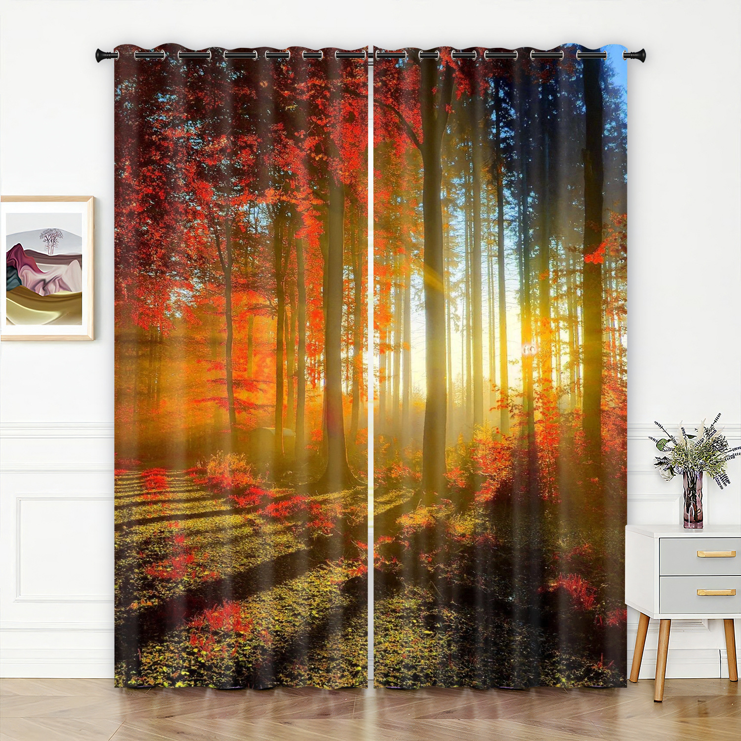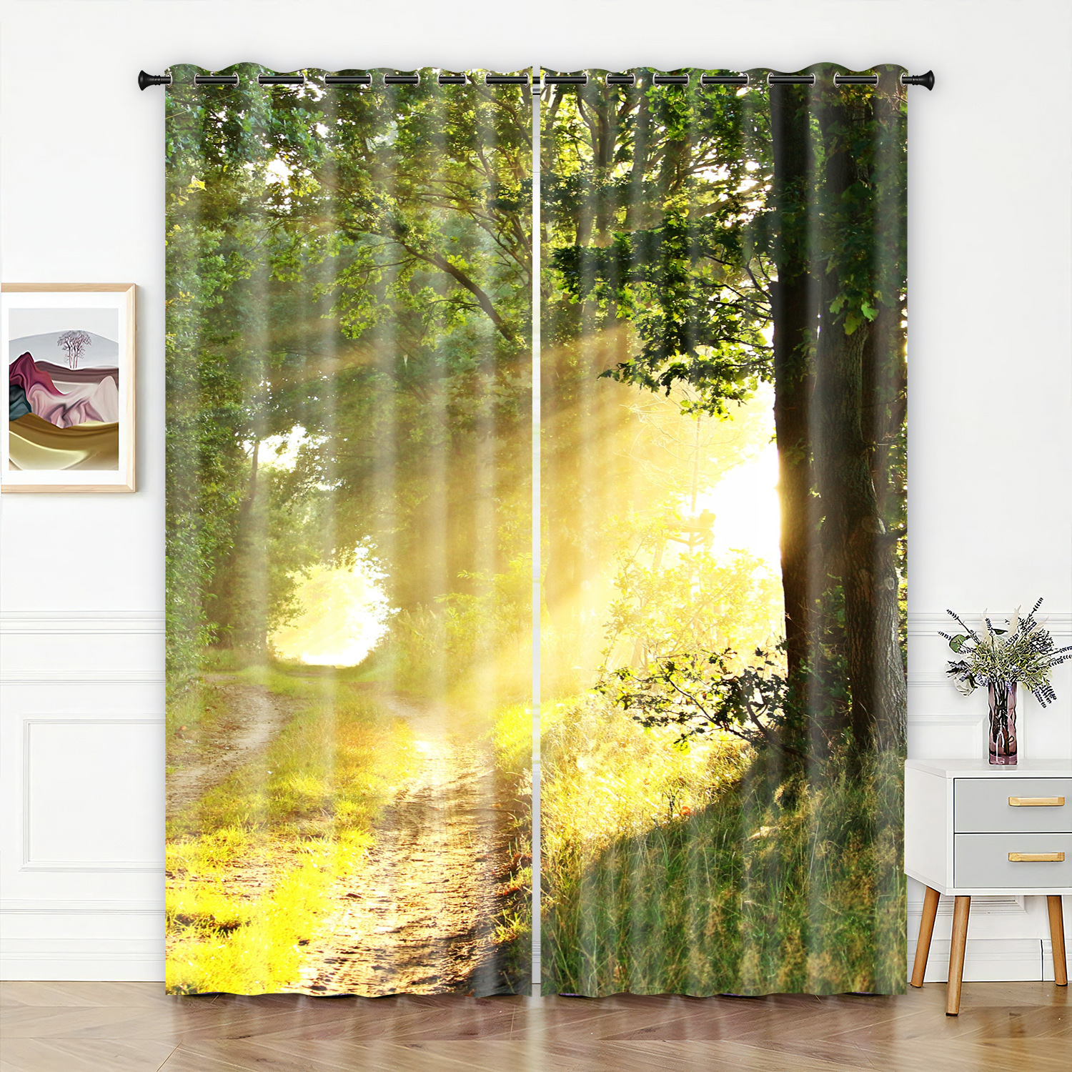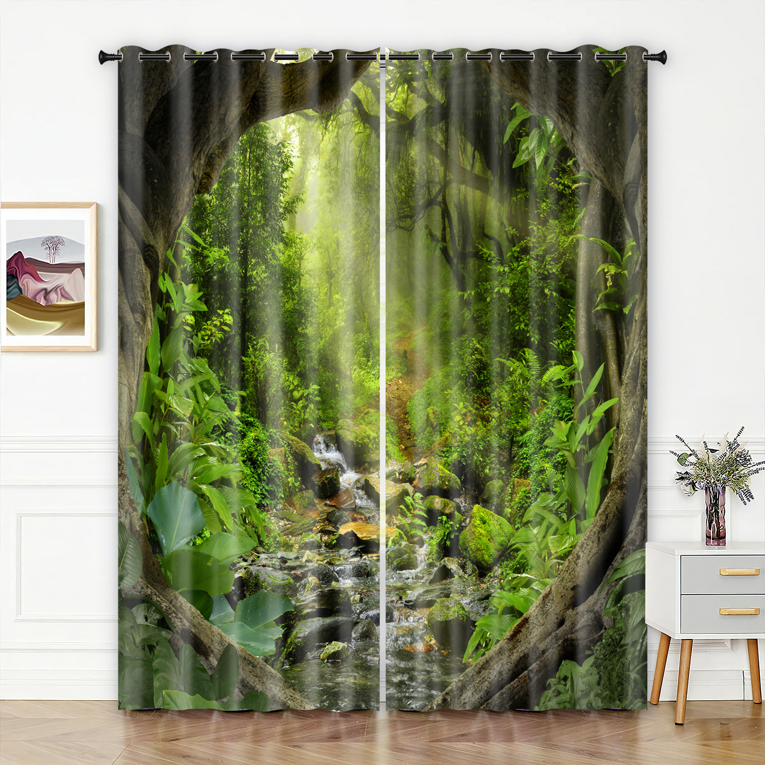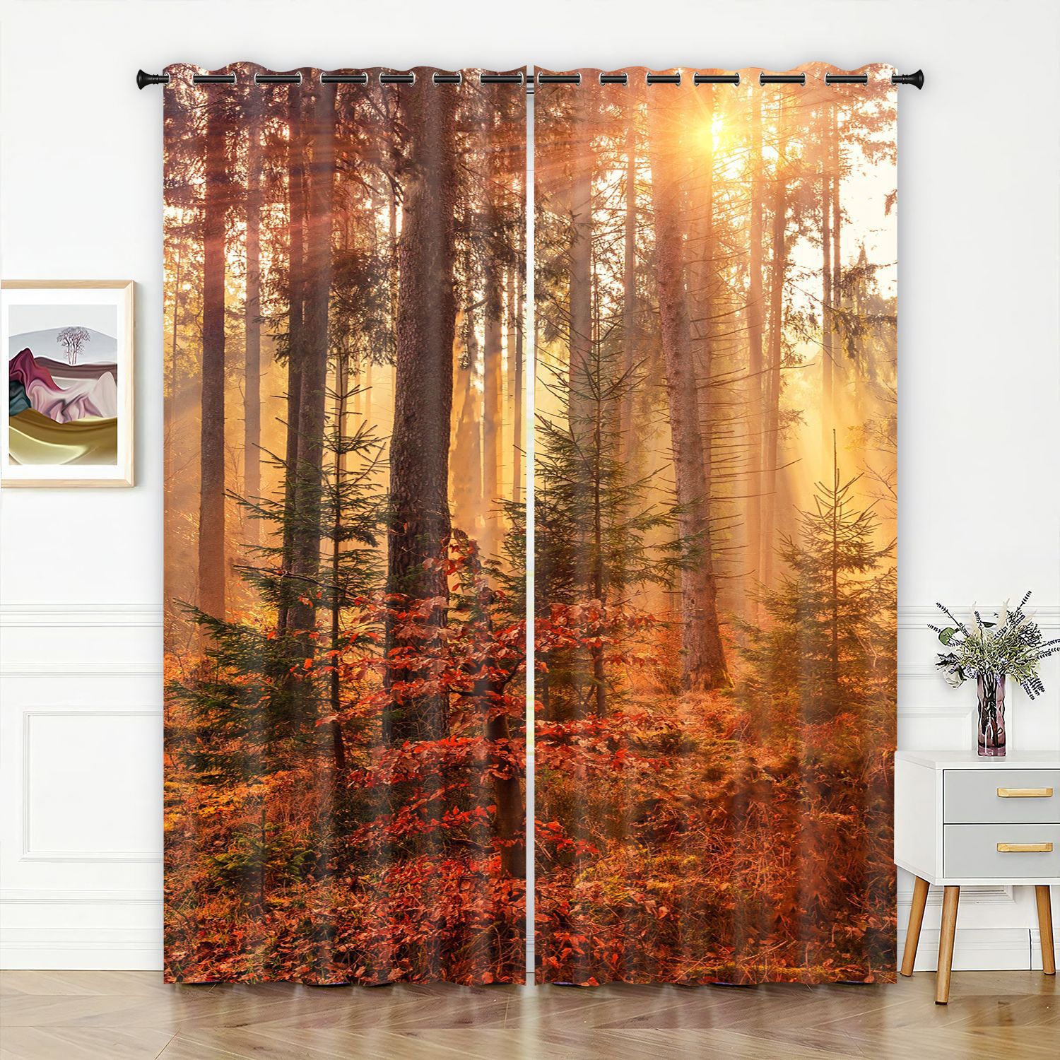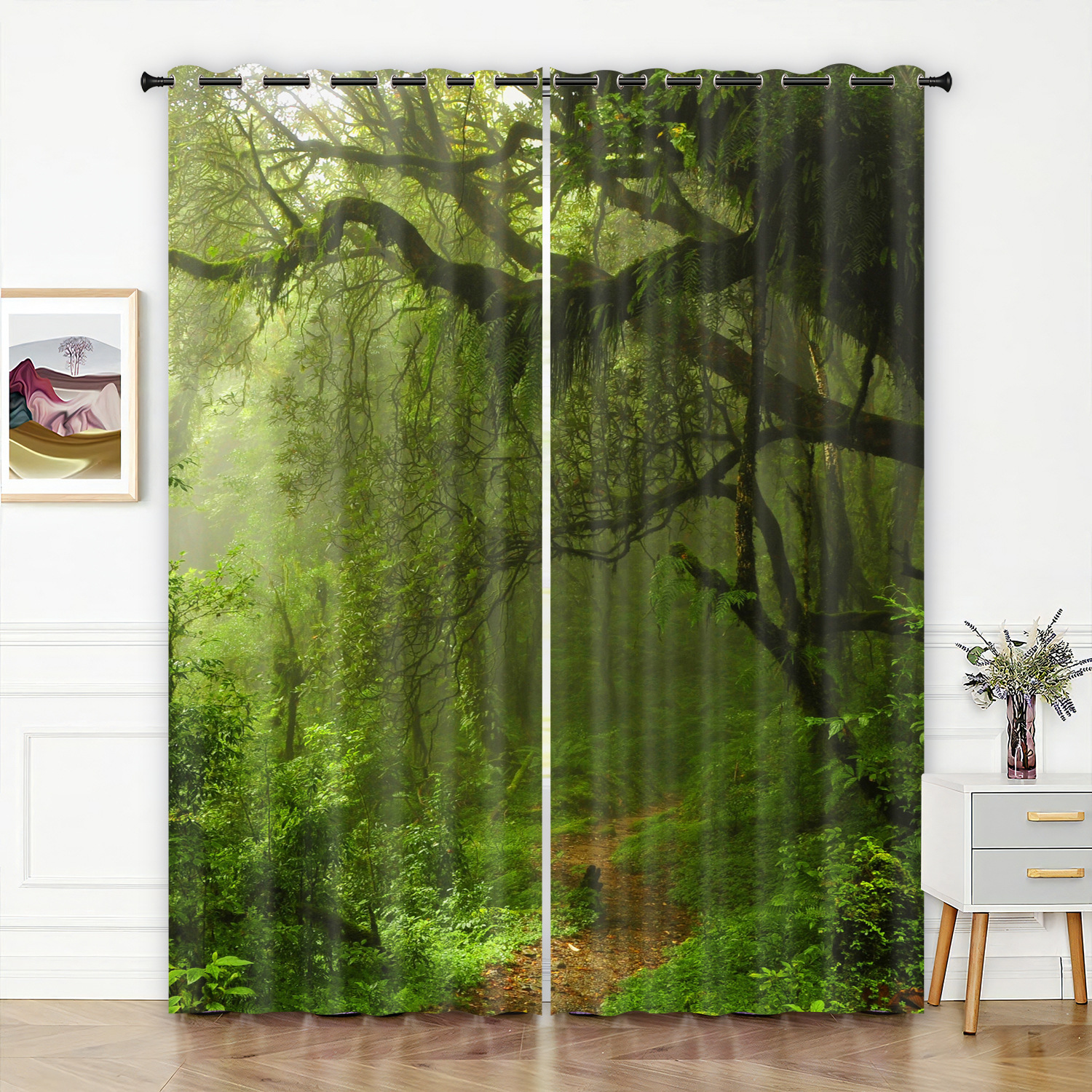 숲 영역 3D 디지털 프린팅 커튼 고정밀 풀 차양 홈 침실 펀치 프리 심플 커튼스토어 가기